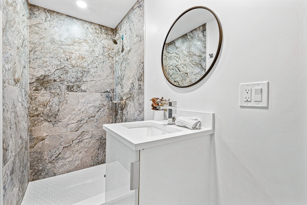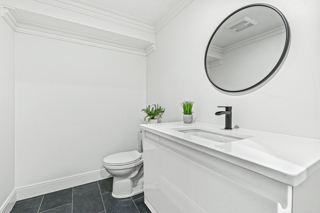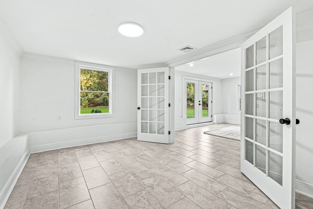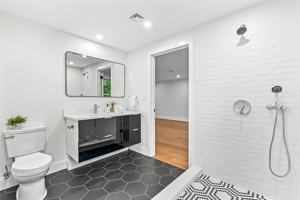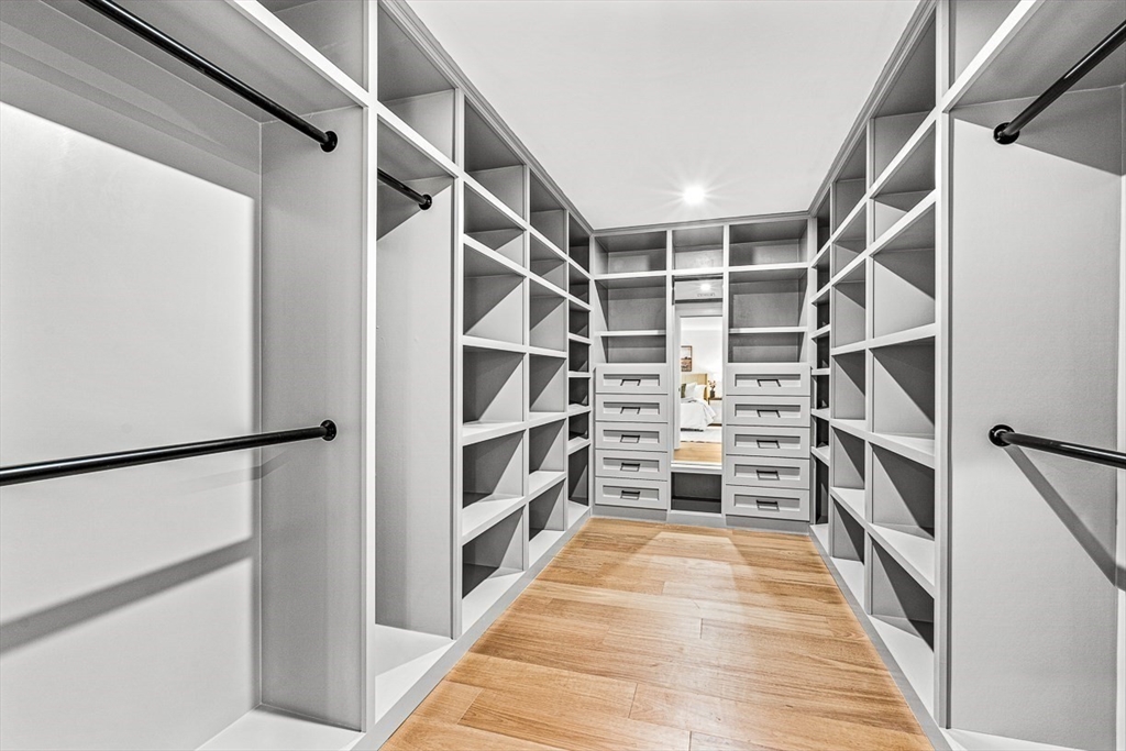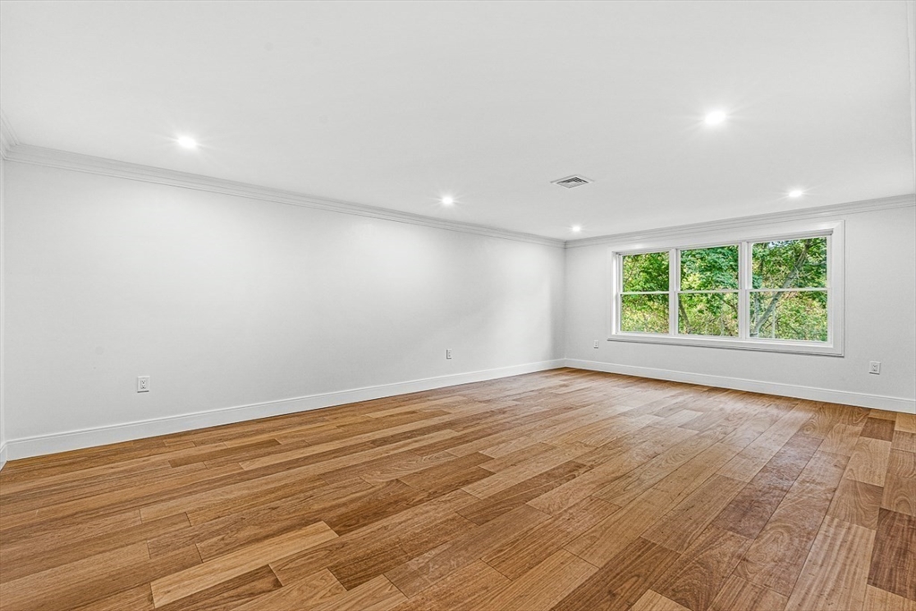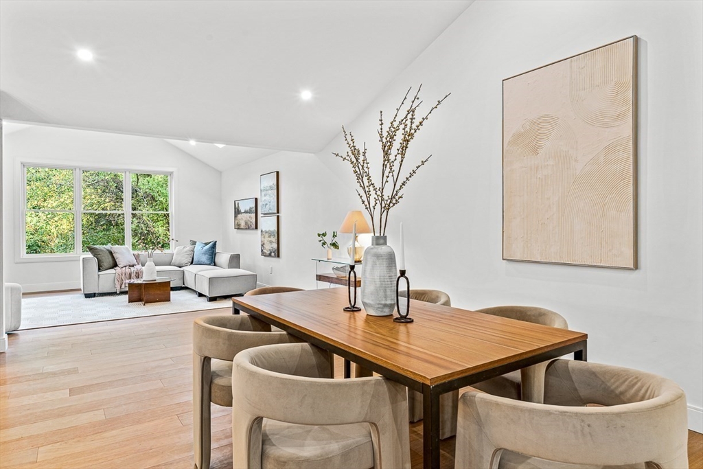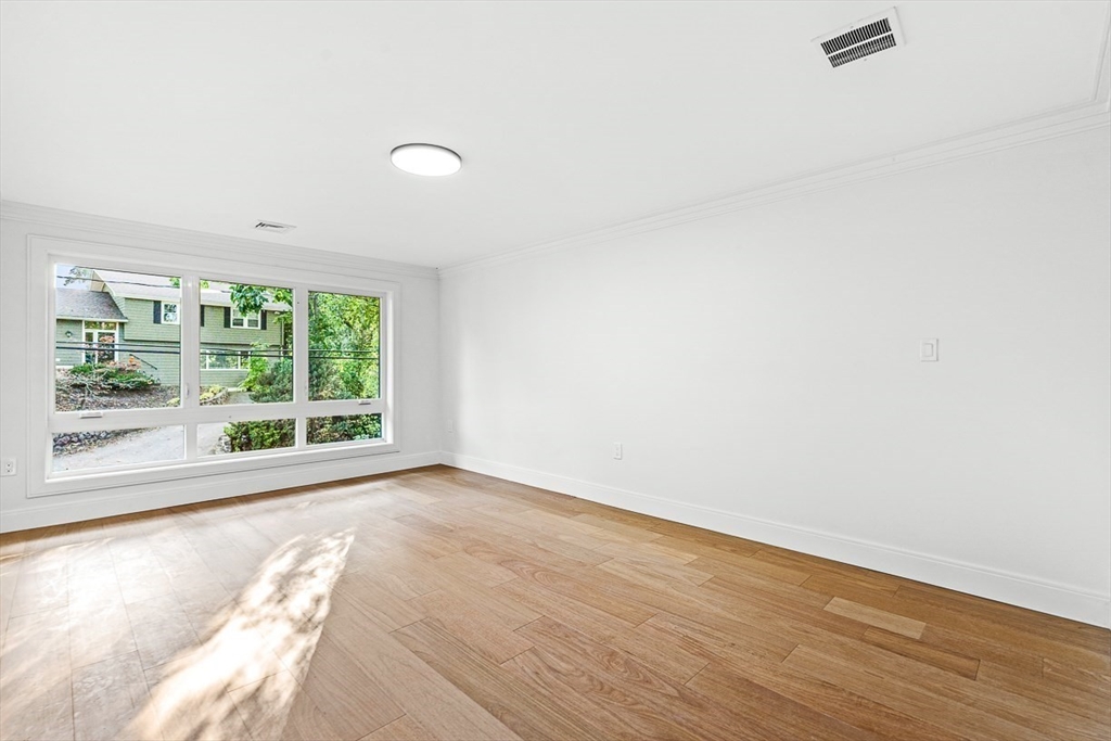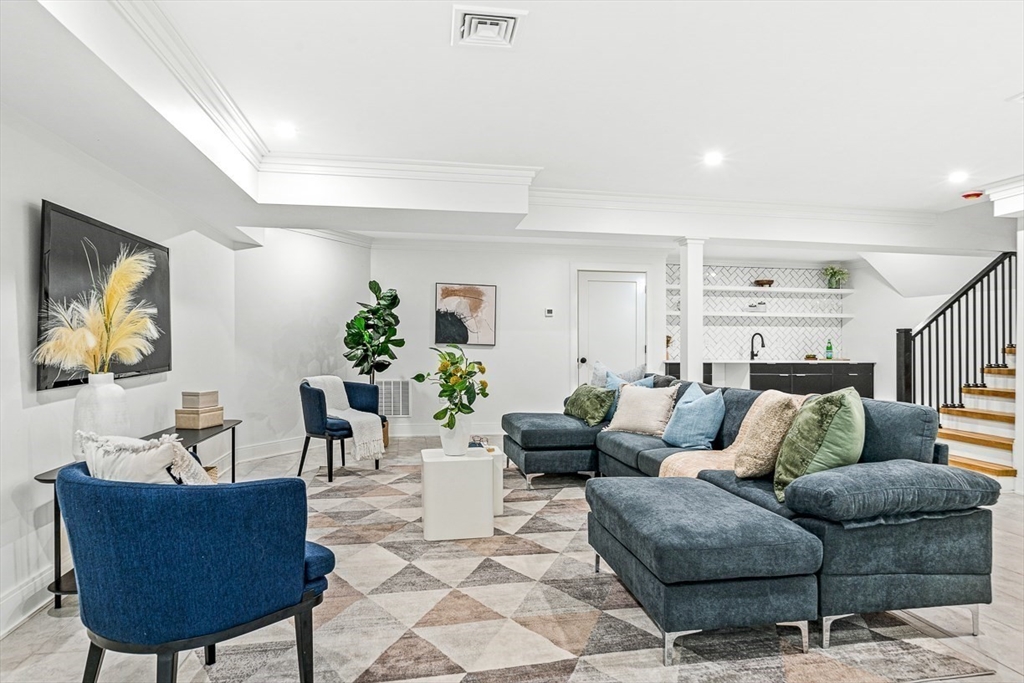 Indulge in modern luxury with this stunning home, set on a double 1/2 acre lot. This 4 bedroom, 4.5-bathroom home seamlessly blends chic style with an abundance of functional space. The architectural design is dramatic, showcasing soaring ceilings, a stunning contemporary fireplace, state of the art kitchen & sun filled living room which opens to a fabulous deck, creating a perfect indoor-outdoor space. The gourmet kitchen features a sleek design w/ a large island, high end appliances, & stylish open shelving. Upstairs, the lavish primary suite features a spa like bath & large custom closet. The 3 additional bedrooms offer ensuite baths. The walk out LL family room w/ wet bar is the perfect space to unwind. This property also features a 2 gar attached garage, mud room, office & laundry room. The double lot offers many possibilities ~ level w/ patio. This home is located near conservation trails, top-rated schools & Boston offering a lifestyle of convenience, luxury & tranquility!