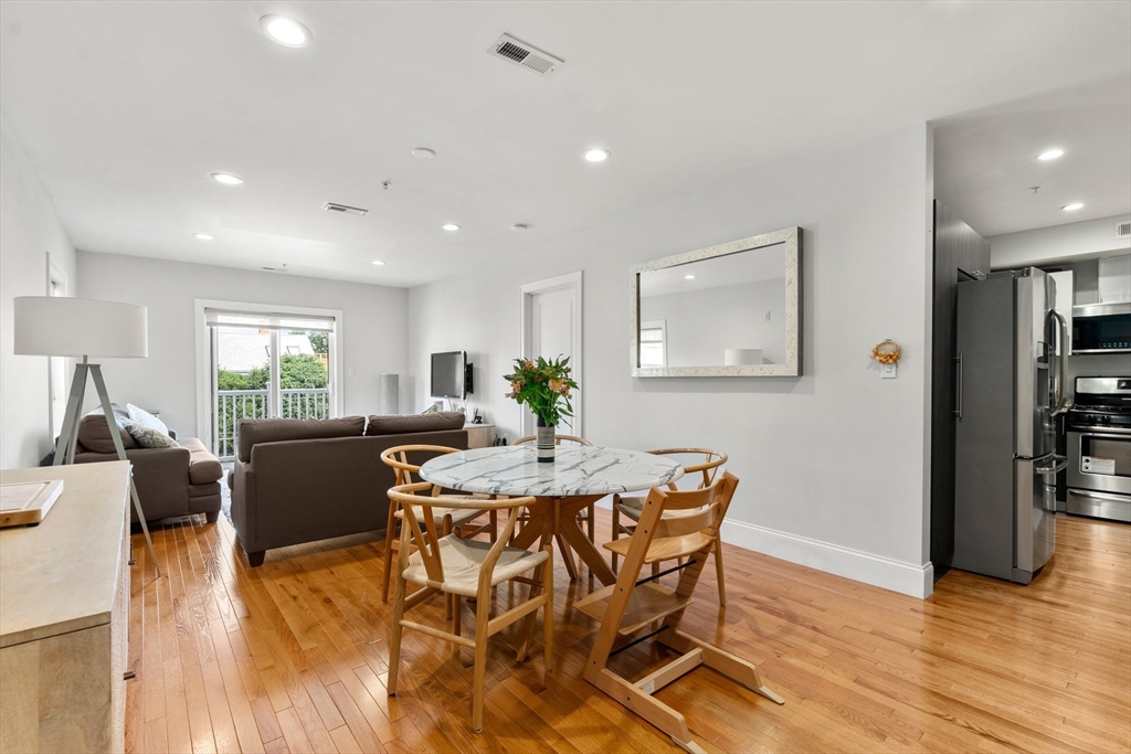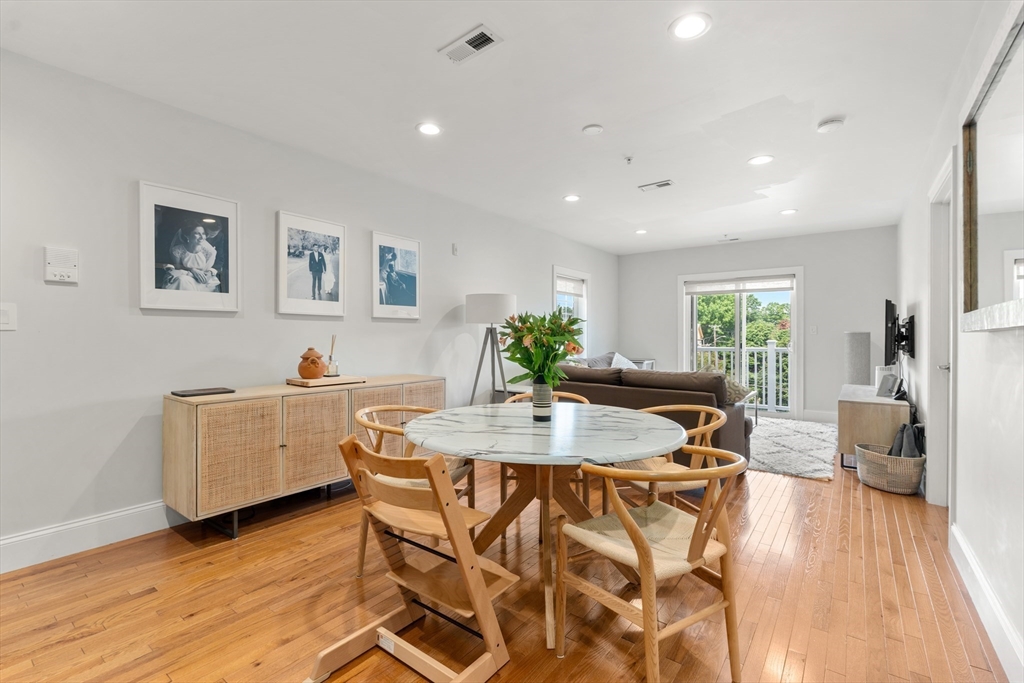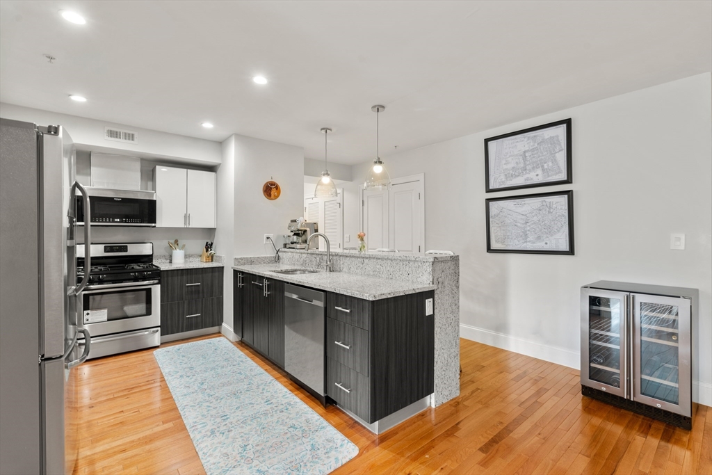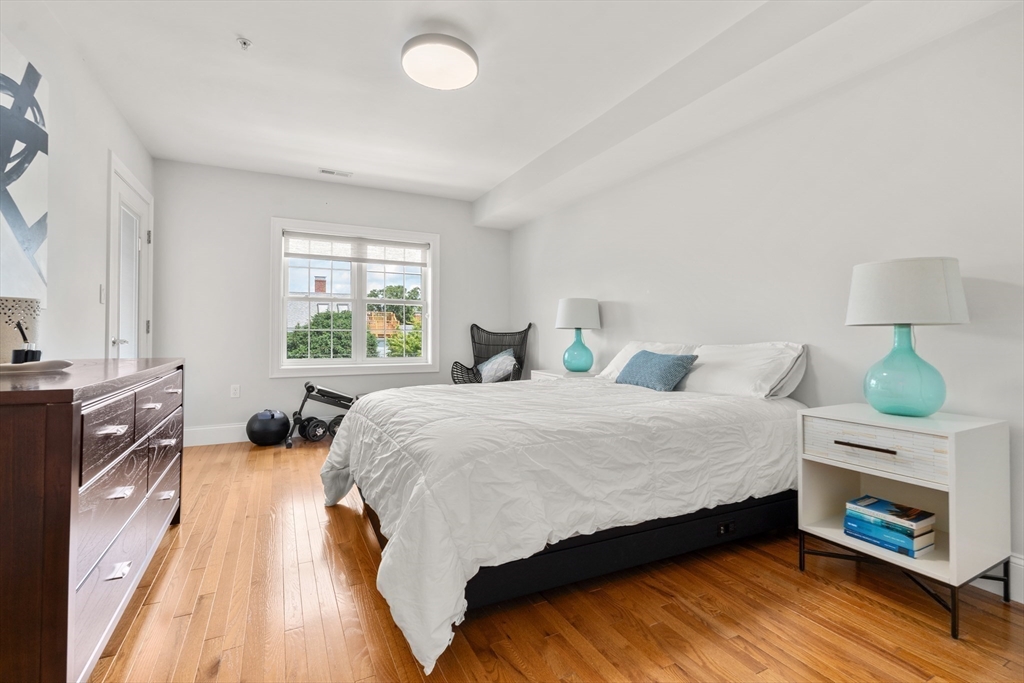 Welcome to modern elegance and city convenience! Perfectly positioned in one of Medford’s most desirable neighborhoods—just steps from the Tufts/Medford Green Line T Station—this exceptional 3-bedroom, 2-bath condominium delivers modern elegance, refined comfort, and seamless single-floor living. Built in 2014 and bathed in natural light, this impeccably maintained home showcases rich hardwood flooring, soaring ceilings, and an open-concept layout designed for both entertaining and everyday living. The living space extends effortlessly to two private balconies, each accessible from the bedrooms—perfect for enjoying your morning coffee or unwinding at the end of the day. Additional highlights include two deeded off-street parking spaces, generous private basement storage, in unit washer/dryer, custom California Closets and a vibrant location that puts you within easy reach of Tufts University, local shops, cafes, and commuting options.