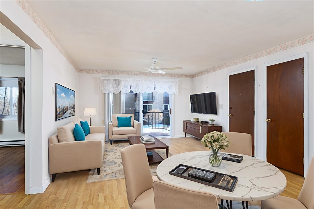 Crestwood Arms Condominiums! Well-maintained, move-in ready second-floor unit offering comfortable and convenient living. This home features two generously sized bedrooms, one full bathroom, and an open living/dining area perfect for everyday living or entertaining. The kitchen flows nicely into the main living space, and recently installed laminate flooring runs throughout the unit. Enjoy fresh air from your private exterior balcony located just off the living room. A conveniently located laundry room is available on the first level of the building. The complex is situated on a well-maintained lot and includes one deeded parking space along with ample visitor parking. Ideal for an owner-occupant or investors looking for rental income. Prime location, just minutes from Worcester Regional Airport and close to major routes including Routes 9, 20, 122, 290, and the Mass Pike.