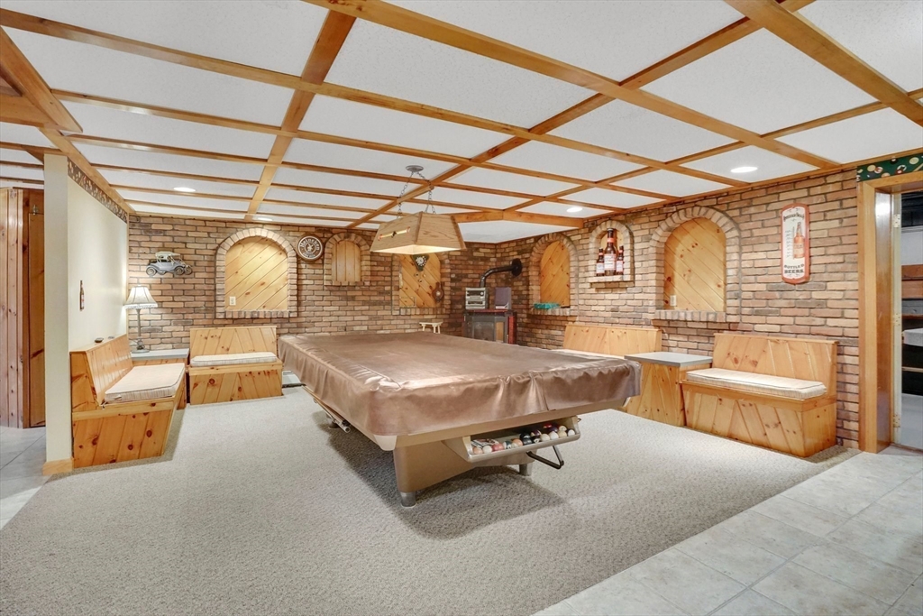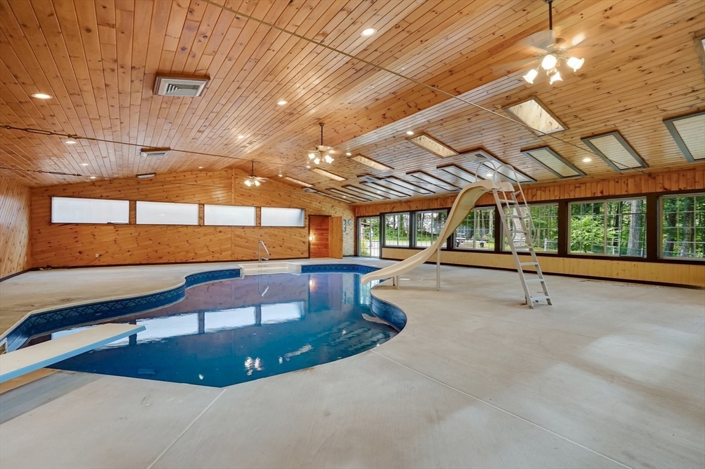 WELCOME HOME! 215 BARRY ST is ready for the next owner. This builders own custom designed home,2x6 walls/Marvin windows nestled on a private 4.98 acres lot. It has so much to offer & many possibilities for the next owner. Starting with a 3 car 2 story detached garage with 936sqft on 2nd floor ready to be finished & an 18'x36' side entry garage for more storage. Attach to the main house is a 50'x42' covered inground pool for year round enjoyment with new liner. The front door entry that's open to the lower level & main floor that features 3 Bedrooms & 3 full baths. Kitchen has granite counters /large breakfast bar / skylight/tile floor. From the kitchen step out to the beautiful light filled sunroom perfect for entertaining, with a brick surround for a brick oven. Relax in the huge living room /cathedral ceiling /field stone gas insert fireplace, A wall of sliding doors to partial covered deck. Main suite /main bath/jacuzzi tub & fabulous rec room with pool table to keep the fun going.