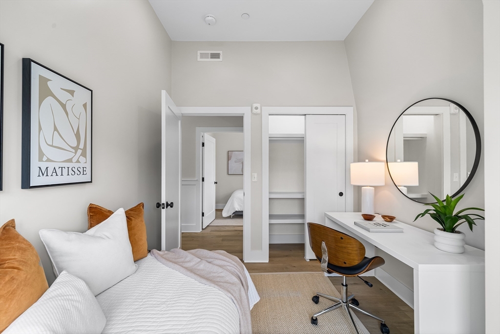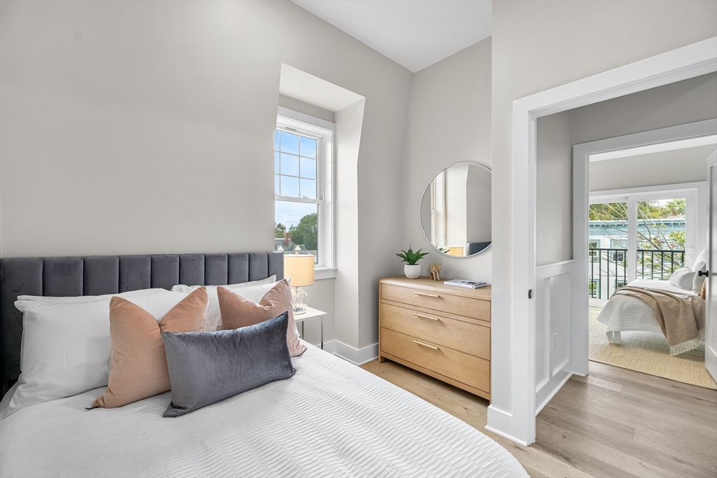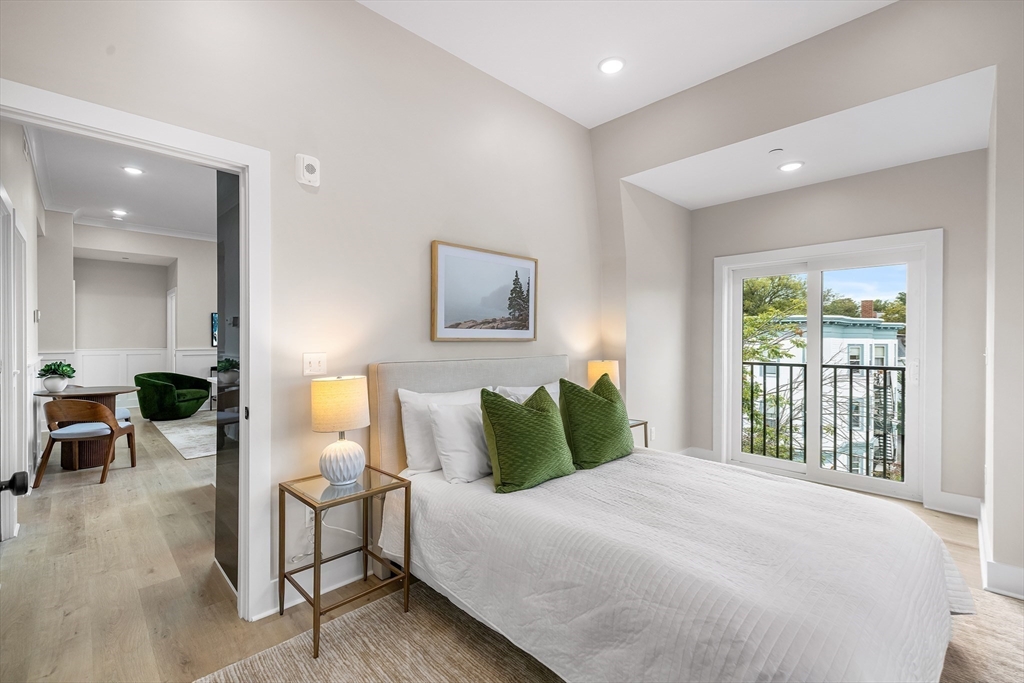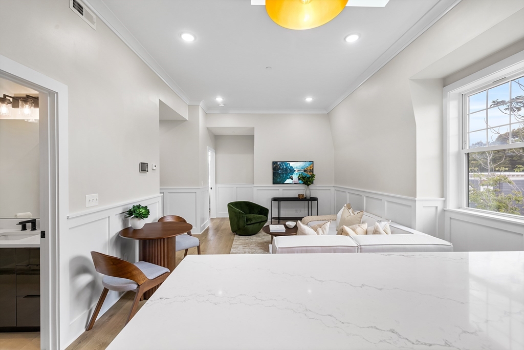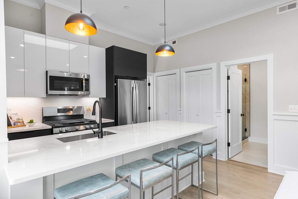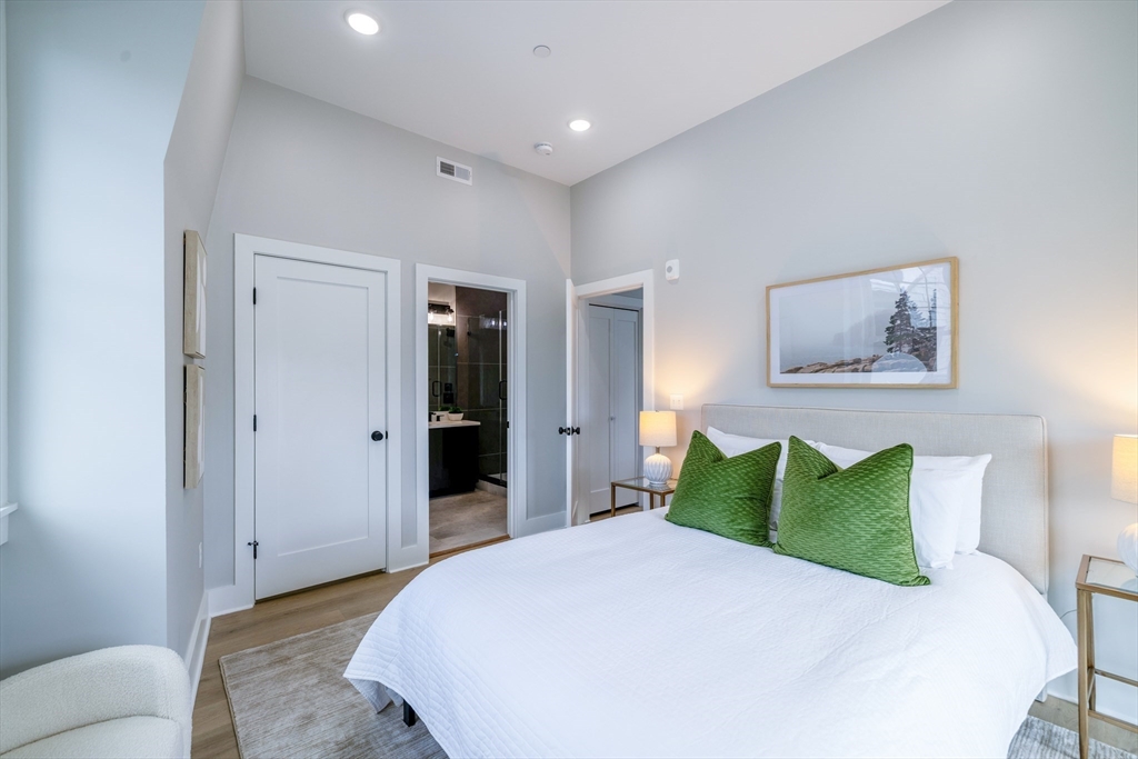 Experience modern elegance at 115 Thurston Street, a sleek 3-bed, 2-bath new construction condo in the heart of Somerville’s vibrant Winter Hill. This sun-filled penthouse features an open floor plan, 9-ft ceilings, custom paneling, and designer finishes throughout. The striking kitchen is highlighted by quartz countertops, a breakfast island, premium stainless appliances, and a direct-vent gas range. Primary suite includes a Juliet balcony and spa-like bath with frameless glass enclosure shower. Enjoy the convenience of in-unit laundry, garage parking, and access to a serene brick patio with bike storage. Perfectly situated just off Broadway, you’re steps to the Green Line, minutes to Assembly Row, and only 7 miles from downtown Boston. Be the first to own this exceptional penthouse in one of Somerville’s most sought-after neighborhoods! Rated a Walker’s Paradise (90) and Very Bikeable (86), this location delivers an unparalleled urban lifestyle. Backed by a 1-yr builder’s warranty.