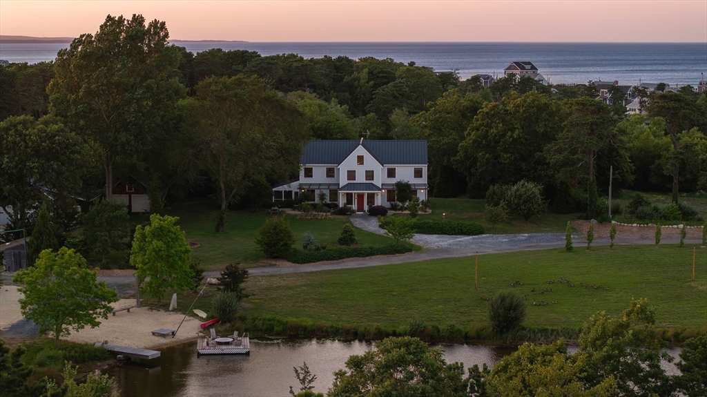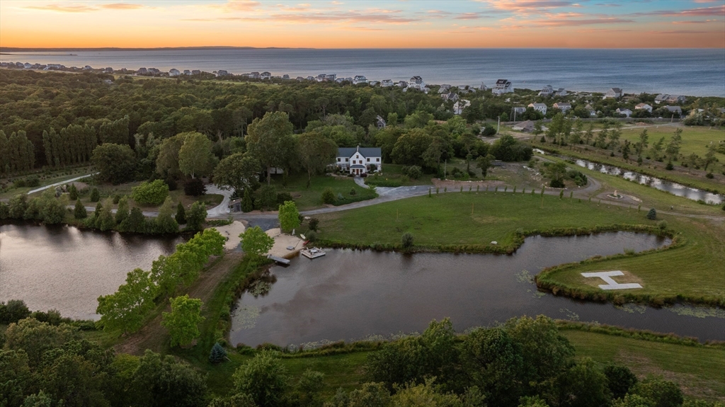 Welcome to Sunset Farm, one of the most spectacular coastal farm properties in all of New England. An unprecedented assemblage of nearly 35 acres provides tremendous privacy, serenity and endless possibilities for relaxation, restoration and outdoor pursuits alike. Enjoy direct ocean access from 80’ of private sandy beach ownership on Cape Cod Bay. With sweeping pastoral and water views, this extraordinary retreat features 5 self-recharging freshwater ponds, open fields, beaches, a helipad, dock, meandering pathways, and thousands of professionally curated specimen trees. A sustainable and custom-built Main House offers efficient living with top of the line appliances and systems, a classic and welcoming front porch with rockers, and a charming screened porch from which to enjoy the seasons and sea breezes. A quintessential red barn and nearby shingled Guest House offer additional accommodations. A once-in-a-generation opportunity to become the steward of this coastal treasure.