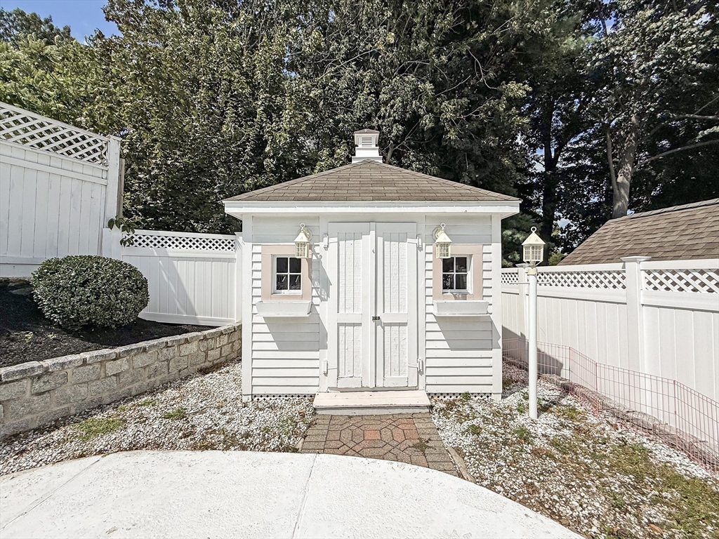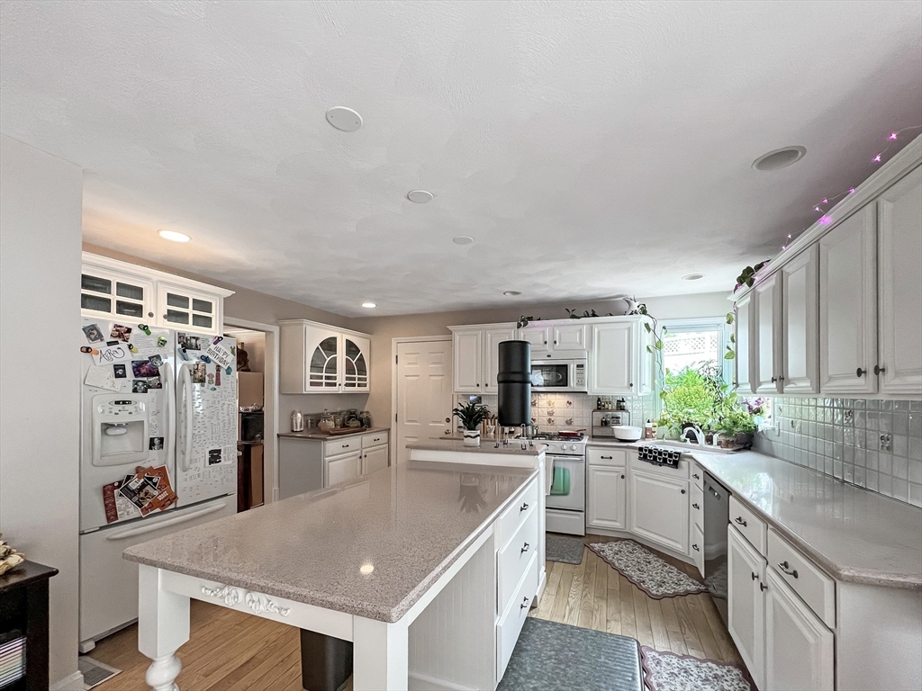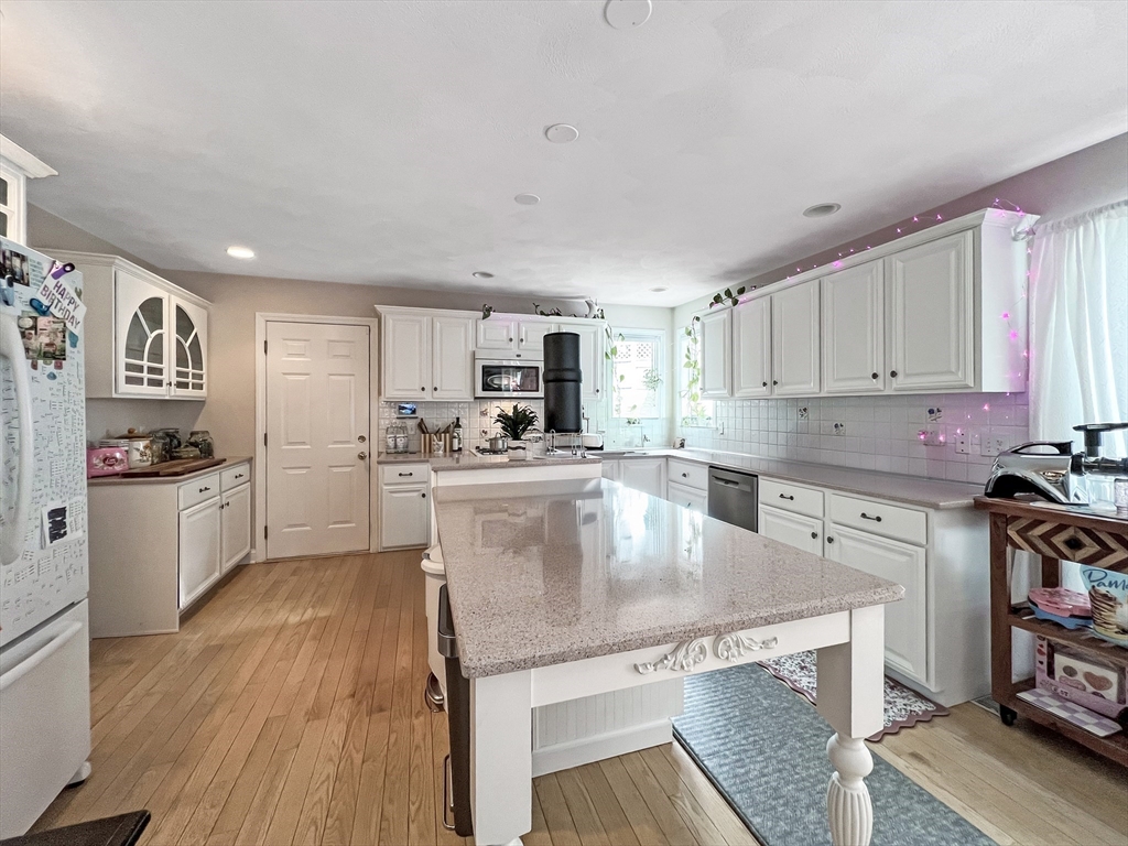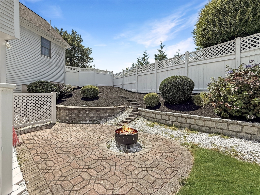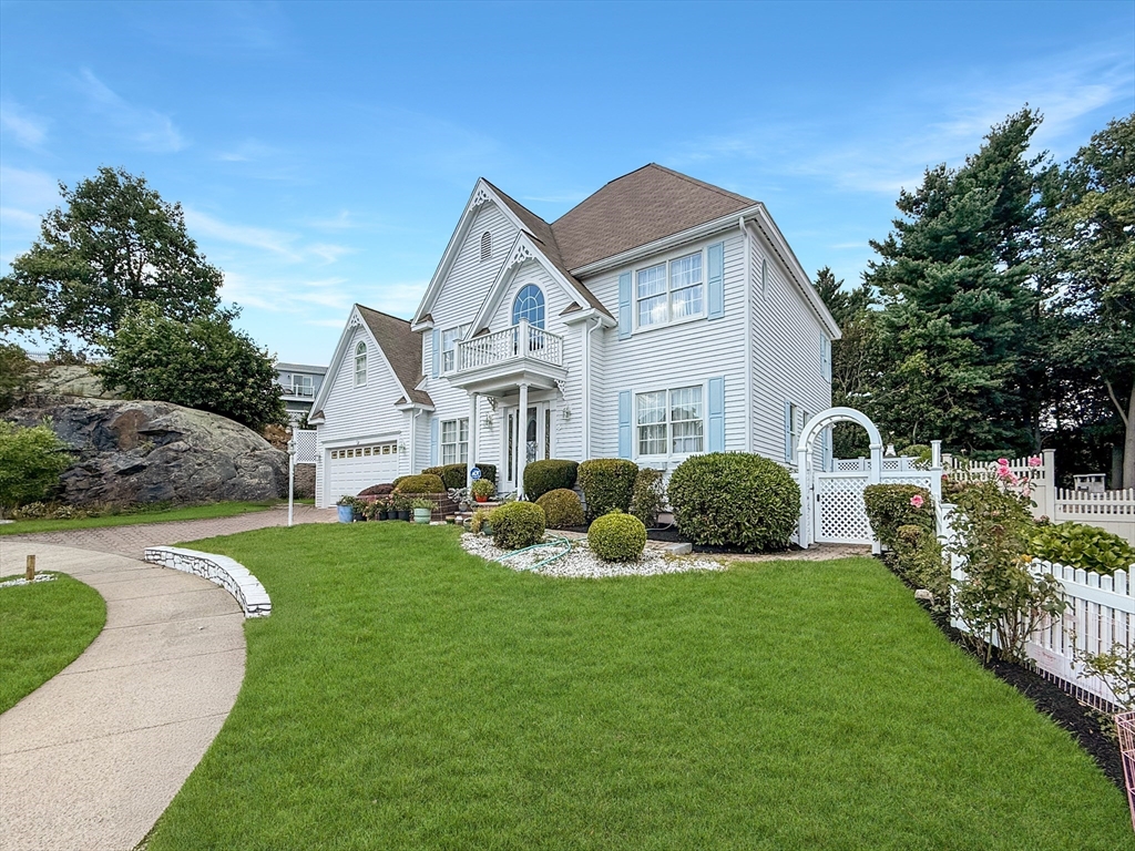 Set high on a double cul-de-sac, this lovingly maintained masterpiece at 5 Blueberry Lane offers three levels of comfort, style, and unique details that make it a truly special place to call home. Enter through a custom glass doorway into a soaring foyer with chandelier and feature windows. The main level boasts a dining room with dimmable chandelier, a French-door office, bright living room with gas fireplace, and a one-of-a-kind kitchen featuring easy-care white cabinets and sparkling Starlight pink Technistone countertops. A charming half-bath completes the level. Upstairs find three bedrooms, full bath, laundry, and a spacious primary suite with wood floors, double-sink vanity, linen closet, and oversized bath. The lower level offers a bedroom, half-bath, closets, and French doors. Outdoors, enjoy a fenced yard with deck, fire pit area, and celebrity-style saltwater pool with waterfall. Updates include new Maytag dishwasher, LG washer/dryer, pool filter, robot, and salt cell.