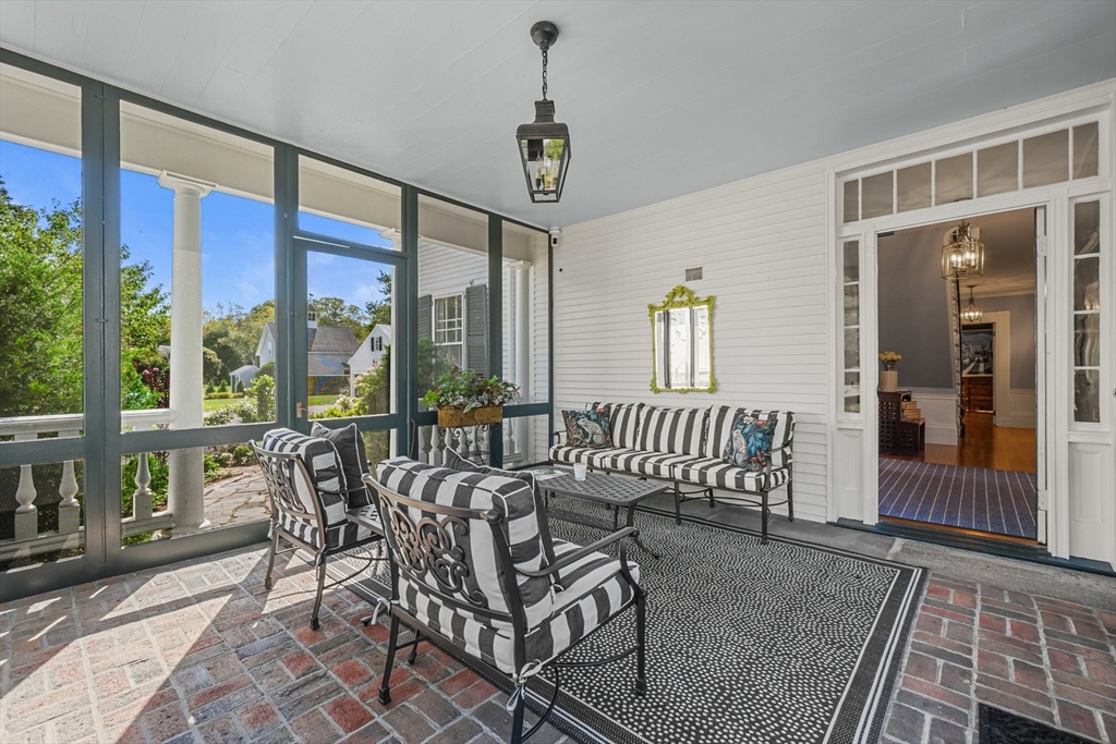 Set in the heart of Falmouth Village, this iconic Greek Revival offers a rare blend of timeless charm and modern comfort overlooking the Village Green. Surrounded by manicured gardens, the meticulously renovated home boasts preserved architectural details and thoughtful updates across three levels. A chef's kitchen with top-of-the-line appliances and a breakfast nook flows seamlessly into sun-splashed living spaces, including a formal dining room, great room, and library with intricate moldings and beamed ceilings. On the second floor, the primary suite includes a luxurious bathroom, dressing room, and custom closets, with 2 well-appointed bedrooms overlooking the Village Green completing the level. The top floor offers 2 additional bedrooms and a full bath, providing refined accommodations for family and friends. Outside, stone patios, landscaped grounds, and a 3-bay garage complete this gracious setting, steps from shops, restaurants, and everything the village has to offer.