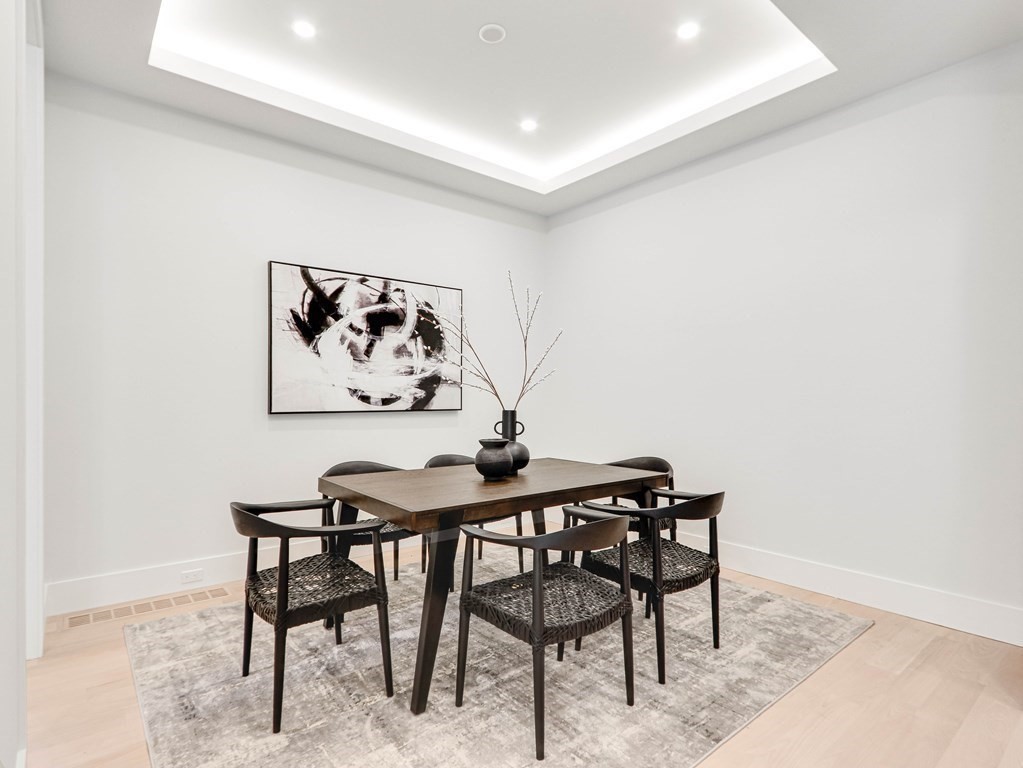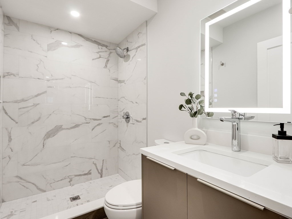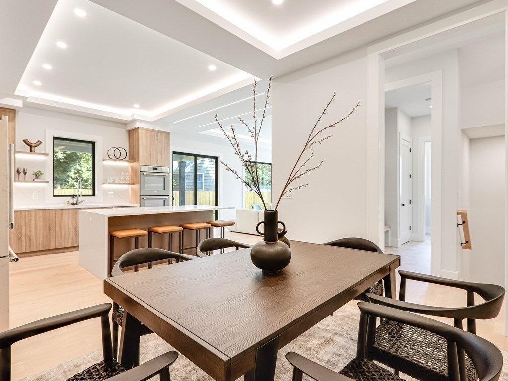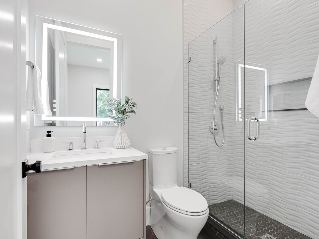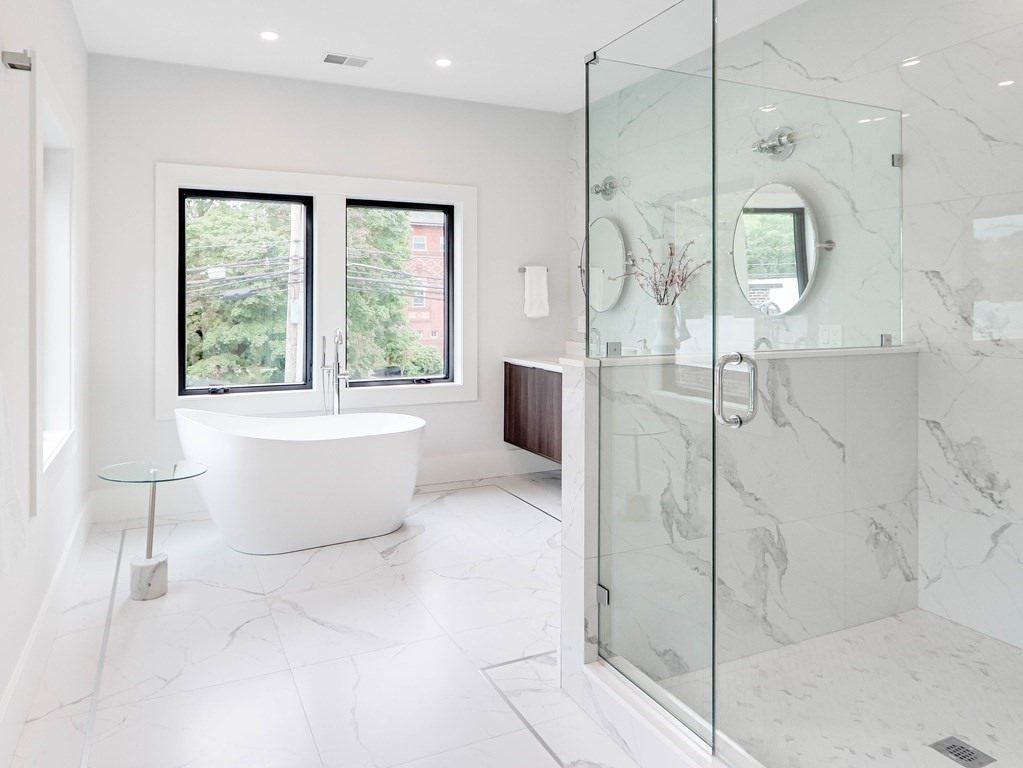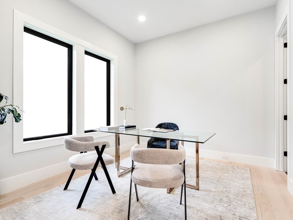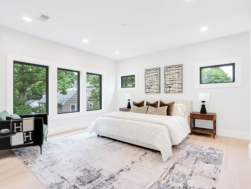 Stunning newly built home located in the heart of Newton Highlands. This modern single-family alternative is drenched in sunlight and has a fabulous view of the grounds. The entry-level has 10 ft ceilings and an open floor plan in the living/dining room/kitchen: the living room features a stone fireplace; the chef’s kitchen is state-of-the-art and leads out to a covered patio and the beautiful yard. There is an office/bedroom with a full bathroom on this level, direct access from the 2-car garage to a mudroom, and a powder room. The second level features a primary suite with a spa-like bathroom and two walk-in closets, two additional en suite bedrooms, and laundry. On the top floor, a large open area is perfect for a playroom or family room. The finished basement with its own entrance offers an entertainment/playroom and an additional bedroom and bathroom. This wonderful home is perfect for nesting and entertaining, plus steps to great coffee shops, restaurants, and the Green Line