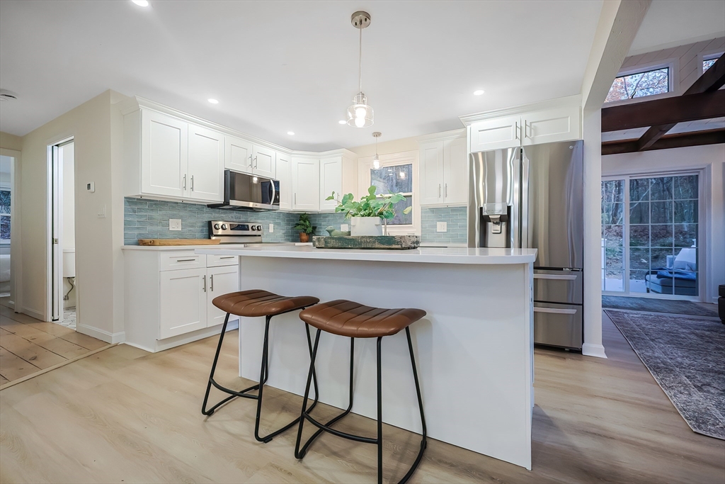 WELCOME TO YOUR COASTAL DREAM HOME! Prepare to be wowed by this gorgeous renovated property recently featured in Magnolia TV's Beachfront Bargain Hunt Renovation! Just in time for summer - now's your chance to start creating memories at your own seaside retreat. Perfectly nestled on a peaceful 1/2 acre wooded lot in the exclusive Kingsbridge Shores community with access to the sandy beach right down the road. You'll fall in love with the fantastic OPEN FLOOR PLAN and all the thoughtful details and upgrades throughout. FULLY REMODELED for modern living - Light and bright with high ceilings. Stunning NEW Chef's Kitchen.1st floor Primary Suite. Plenty of space to spread out in the expansive Family Room, fireplaced Living Room, 3 more Bedrooms upstairs, huge finished Lower Level. Relax outdoors on the lovely Farmer's Porch and 2 spacious Decks. 3 NEW Bathrooms. NEW Electric. NEW furnace. NEW Central AC. NEW 4BR Septic. TURN-KEY and ready for you...come see what makes this home so special!