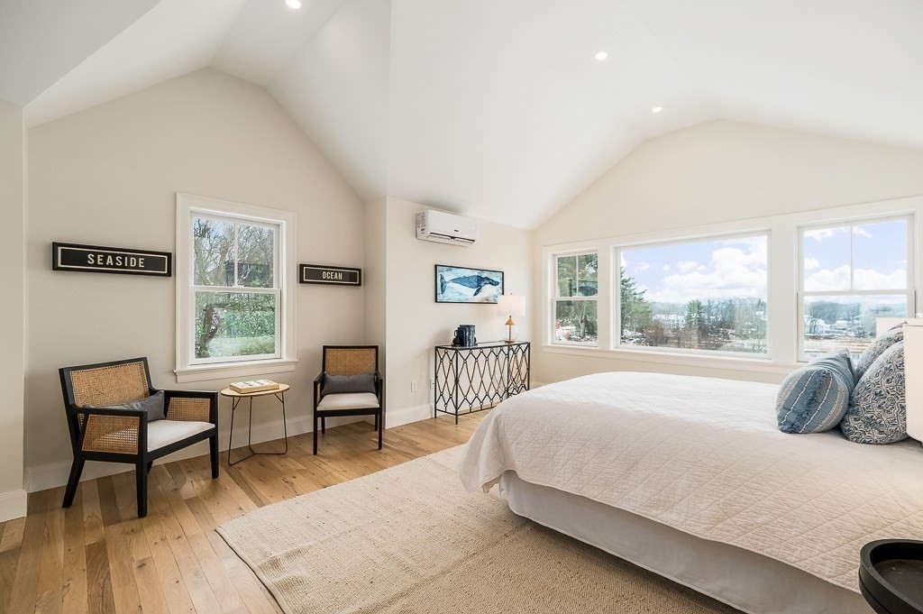Located at 5 Samoset Rd, this one remaining luxurious unit presents an unparalleled opportunity to experience refined living within its open concept floorplan with sunset views out over the Little River Estuary to the Annisquam River. The custom McCormick kitchen is a culinary dream with a large island, perfect for both casual dining and entertaining; featuring integrated paneled Bosch appliances, shaker cabinets, and stone countertops that blend seamlessly, creating a space that is as functional as it is beautiful. White oak flooring throughout. All 3.5 baths feature Kohler fixtures and beautiful stone tile work. Large primary suite includes a ceiling-mounted rainhead shower along with a freestanding tub. The top floor can used as a second BR w/ its own full bath and walk-in closet or as the perfect getaway, the views across Ipswich Bay are unparalleled. The outside is landscaped with perennial plantings, a native granite pathway, & sprinkler system. 1-car garage