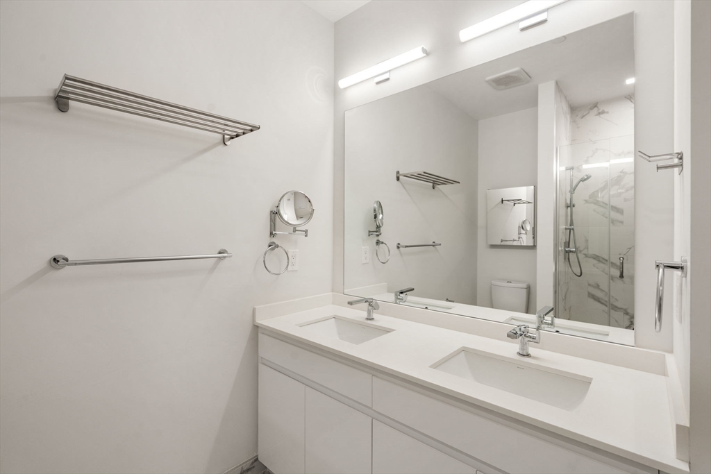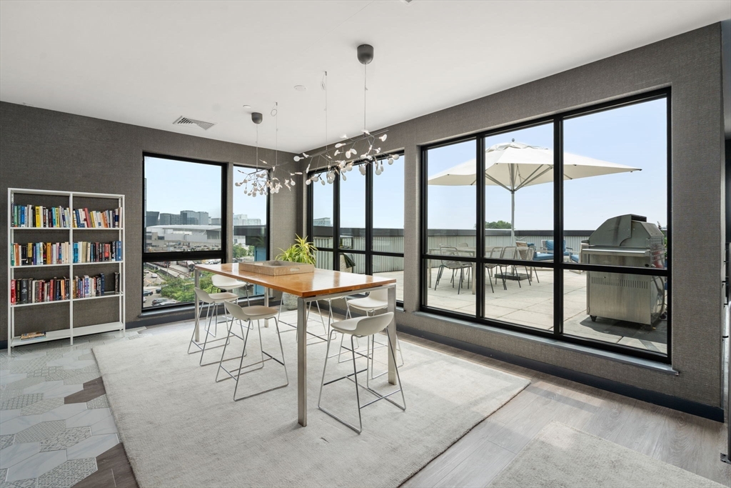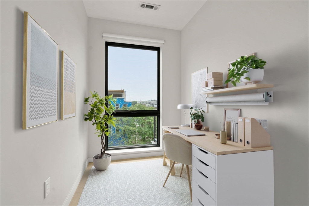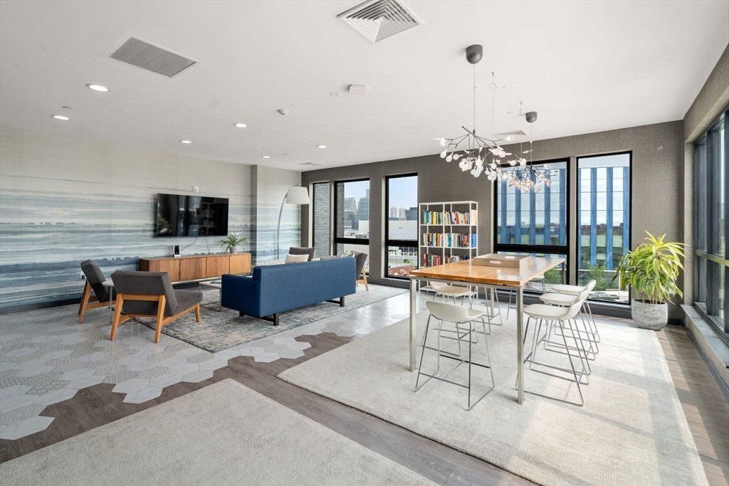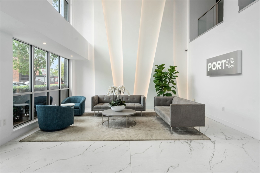 Step into modern living at Port 45, where style, comfort, and city energy converge. This bright two-bedroom, two-bath corner unit offers over 1,000 sq. ft. of thoughtfully designed space, including a versatile den ideal for a home office or creative retreat. Sunlight pours through floor-to-ceiling windows, highlighting an open layout that flows seamlessly from a sleek kitchen to living and dining areas made for entertaining. The southern-facing balcony adds extra space to relax, while the primary suite features a walk-in closet and spa-like bath with double vanity. Additional benefits include in-unit laundry and a deeded garage parking space. Residents enjoy a fitness center, club room, and a rooftop terrace with sweeping city and harbor views, along with concierge service, a pet-friendly community, and a dedicated pet spa. All this, in a prime location near the Seaport, Financial District, and South Boston’s best dining and nightlife.
