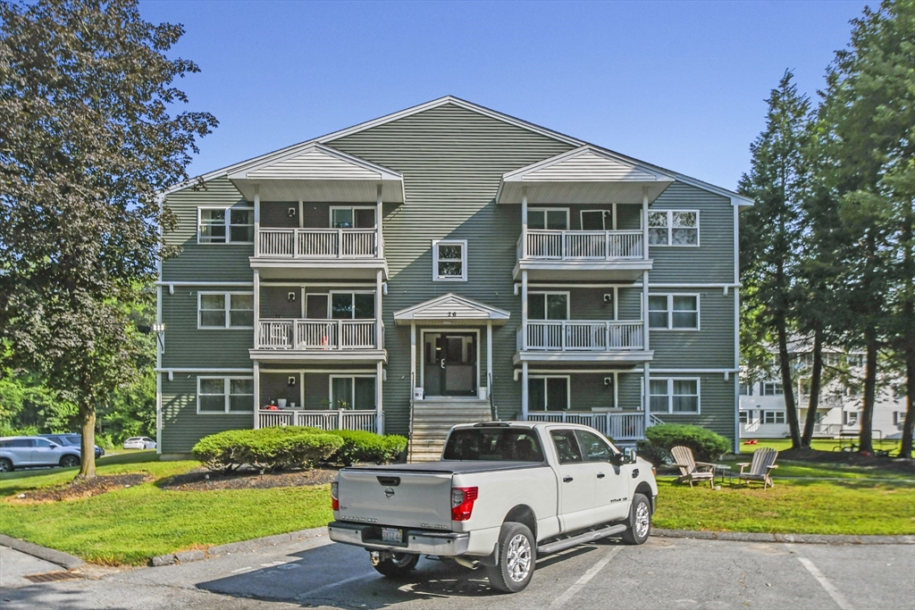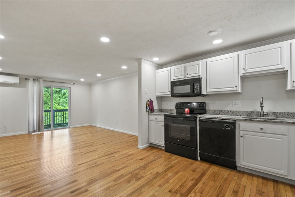 Welcome to low-maintenance living with style & convenience. This beautifully maintained condo offers an open-concept layout, featuring a spacious kitchen & living room w/ gleaming hardwood floors and recessed lighting throughout. The kitchen boasts ample white cabinetry & granite countertops and newer appliances (2022). Enjoy a sun-filled living room w/ a slider that opens to your own private, covered balcony looking out at the serene view of the woods. The home offers two generously sized bedrooms, including a primary suite w/ a walk-in closet and private half bath. A full bath and convenient in-unit laundry hookups add to the comfort and functionality. Stay comfortable year-round with a modern mini-split system for heating and cooling. Located just moments from downtown Leominster, you'll have easy access to shopping, dining, and local amenities—including Starburst, fireworks, and seasonal festivities. Don’t miss your chance to own this move-in-ready condo in a prime location