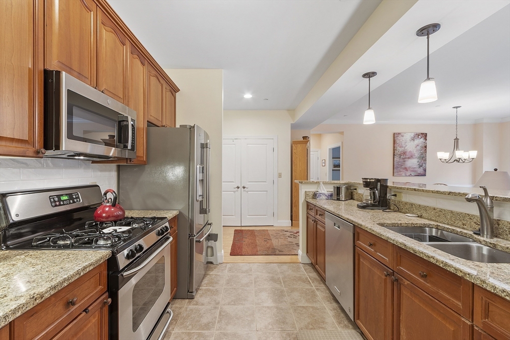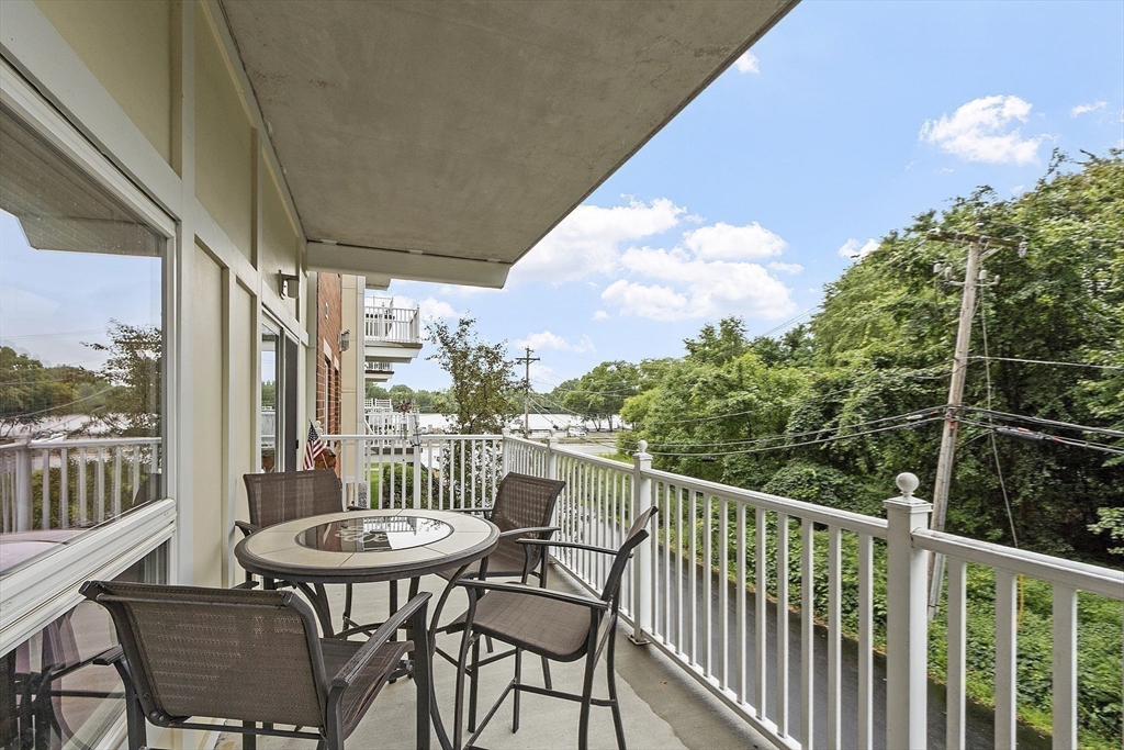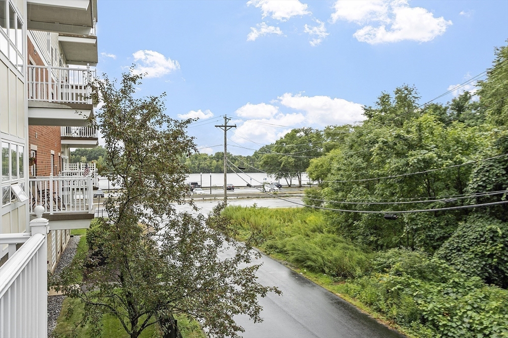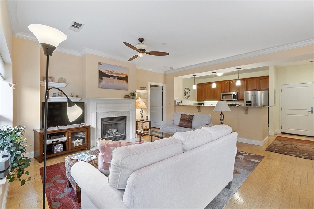 Welcome to Grandview Condominiums. This beautifully maintained 2 bedroom, 2 full bath condo offers an ideal blend of modern finishes and classic charm. Step inside to find gleaming hardwood floors, crown molding, and a gas fireplace that creates a cozy focal point in the open-concept living area. The kitchen is a chef's delight, featuring granite countertops, stainless steel appliances, and ample clabinet space-perfect for both everyday meals and entertaining. The spacious primary bedroom includes generous closet space, a second bedroom both with full bathrooms and tasteful bath finishes. Enjoy the breathtaking water views from your private balcony-the perfect spot for morning coffee or evening relaxation. For added convenience, this unit includes an in-unit washer/dryer, central air and assigned parking. Located just minutes from major highways, shopping, dining and all that downtown Lowell has to offer, this condo truly has it all. Don't miss this rare opportunity at Grandview