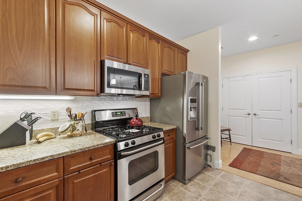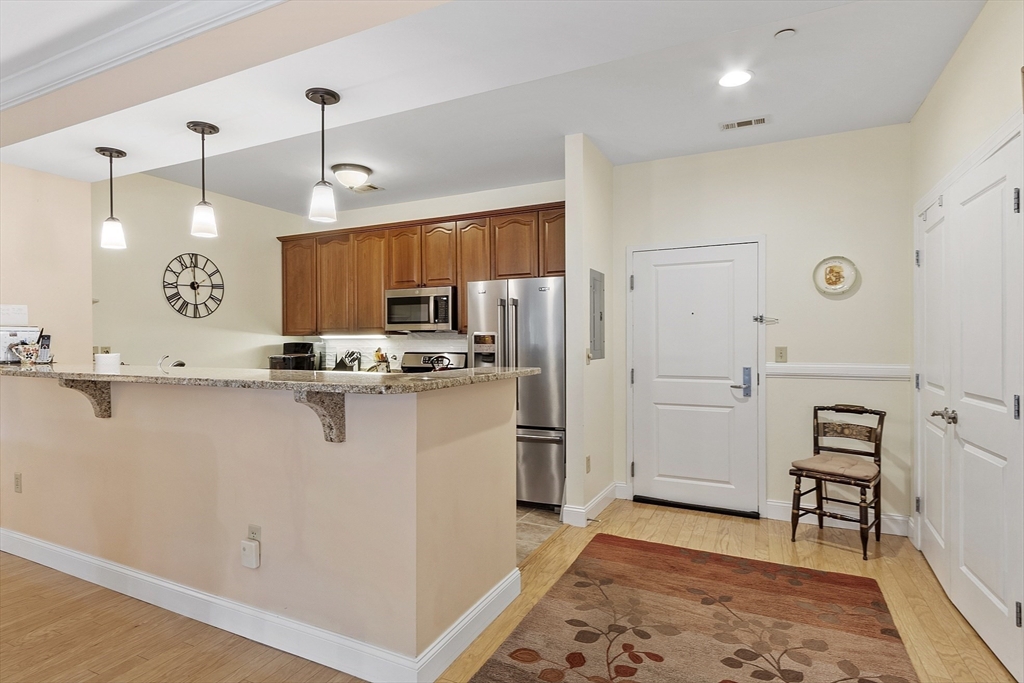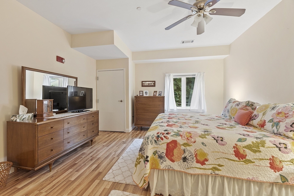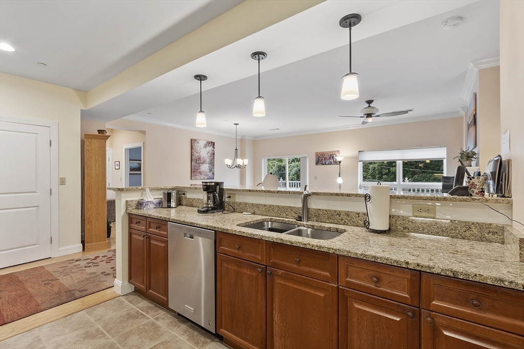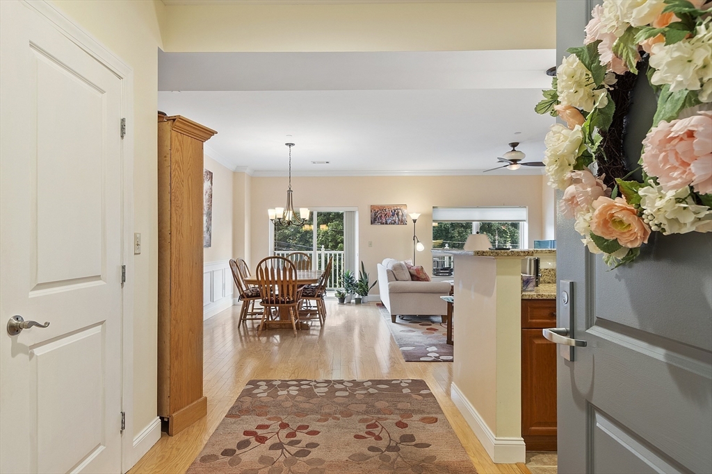 Welcome to Grandview Condominiums. This beautifully maintained 2 bedroom, 2 full bath condo offers an ideal blend of modern finishes and classic charm. Step inside to find gleaming hardwood floors, crown molding, and a gas fireplace that creates a cozy focal point in the open-concept living area. The kitchen is a chef's delight, featuring granite countertops, stainless steel appliances, and ample clabinet space-perfect for both everyday meals and entertaining. The spacious primary bedroom includes generous closet space, a second bedroom both with full bathrooms and tasteful bath finishes. Enjoy the breathtaking water views from your private balcony-the perfect spot for morning coffee or evening relaxation. For added convenience, this unit includes an in-unit washer/dryer, central air and assigned parking. Located just minutes from major highways, shopping, dining and all that downtown Lowell has to offer, this condo truly has it all. Don't miss this rare opportunity at Grandview
