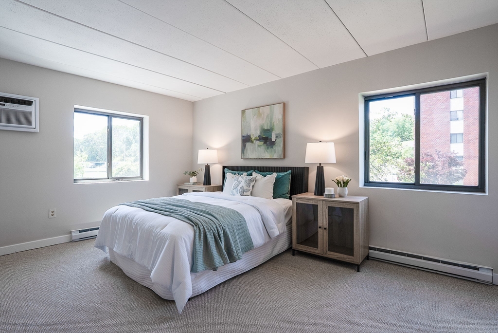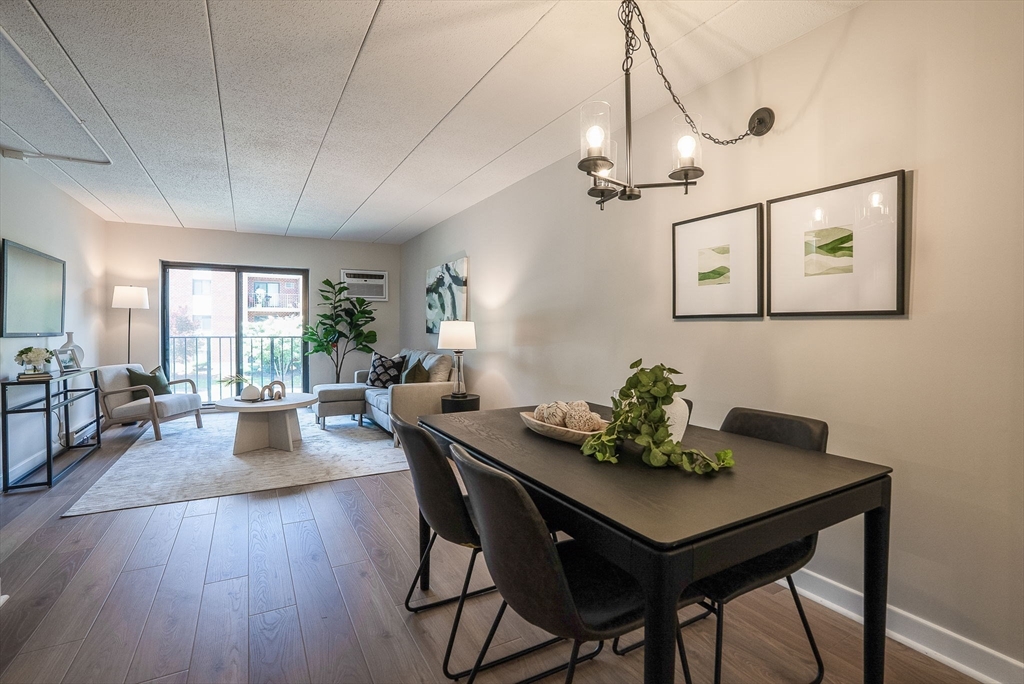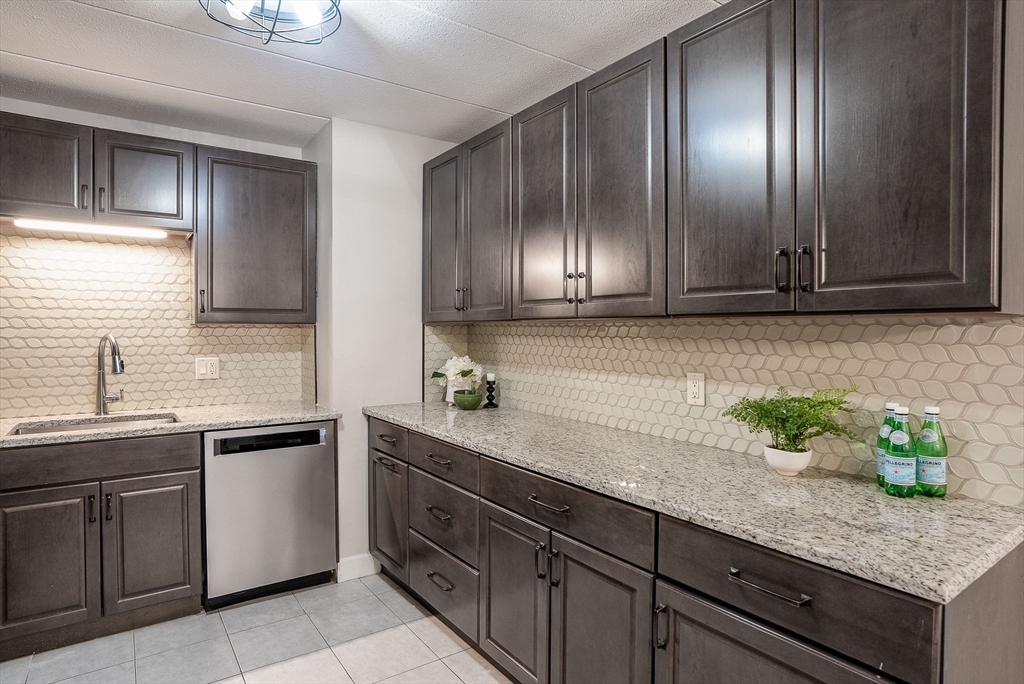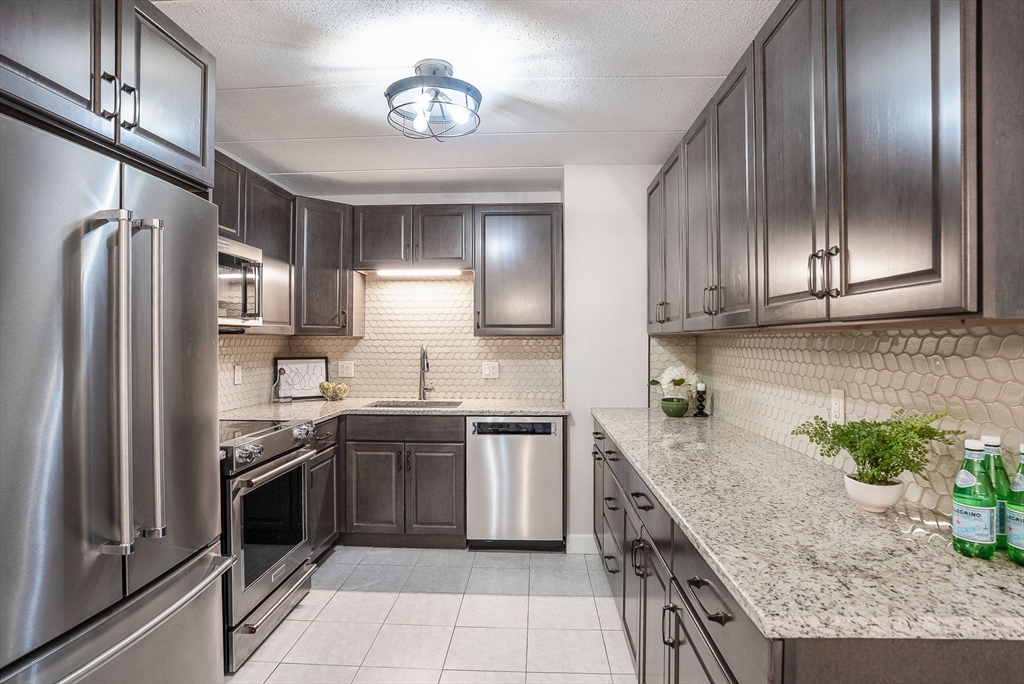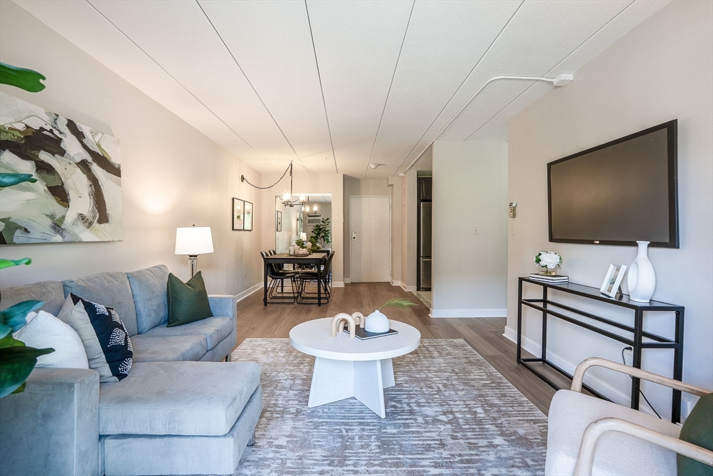 Stylishly renovated 2-bedroom, 2-bath condo—move-in ready! Open-concept design features gleaming new laminate floors flowing from dining to spacious living room. Chef's kitchen boasts stainless steel appliances, granite countertops, and sleek modern finishes. Primary suite includes ensuite bath and walk-in closet, plus both bedrooms feature plush new carpeting. Convenient in-unit laundry! Steps from MBTA commuter rail at Melrose Highlands for quick Boston access. Easy vehicle access off I-93, with Routes 1 and 95 nearby for convenient commuting. Foodies enjoy nearby dining in Stoneham Center, Melrose, and Wakefield. Nature lovers appreciate quick access to parks trails and Lake Quannapowitt! Solid brick construction with elevator access adds convenience and durability. Quality finishes and a prime location!