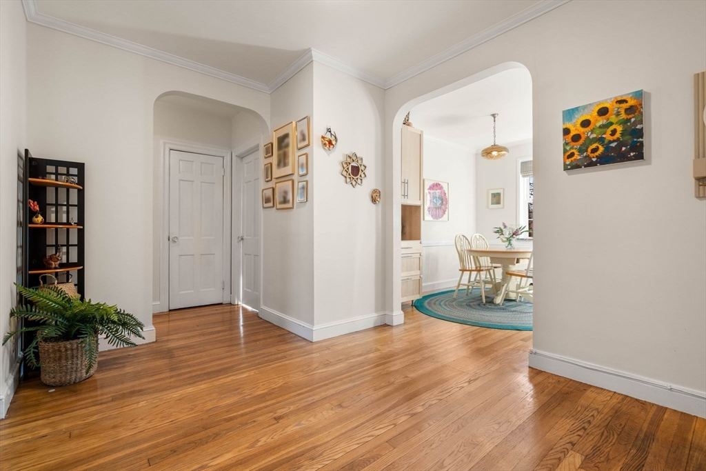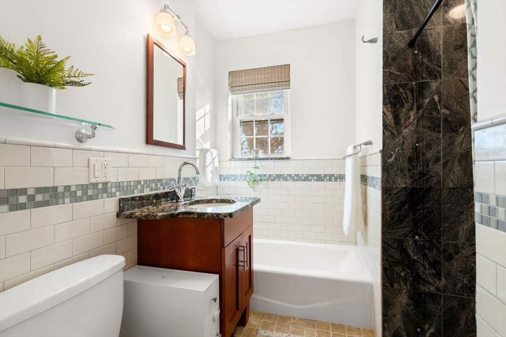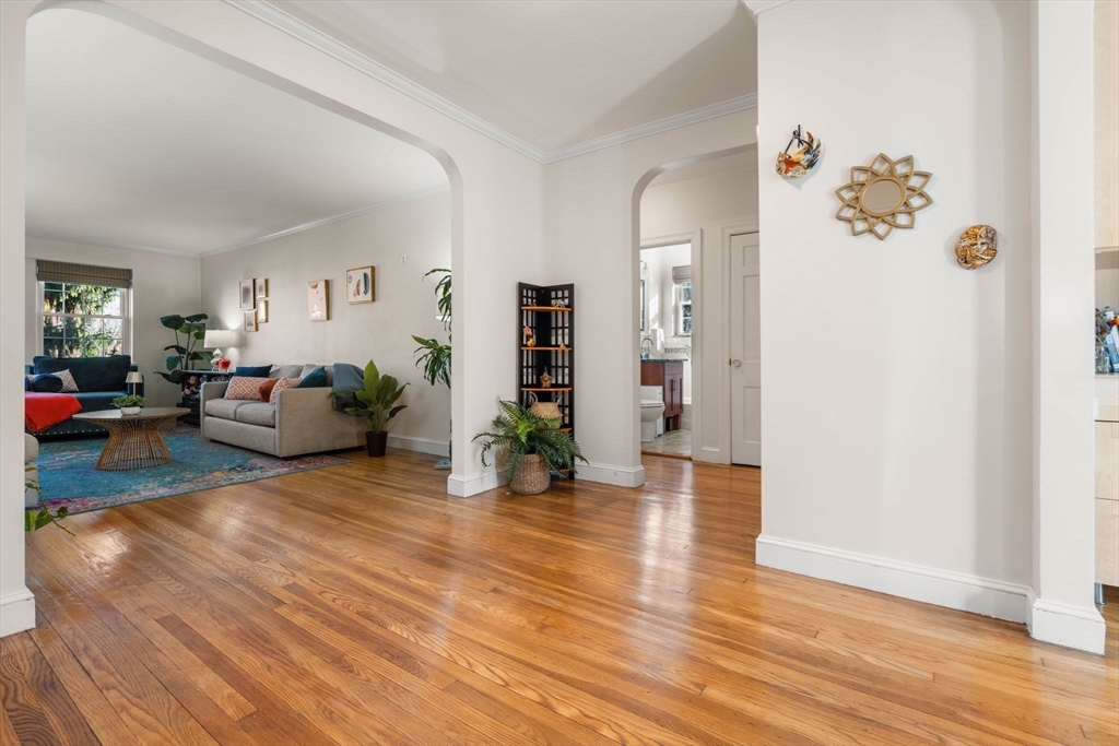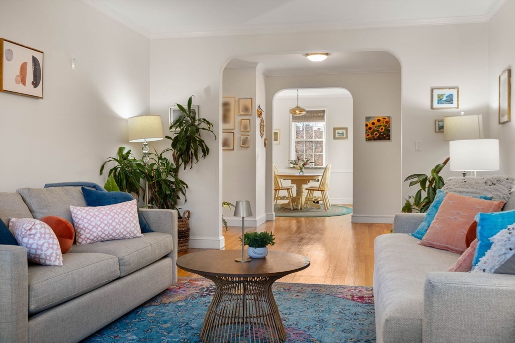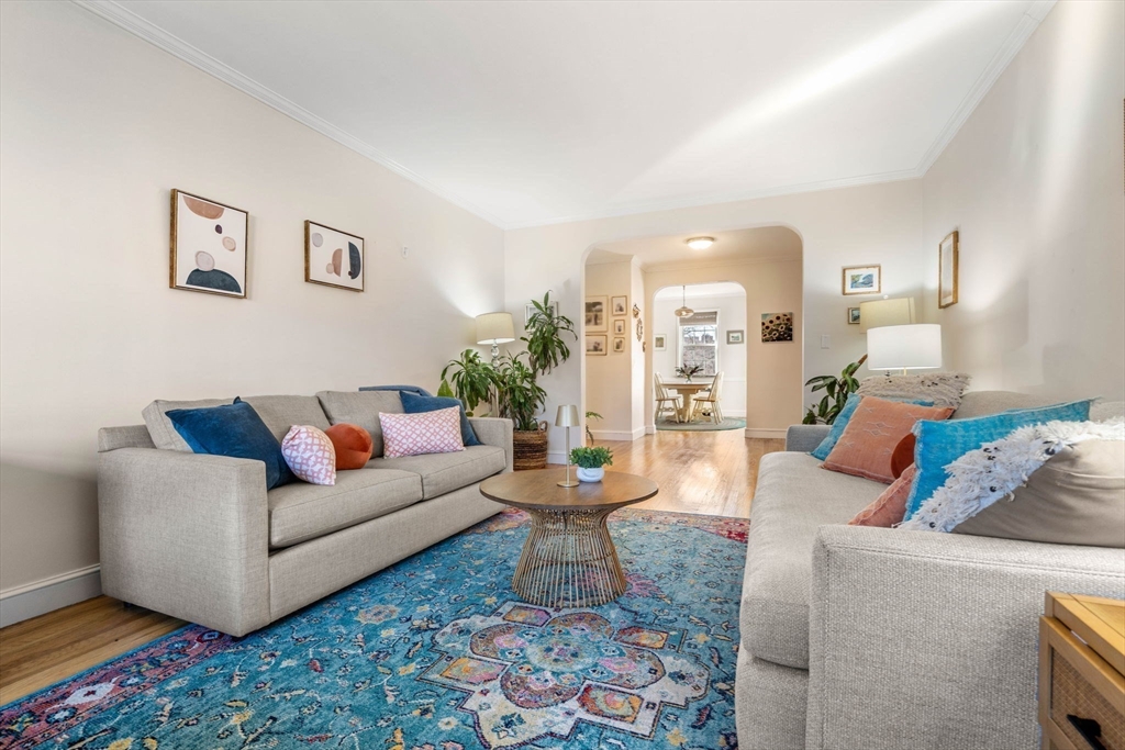 Welcome to 1500 Beacon St, Residence #3 - a spacious 2 bedroom condo with parking nestled in the heart of Brookline, perfectly positioned between Coolidge Corner and Washington Sq. This corner home is situated on the elevated side of Beacon and boasts south, east, and west exposures. Upon entering, you're greeted by a gracious foyer with high ceilings, natural light and hardwood floors leading to an impressively large living room. The bright dining room connects to the kitchen, featuring a recently updated backsplash, high-end cherry cabinets, granite countertops, double sink, stainless steel appliances, and gas cooking. The 2 bedrooms are generously sized with ample closet space. The full bathroom is appointed with granite vanity, separate walk-in marble shower and bathtub. 1 Deeded parking space and additional storage included. Recent updates: new energy-efficient windows (2022) and new roof (2023). Heat/Hot water incl. in condo fee. Professionally managed & pet friendly association.