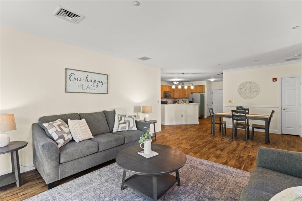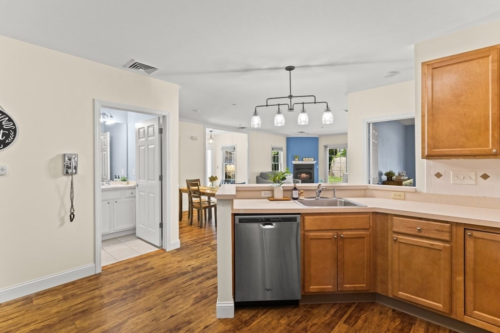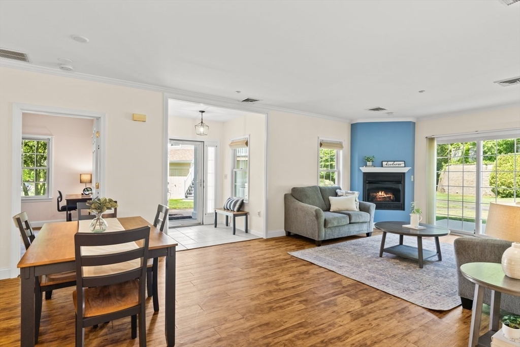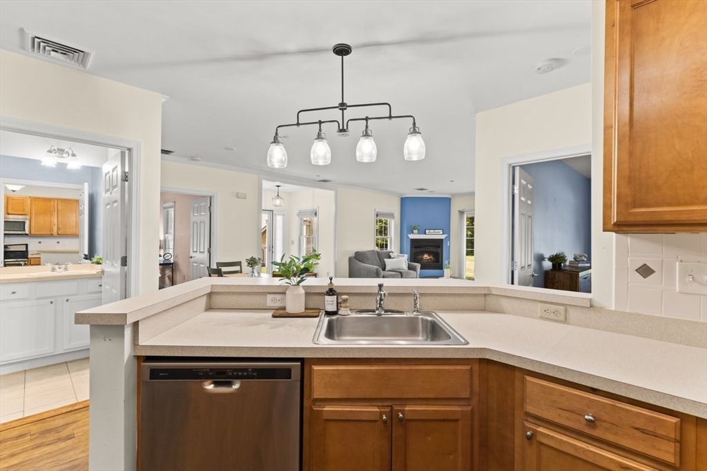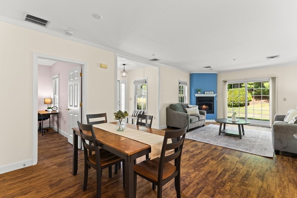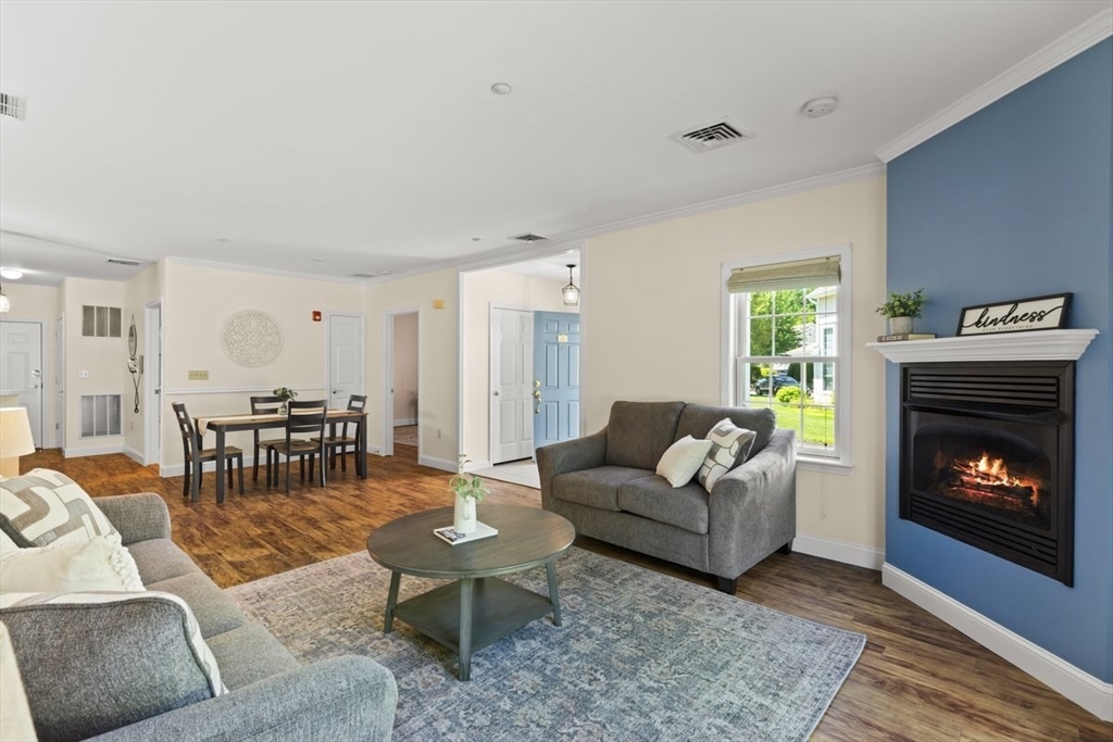 Enjoy relaxed, maintenance-free living in this beautifully bright one-level end unit in the sought-after 55+ community of Heron Crest. Thoughtfully designed for comfort and convenience, this spacious home offers two generously sized bedrooms, including a primary suite with a full bath. The open-concept kitchen, dining area, and fireplaced living room provide a warm and welcoming space perfect for everyday living or hosting friends and family. Additional highlights include efficient gas heat, central air conditioning, and an attached one-car garage. Situated on a desirable corner lot, this end unit features a patio and professionally landscaped grounds—an ideal setting to enjoy a vibrant, carefree lifestyle. Convenient to the Train station and all the amenities that downtown Mansfield offers,