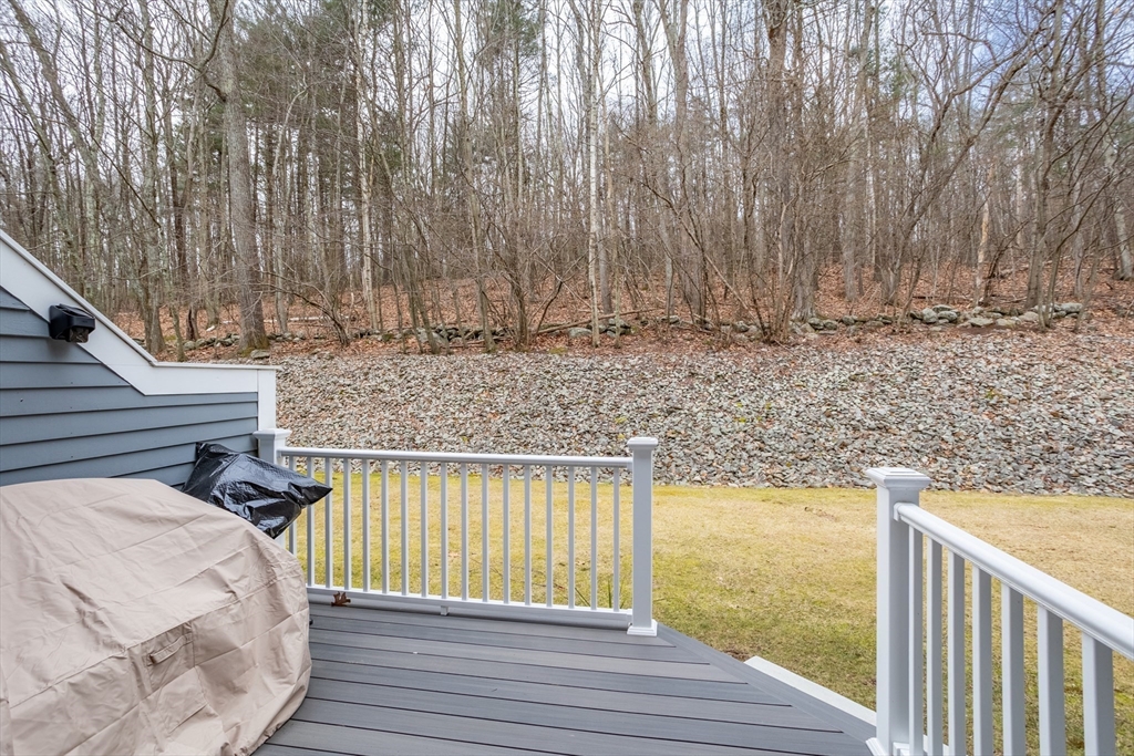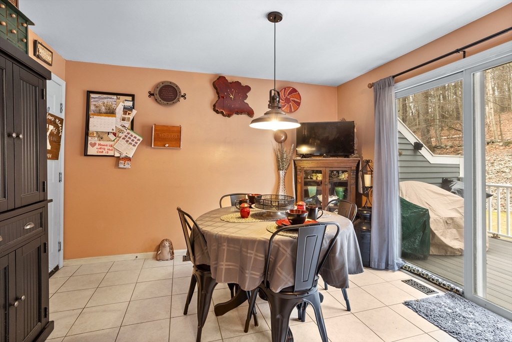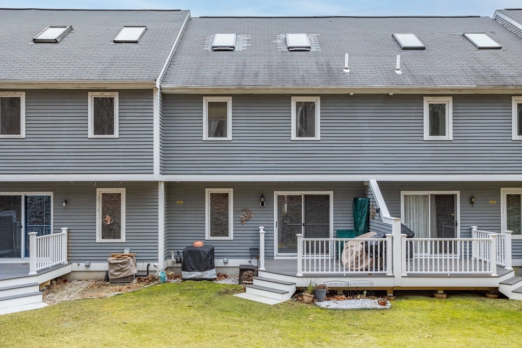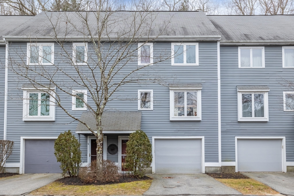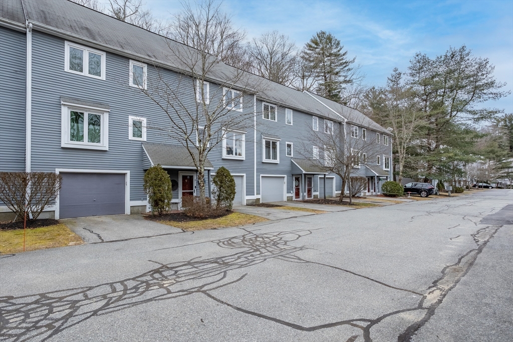 Fantastic townhome, in sought-after Country Hollow Village, offering a tranquil yet convenient lifestyle. This home features new carpet, three finished levels and a garage with laundry and storage. The main level offers guest bath, a cozy living room, and an open kitchen/dining area with sliders that lead to a new private composite deck overlooking serene wooded views. The second floor includes two spacious bedrooms, a full bath, and a primary suite with a walk-in closet with private bath access. The top floor boasts a versatile bonus room with skylights, perfect as a family room, gym or office. Whether a first-time buyer or looking to downsize, this home may be perfect for you! Nestled in a peaceful neighborhood, it’s close to NH shopping and MA highways, yet away from the hustle and bustle.