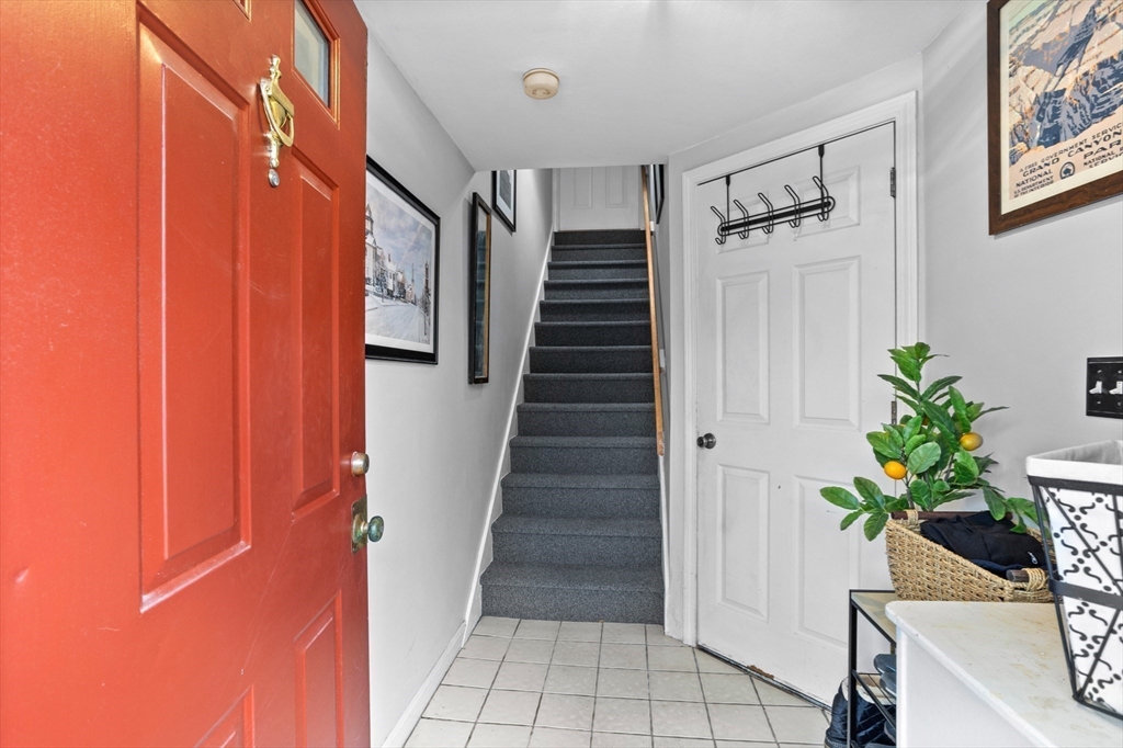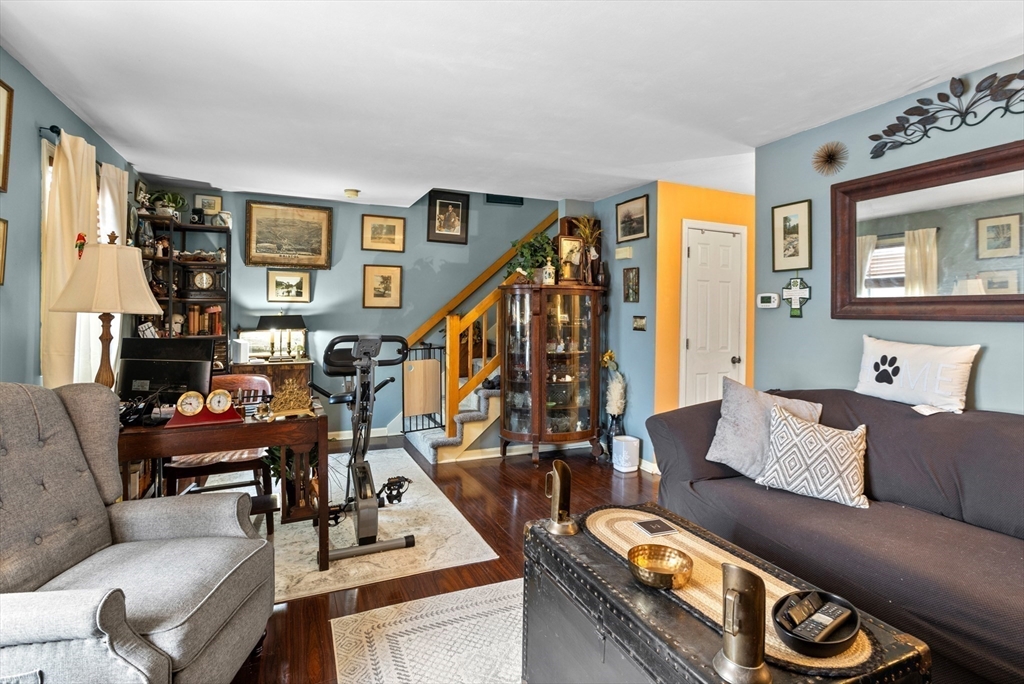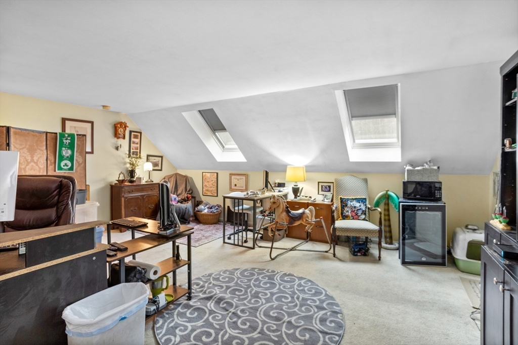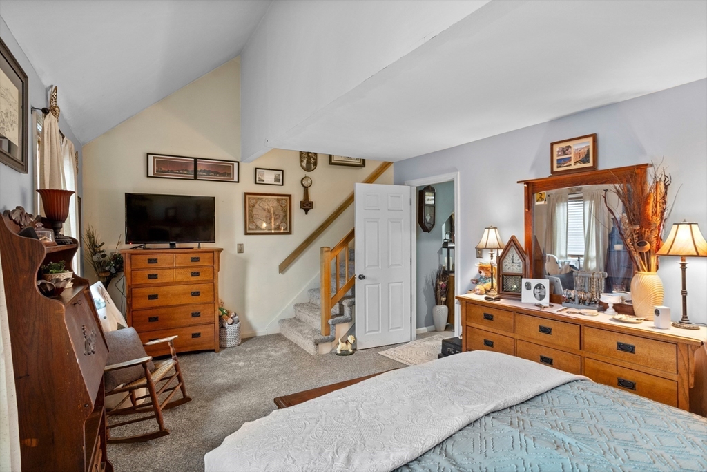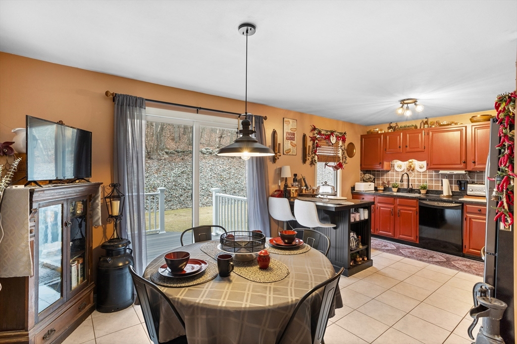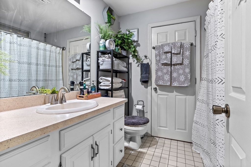 Fantastic townhome, in sought-after Country Hollow Village, offering a tranquil yet convenient lifestyle. This home features new carpet, three finished levels and a garage with laundry and storage. The main level offers guest bath, a cozy living room, and an open kitchen/dining area with sliders that lead to a new private composite deck overlooking serene wooded views. The second floor includes two spacious bedrooms, a full bath, and a primary suite with a walk-in closet with private bath access. The top floor boasts a versatile bonus room with skylights, perfect as a family room, gym or office. Whether a first-time buyer or looking to downsize, this home may be perfect for you! Nestled in a peaceful neighborhood, it’s close to NH shopping and MA highways, yet away from the hustle and bustle.