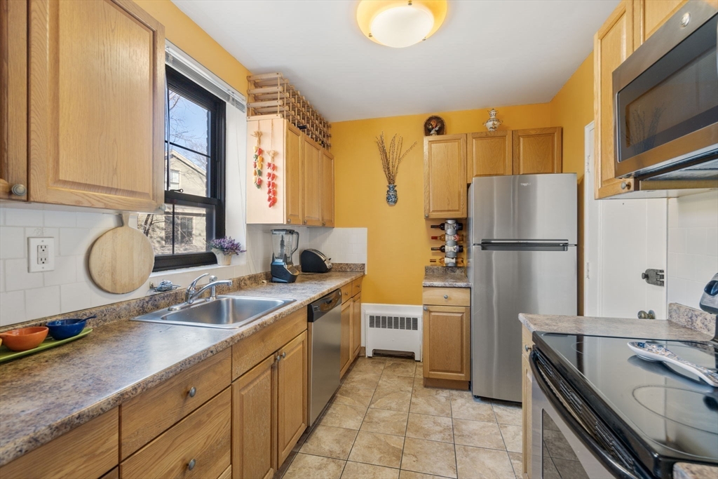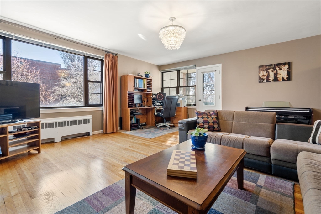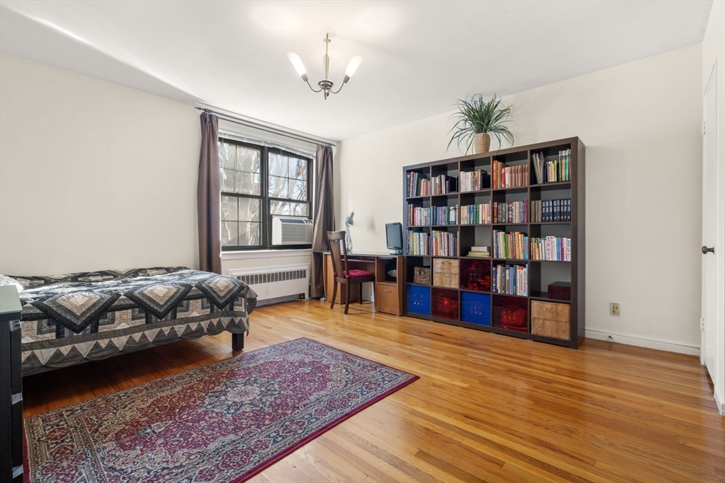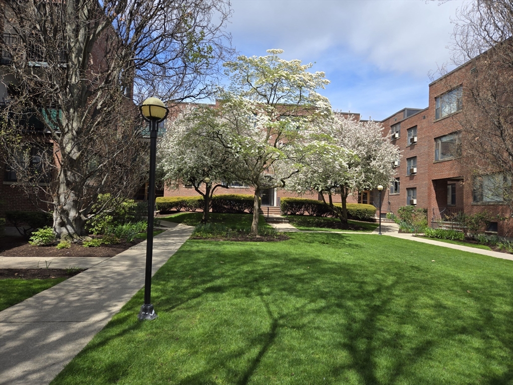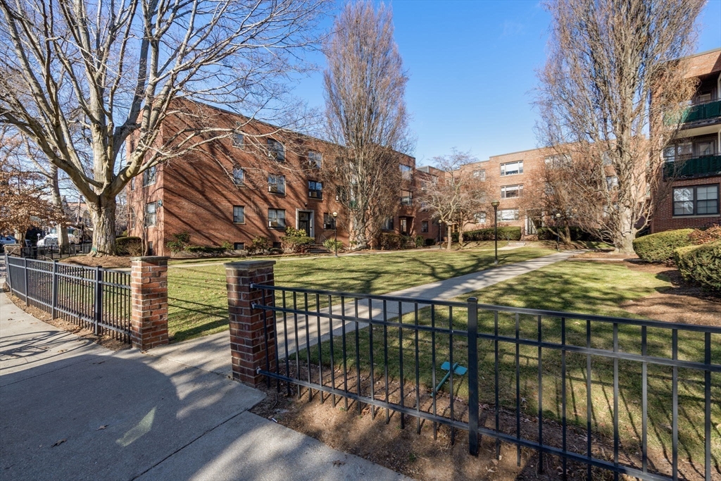 This exclusive condo, never before on the market, offers a rare opportunity to own a unique property in a prime Brookline location. Nestled in a quiet, picturesque courtyard, this spacious 2-bedroom, 2-bath residence provides a peaceful urban retreat. The well-designed layout offers ample space to entertain, unwind, or comfortably work from home. A sun-filled living room with an oversized picture window frames stunning seasonal views, while the primary suite boasts a 16' x 14'bedroom. The second bedroom, measuring 14' x 14', offers comfort and versatility. Ideally located near Coolidge Corner, Brookline Village, and Longwood Medical, this home is seconds from Pierce School, #1 ranked K-8 in the state and offers easy access to public transit Green C/D lines with a Walk Score of 95. Features include a private balcony, deeded garage parking, a 100 sq ft storage unit, bike racks, new laundry facilities (potential for in-unit laundry), pet-friendly, lead-safe compliant, and low condo fees.
