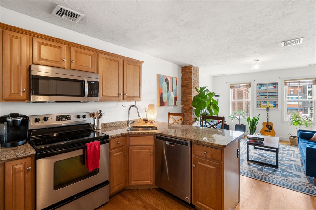 Beautiful 1 bed 1 bath PLUS bonus room in the heart of South Boston with incredibly low condo fee! This unit has an open concept kitchen with granite counters, stainless appliances and opens up to a sunny & bright living room and your own private back deck. The bedroom is big enough for a king size bed and has great closet space. The bonus room off the living room is ideal for a home office, workout room, or extra storage space. Gleaming hardwood floors and central A/C round out this gorgeous home! Additional private storage located in the basement. Don't miss your chance to live in the heart of it all, just moments from the best shops and restaurants Broadway has to offer, newly restored Thomas Park, MBTA Bus lines and T, and Carson beach.