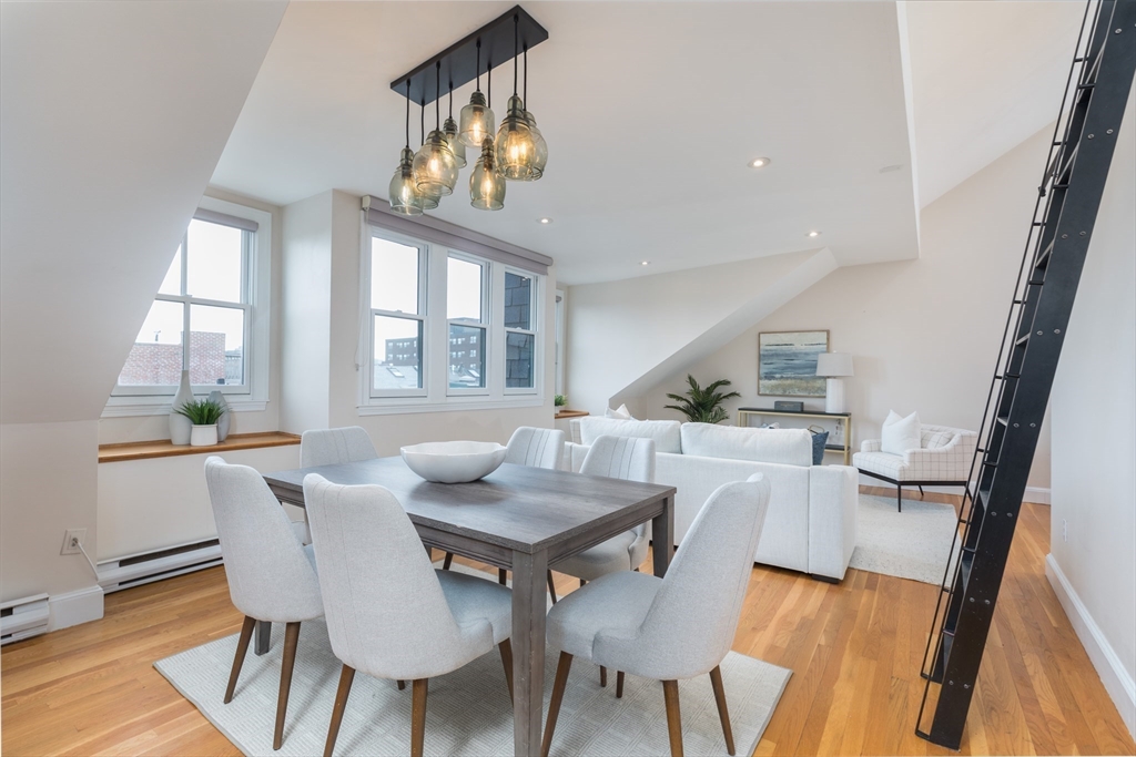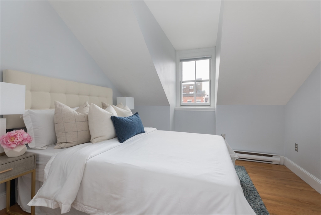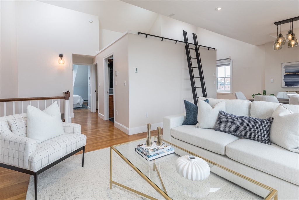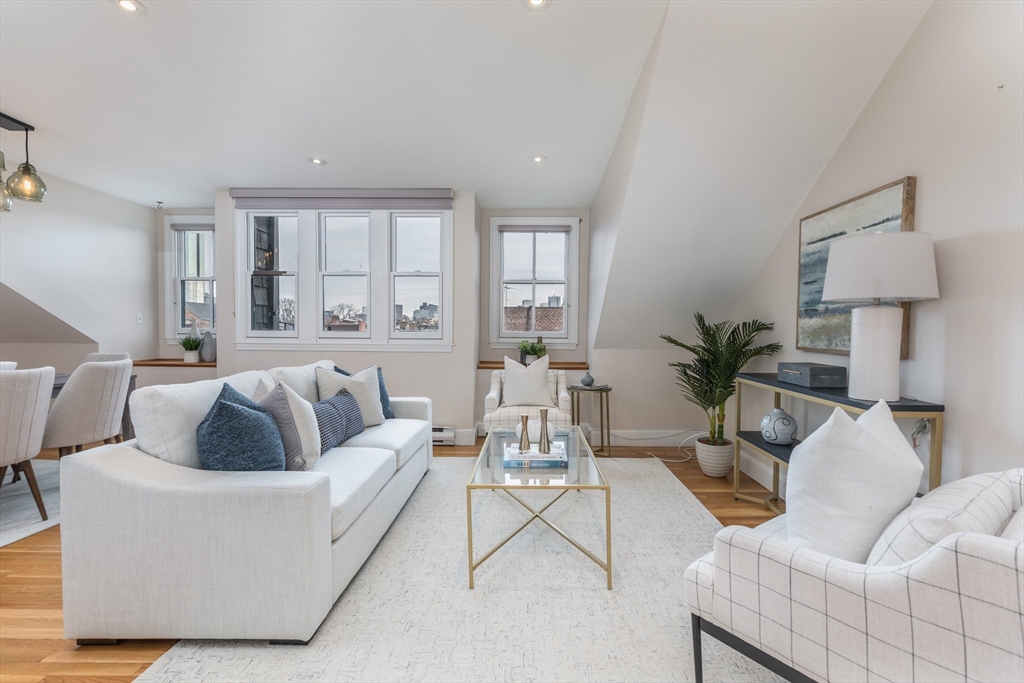 Welcome to this inviting & thoughtfully laid out 2 bedroom Penthouse corner home with delightful natural light, offering breathtaking views of downtown and Back Bay. As you step inside, you will be greeted by an open living/dining floor plan space featuring cathedral ceilings, expansive windows & multiple exposures, creating a bright & airy ambiance. The updated kitchen is designed for efficiency and ease. The 2 well-proportioned bedrooms are South facing & provide ample closet space/storage. The contemporary bathroom offers a double vanity, heated towel rack, modern walk-in shower, heated floors & washer/dryer combo unit. Highlights also include: versatile loft space, gleaming hardwood floors, high ceilings, & roof rights/balcony for potential outdoor enjoyment. Nestled in a prime location, this pet-friendly building is just moments away from the vibrant restaurants, boutiques, and amenities of the South End, as well as convenient public transportation and Northeastern University.