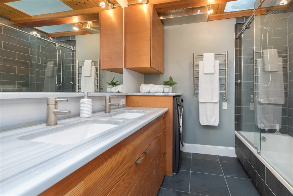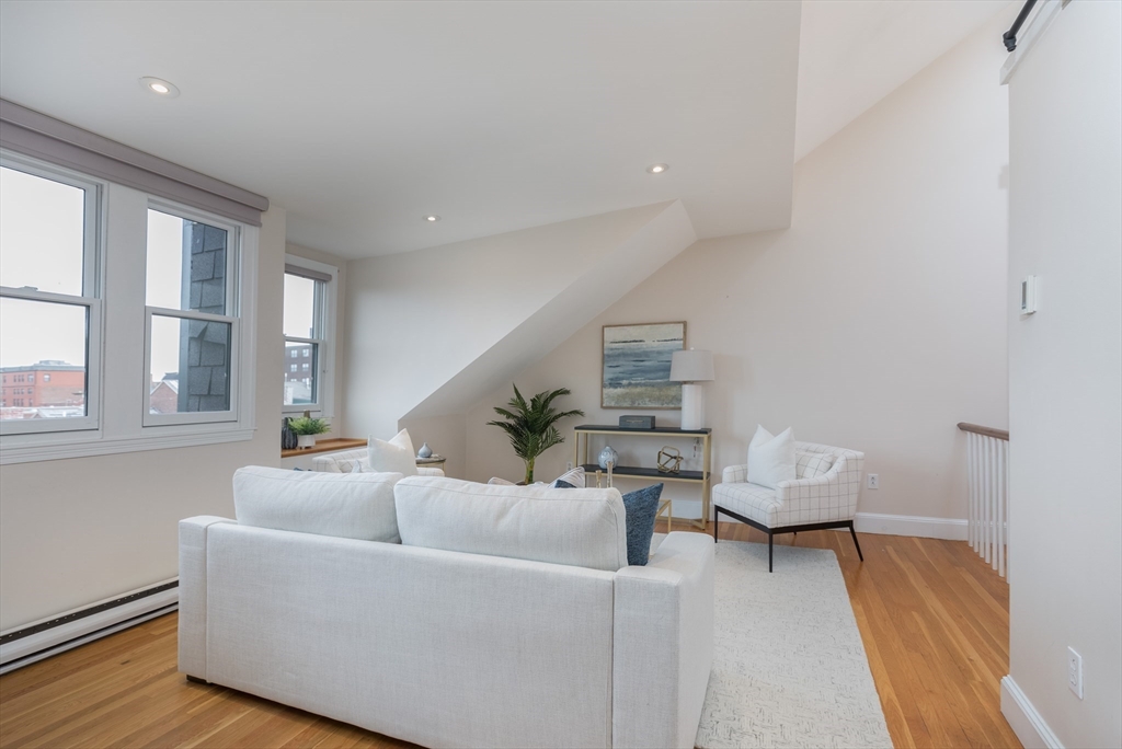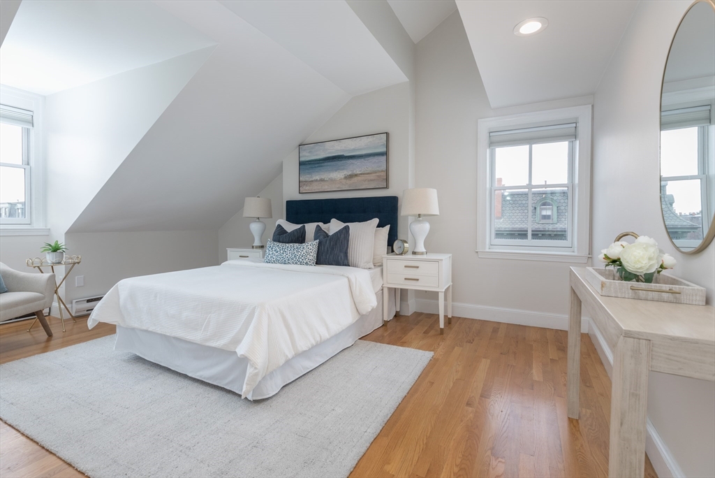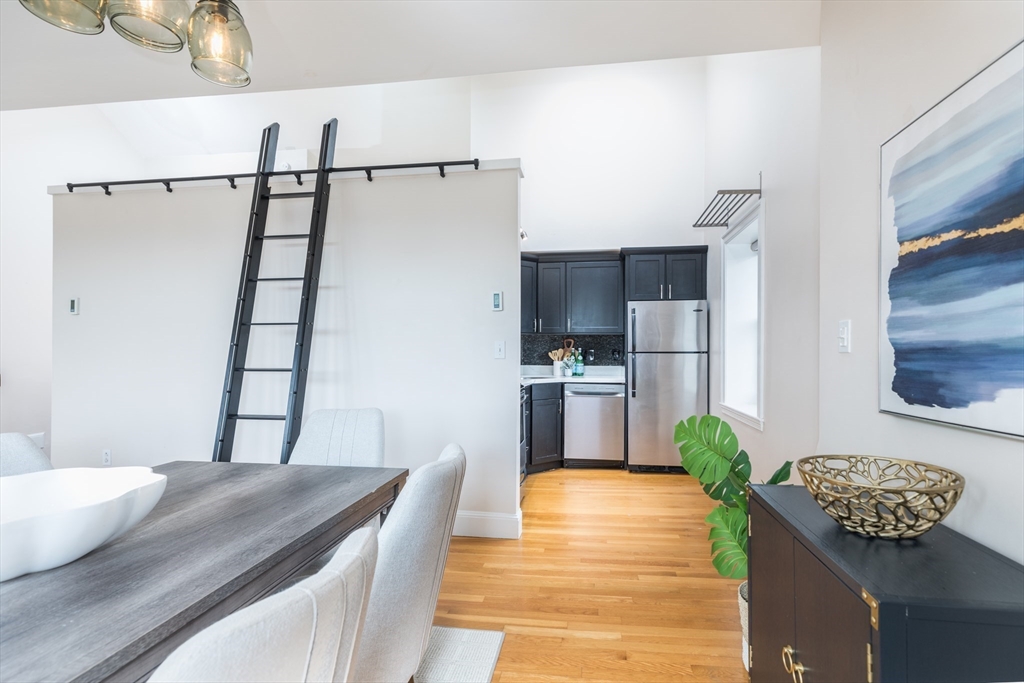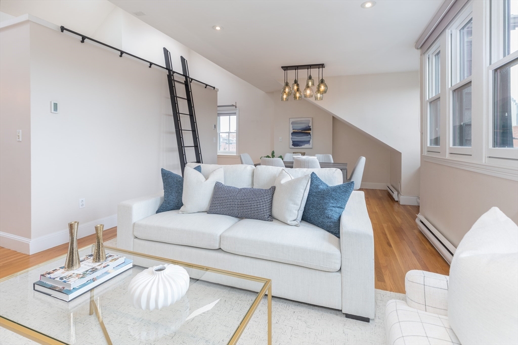 Welcome to this inviting & thoughtfully laid out 2 bedroom Penthouse corner home with delightful natural light, offering breathtaking views of downtown and Back Bay. As you step inside, you will be greeted by an open living/dining floor plan space featuring cathedral ceilings, expansive windows & multiple exposures, creating a bright & airy ambiance. The updated kitchen is designed for efficiency and ease. The 2 well-proportioned bedrooms are South facing & provide ample closet space/storage. The contemporary bathroom offers a double vanity, heated towel rack, modern walk-in shower, heated floors & washer/dryer combo unit. Highlights also include: versatile loft space, gleaming hardwood floors, high ceilings, & roof rights/balcony for potential outdoor enjoyment. Nestled in a prime location, this pet-friendly building is just moments away from the vibrant restaurants, boutiques, and amenities of the South End, as well as convenient public transportation and Northeastern University.