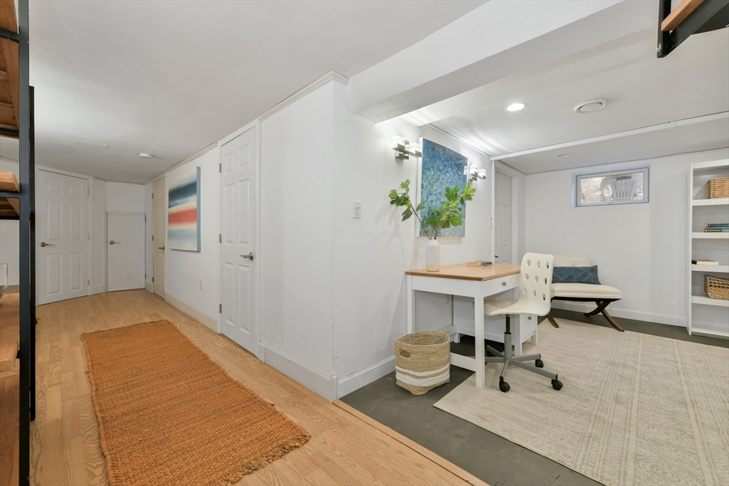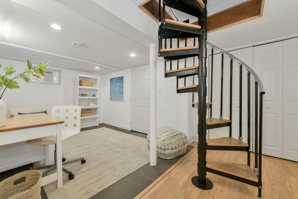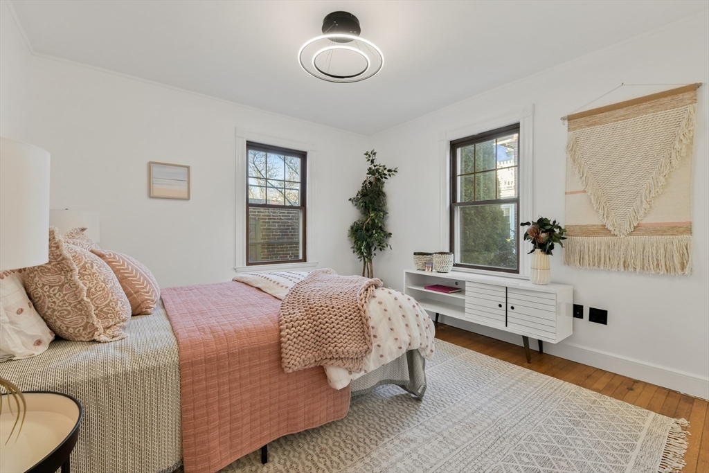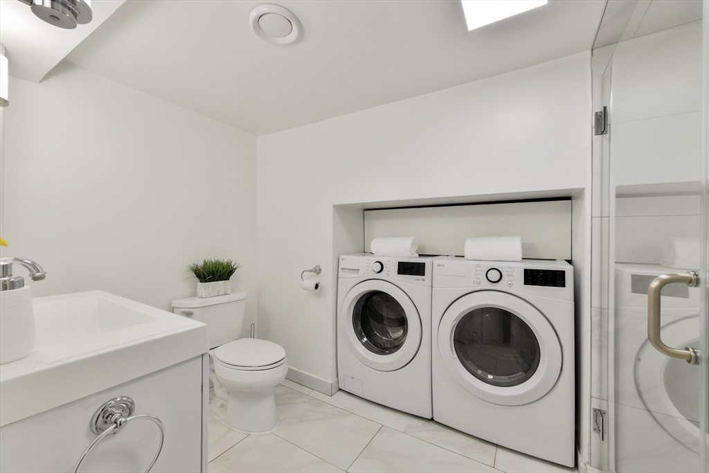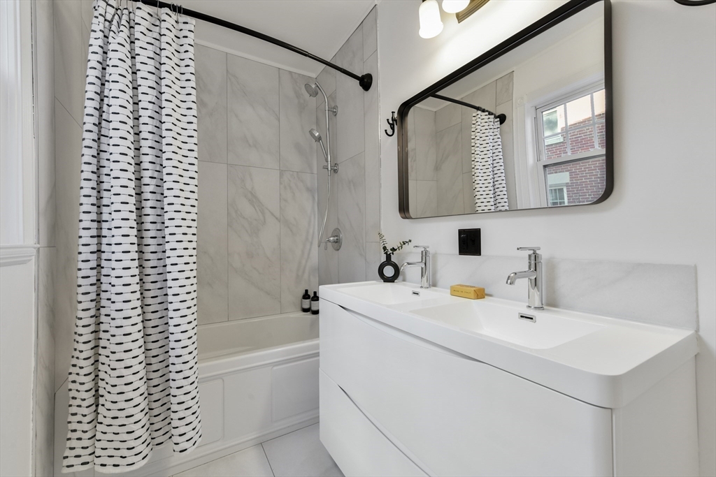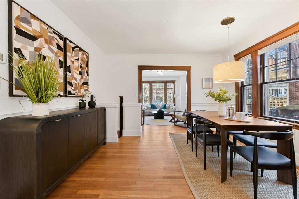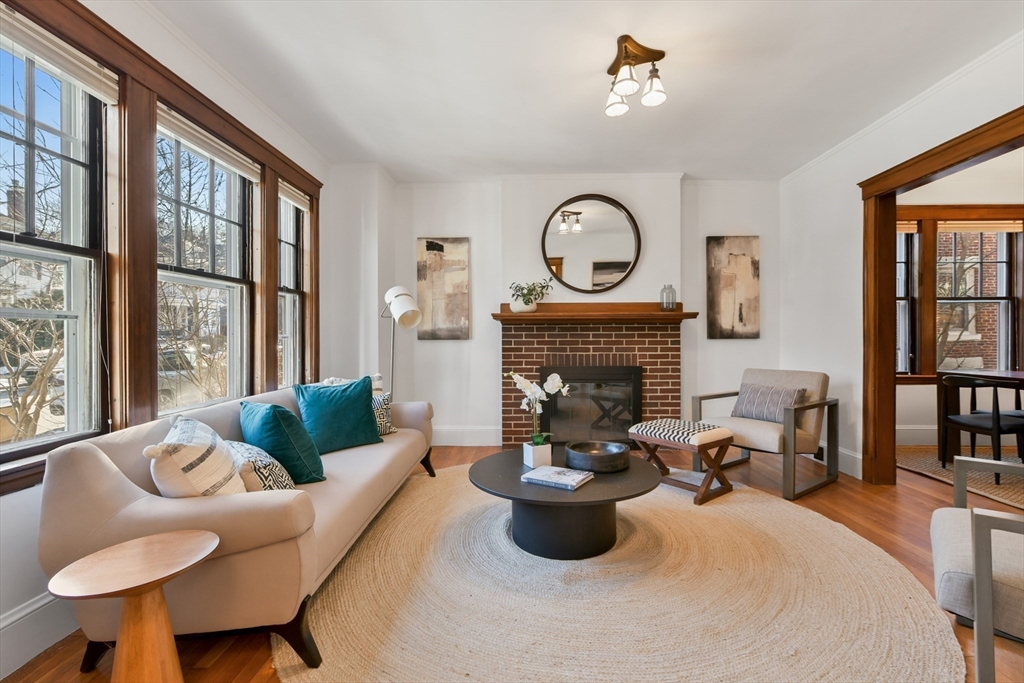 Nestled in the heart of Huron Village, this exceptional condo seamlessly blends charm with modern living. Step onto the inviting front porch and enter the first level. The foyer opens to an expansive, open-concept living area featuring a fireplaced living room, a dining room with a built-in cupboard, a spacious kitchen, and two bedrooms, each with its own bathroom.The additional 500+sf bonus space in the basement level includes a study, a full bathroom with washer/dryer units, and versatile space that can serve as a home office, workout area, or family room, along with closet rooms for extra storage. Enjoy the back porch and the convenience of garage parking. This property also offers easy access to public transportation, including Harvard Square, Porter Square, and Alewife Station, as well as being just a few blocks from an array of retail stores, shops, cafés, and eateries.