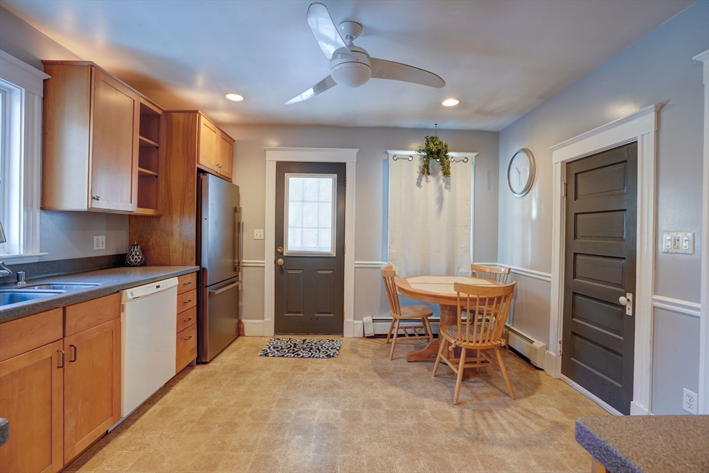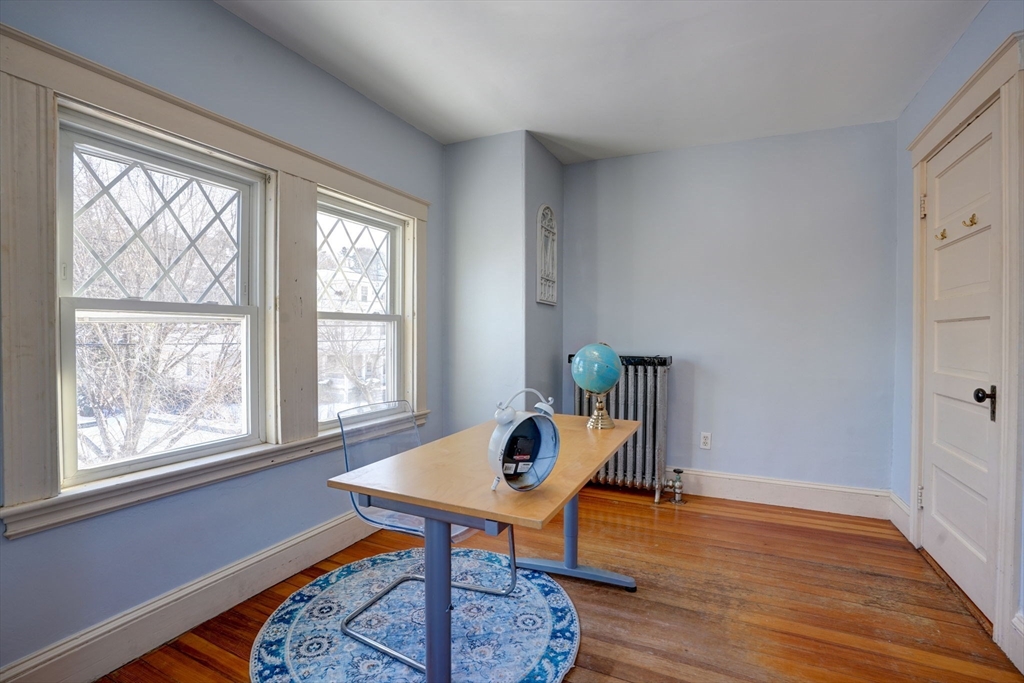 This well-maintained Colonial situated on a corner lot in the highly sought after Wollaston location within walking distance to the Wollaston Red Line T Station, public school, shops, restaurants and easy highway access! The 1st floor offers an updated eat-in kitchen with a formal dining room, a living room with a wood-burning fire place, and a half bath complete the 1st floor. The 2nd floor boasts three generous size bedroom with an office/4th bedroom, a full bathroom. There is a bonus unfinished walk up attic with potential for future expansion. The exterior featuring a full length front open porch, a brick patio in the private fenced-in backyard is great for parties and family gatherings. Open houses: Friday, Jan 24th, 4 pm - 5:30 pm, Sat Jan 25th & Sun Jan 26th noon - 2 pm, Mon Jan 27th 9:30am - 11am.