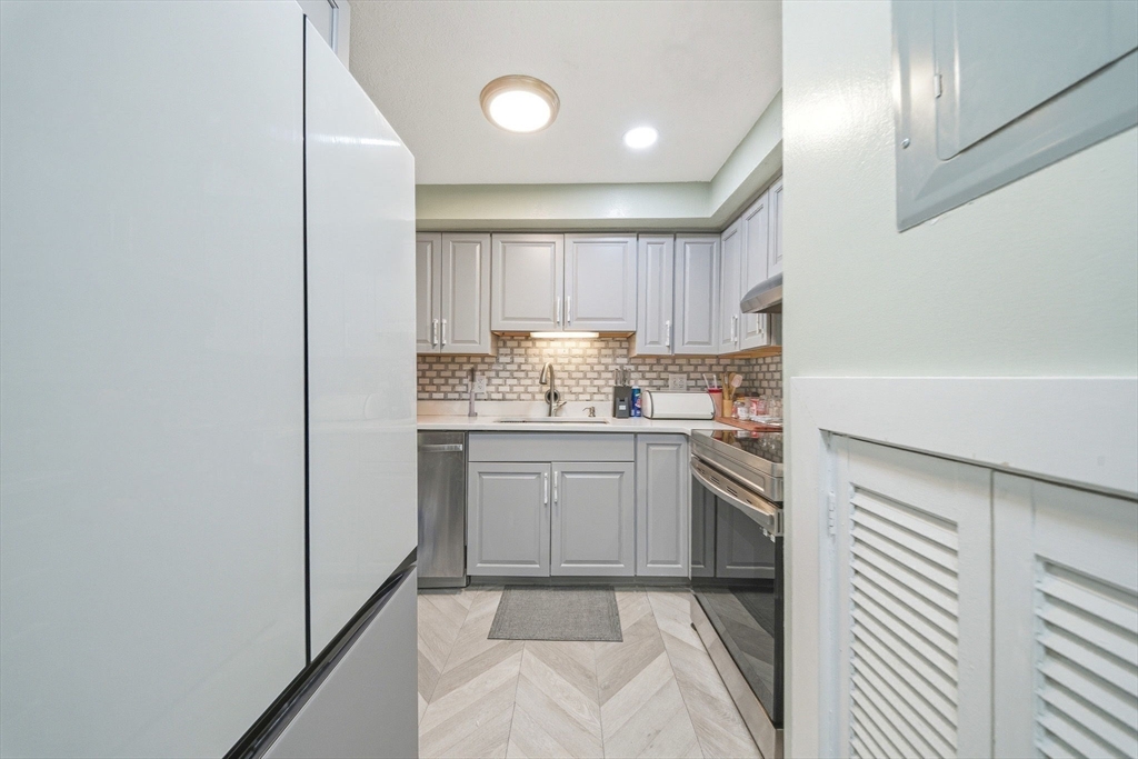Welcome to this beautifully updated 2-bedroom, 1-bath condo—one of the most move-in-ready and most updated units currently available in the Chateaux Westgate association. The bright, open layout is ideal for both everyday living and entertaining, with a kitchen featuring stainless steel appliances that flows seamlessly into the spacious living and dining areas. Sliding doors lead to your private porch, the perfect spot to relax and take in the scenic view. Both bedrooms offer generous space, including a large primary with great closet storage. The bathroom has been stylishly renovated with a tiled shower and glass doors for a clean, modern finish. Enjoy a convenient location close to major highways, commuter rail, and D.W. Fields Park for walking, running, biking, and golf. Community amenities include a swimming pool, ample guest parking, and professionally managed off-site maintenance. HEAT AND HOT WATER ARE INCLUDED IN CONDO FEE.