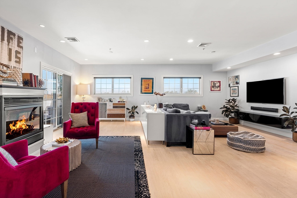 Opportunity knocks! Don’t miss this impressive open concept corner townhouse filled with natural light and located in the Popes Hill/Neponset area. Enjoy the two-sided fireplace between the living and dining area with access to a large fenced turf yard and patio. Stainless kitchen appliances, granite countertops, breakfast bar and half bath complete the first floor.The second floor features a primary bedroom that’s ensuite with a steam shower and walk-in closet, second bedroom, full bath with Whirlpool soaking tub, and laundry. Also included is a deeded space in the heated garage, elevator, and guest parking. This is a very active community boasting many trendy eateries, quick access to I-93 north/south, public transportation, shopping, 60 acre waterfront park and more!.