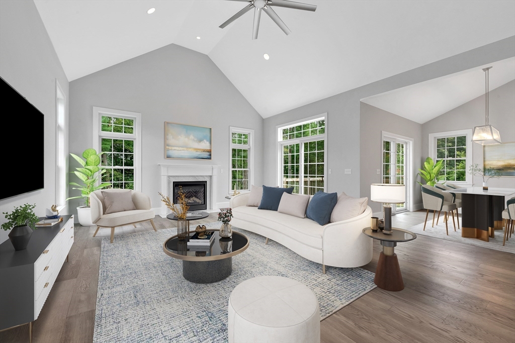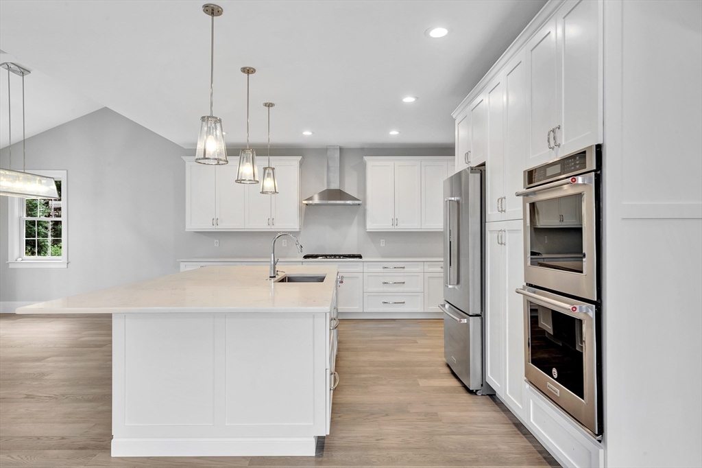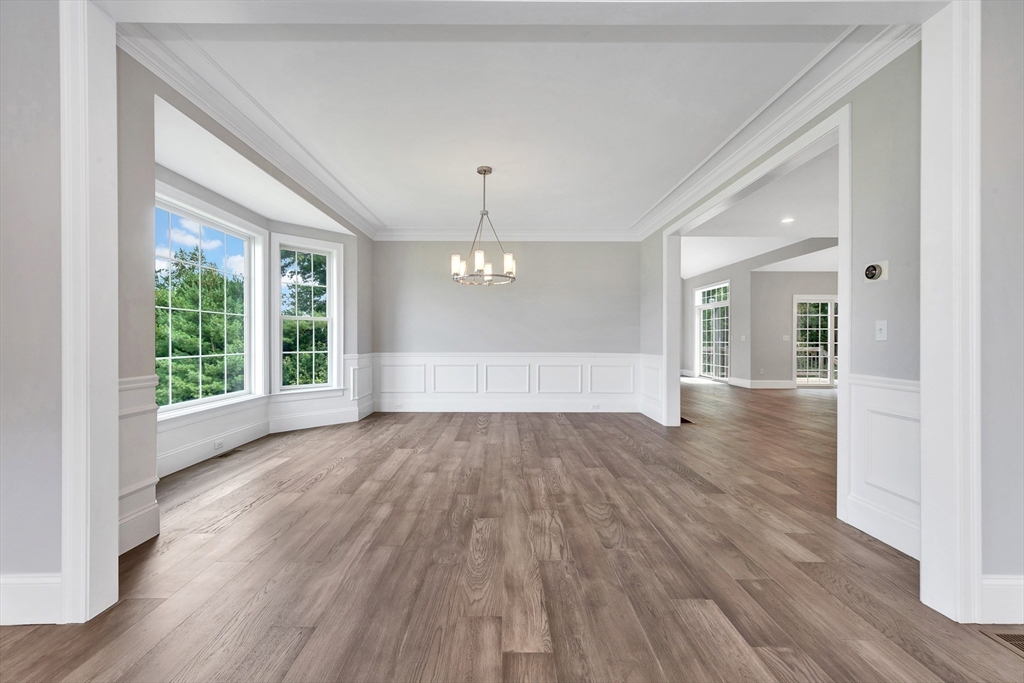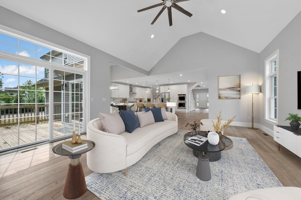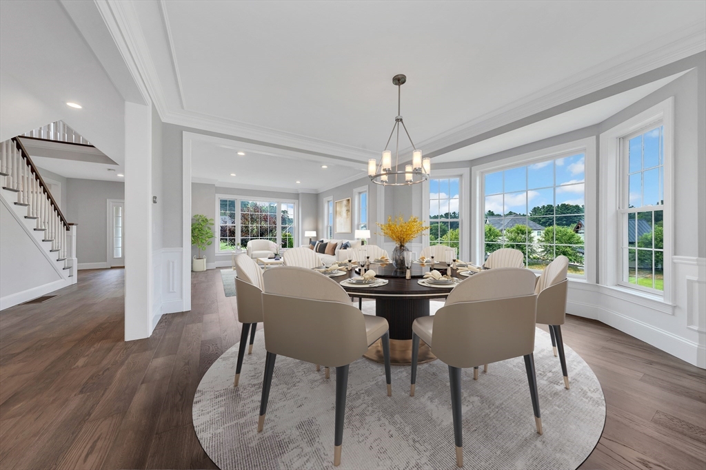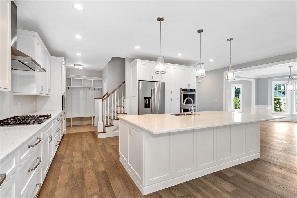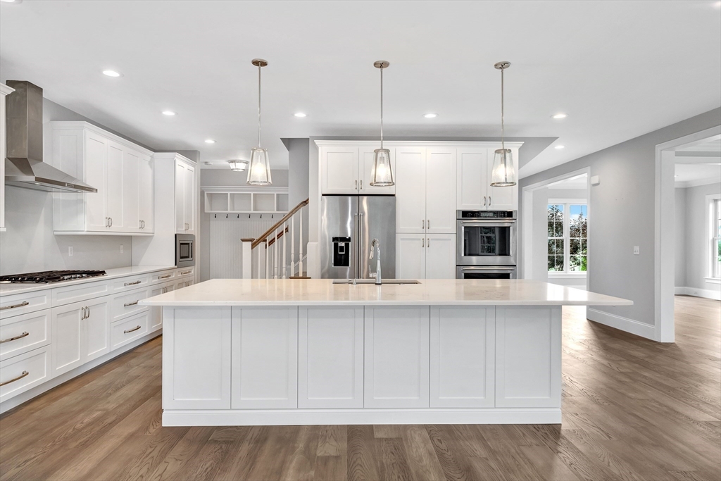 Welcome home to this stylish, young custom home located in a premier neighborhood & sited on a majestic 2.5-acre lot w/amazing views & direct access to conservation land & a canoe launch! An expansive porch ushers you to an airy foyer w/split staircase & private office. Both living & dining rooms are well appointed w/moldings & many windows providing great light & scenic views. Enjoy the modern, open concept kitchen w/white cabinets, endless counter space, crisp lines & sleek fixtures. The focal point is a massive center island w/Quartz counters & ample space for cooking & gathering. Plus, the dining area & family room w/cathedral ceiling & fireplace - each w/access to the deck from sliders. Mudroom w/cubbies & closets leads to side entry & 3-car gar. 2nd floor features an impressive primary suite w/high ceilings, windows & spa-like bath w/double vanities & make up table plus huge closet. Three add'l bedrooms, one w/2nd full bath. Bonus area, 3rd full bath & laundry. Stunning!