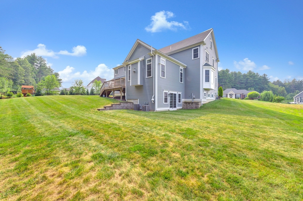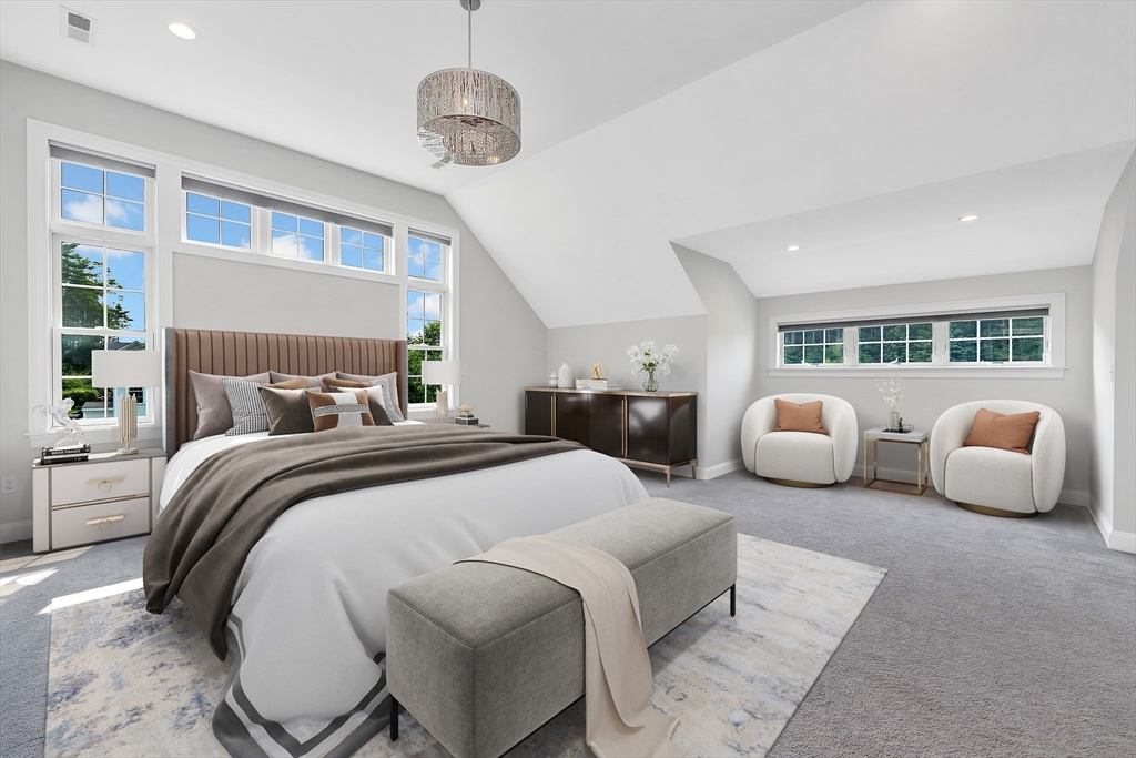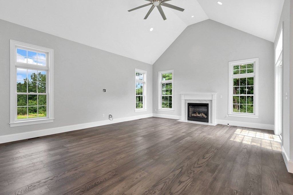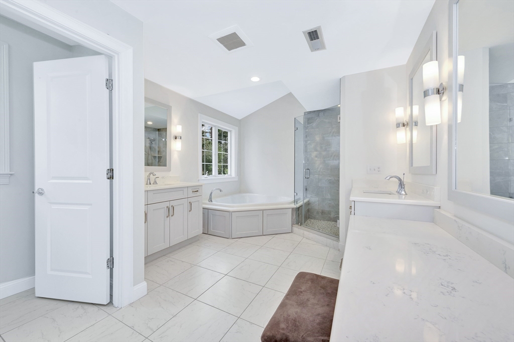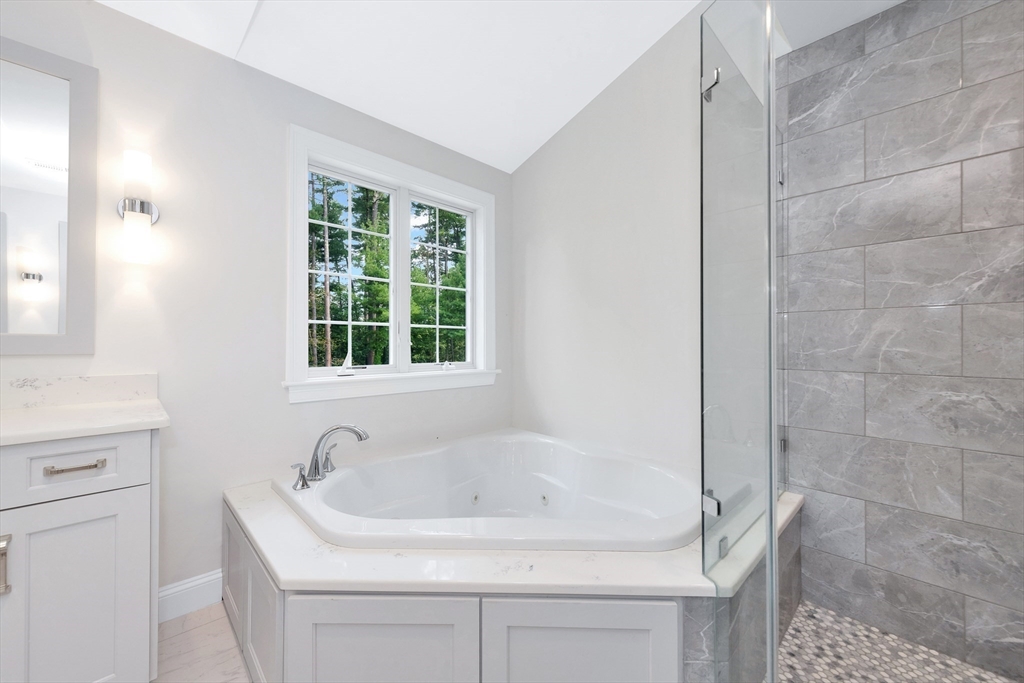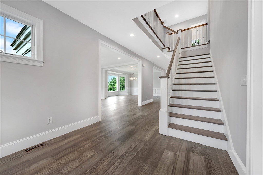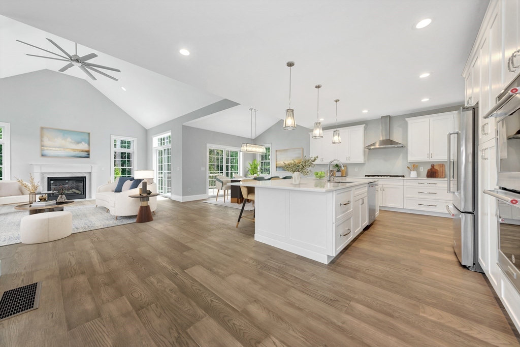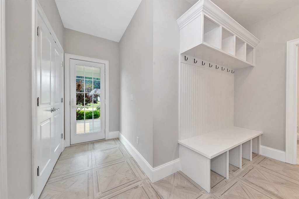 Welcome home to this stylish, young custom home located in a premier neighborhood & sited on a majestic 2.5-acre lot w/amazing views & direct access to conservation land & a canoe launch! An expansive porch ushers you to an airy foyer w/split staircase & private office. Both living & dining rooms are well appointed w/moldings & many windows providing great light & scenic views. Enjoy the modern, open concept kitchen w/white cabinets, endless counter space, crisp lines & sleek fixtures. The focal point is a massive center island w/Quartz counters & ample space for cooking & gathering. Plus, the dining area & family room w/cathedral ceiling & fireplace - each w/access to the deck from sliders. Mudroom w/cubbies & closets leads to side entry & 3-car gar. 2nd floor features an impressive primary suite w/high ceilings, windows & spa-like bath w/double vanities & make up table plus huge closet. Three add'l bedrooms, one w/2nd full bath. Bonus area, 3rd full bath & laundry. Stunning!