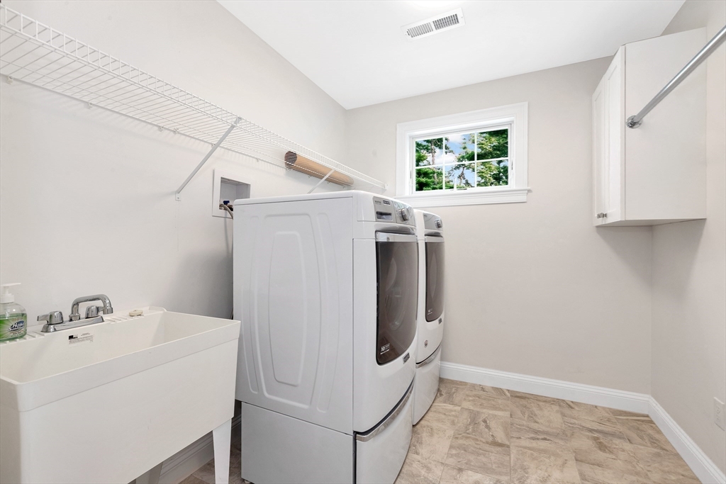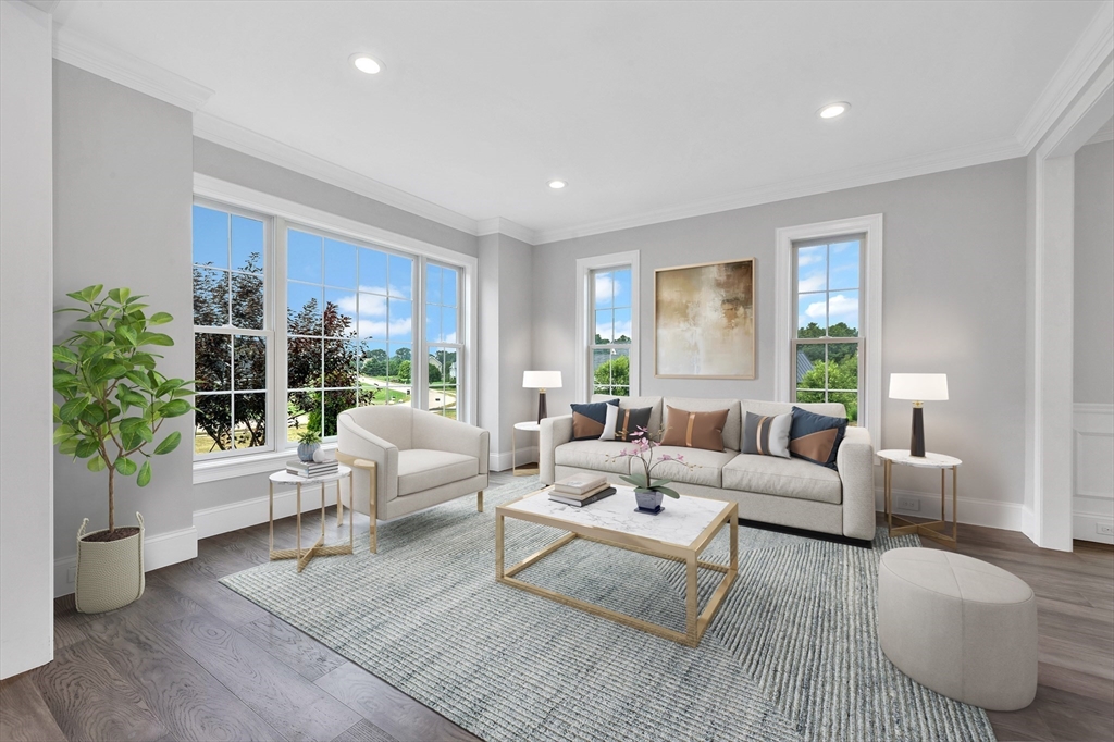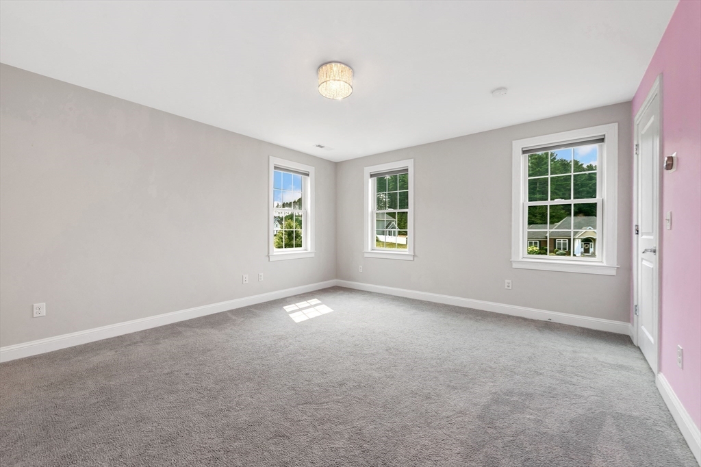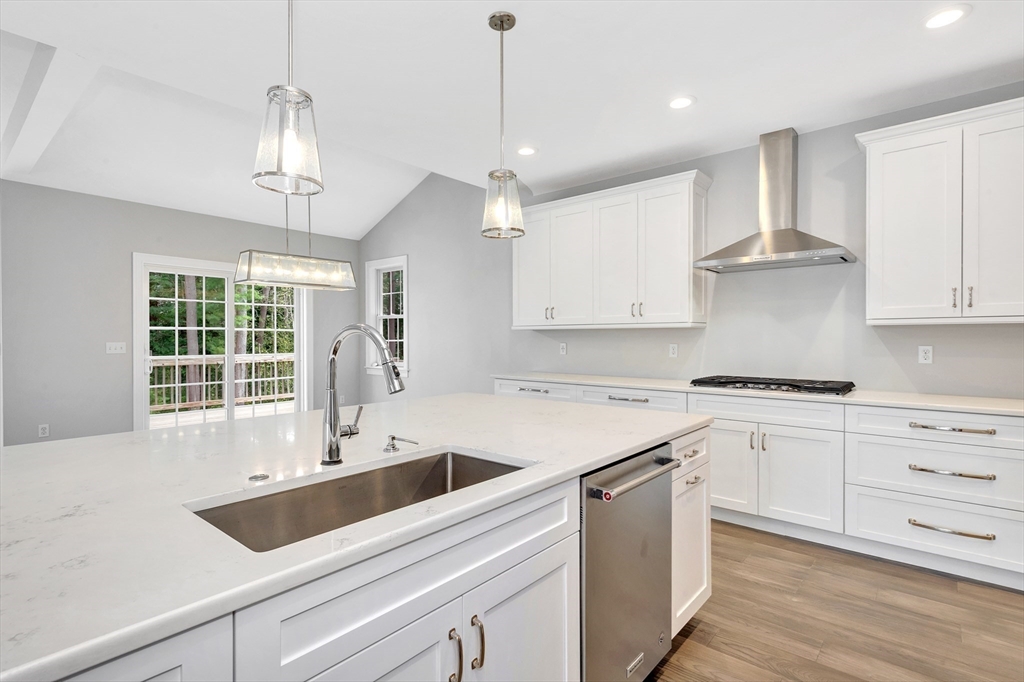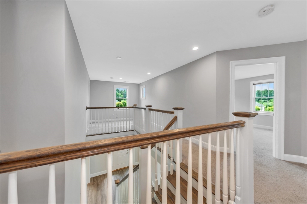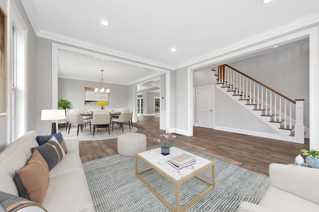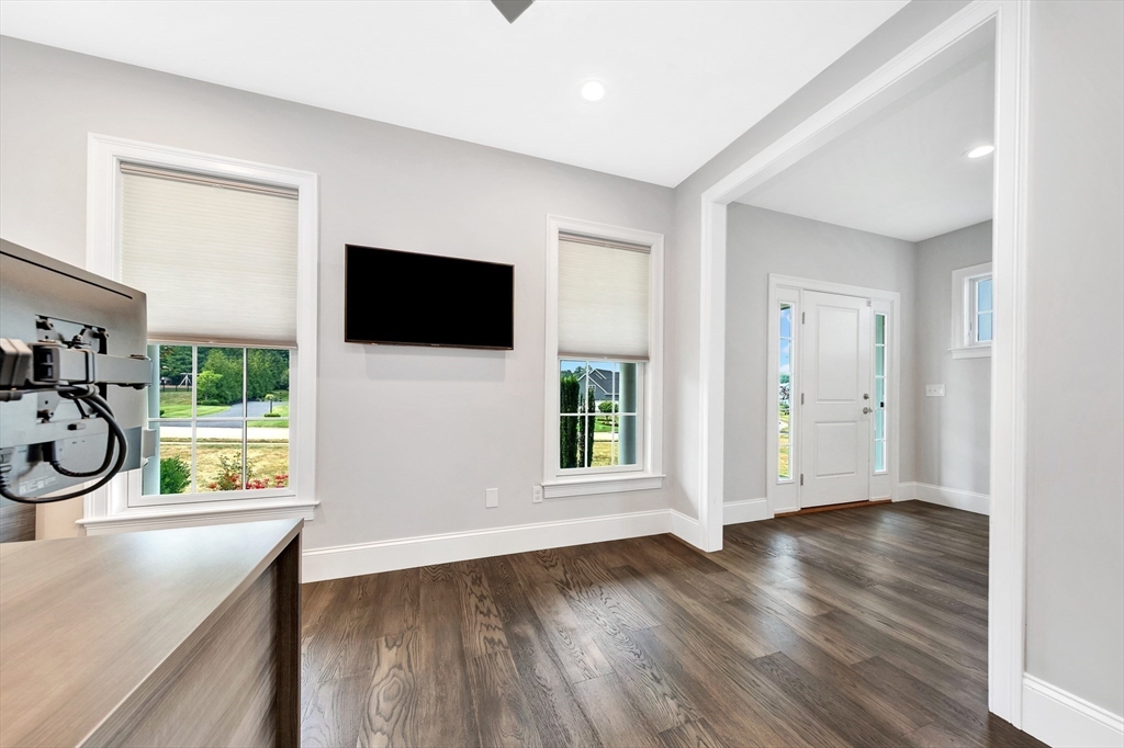Welcome home to this stylish, young custom home located in a premier neighborhood & sited on a majestic 2.5-acre lot w/amazing views & direct access to conservation land & a canoe launch! An expansive porch ushers you to an airy foyer w/split staircase & private office. Both living & dining rooms are well appointed w/moldings & many windows providing great light & scenic views. Enjoy the modern, open concept kitchen w/white cabinets, endless counter space, crisp lines & sleek fixtures. The focal point is a massive center island w/Quartz counters & ample space for cooking & gathering. Plus, the dining area & family room w/cathedral ceiling & fireplace - each w/access to the deck from sliders. Mudroom w/cubbies & closets leads to side entry & 3-car gar. 2nd floor features an impressive primary suite w/high ceilings, windows & spa-like bath w/double vanities & make up table plus huge closet. Three add'l bedrooms, one w/2nd full bath. Bonus area, 3rd full bath & laundry. Stunning!