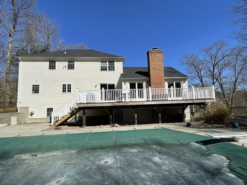 This charming Colonial, set on nearly 3 acres, offers 3 spacious bedrooms and 2.5 bathrooms, combining classic style with modern updates. The roomy, updated kitchen features stainless steel appliances, granite countertops, and plenty of storage. Enjoy the warmth of hardwood floors throughout most of the first floor, and a 500 sq. ft. cathedral family room addition that provides an expansive, light-filled space, complete with a cozy wood burning fireplace for added comfort. The home has been thoughtfully maintained, with newer carpets and a roof replaced just 3 years ago. Step outside to a large, newer deck with vinyl rails and composite decking, perfect for entertaining or relaxing. Sliders from the family room lead seamlessly to the deck and the beautiful outdoor space. For summer fun, take a dip in the saltwater pool, creating your own private oasis. This home is a perfect blend of comfort, style, and tranquility, offering a peaceful retreat while still being close to amenities.