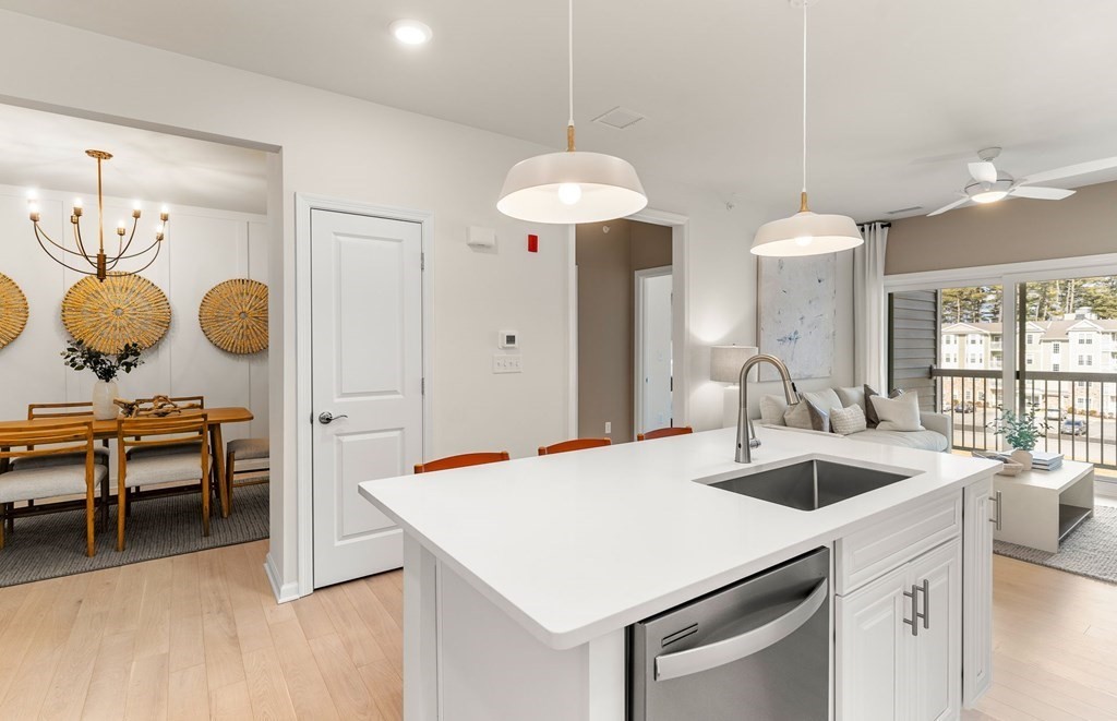 Sought-after location with spectacular treetop views! Martins Landing, North Reading’s premier 55+ community, features The Hayden layout—designed for both comfort and entertaining. Enjoy an elegant dining room perfect for hosting friends, a spacious kitchen with abundant cabinet storage, a large quartz island with seating, and an open gathering room with a slider leading to your private balcony overlooking serene landscapes. This home offers 9-ft ceilings, an owner’s suite with walk-in closet and private bath, plus a second bedroom with a full bath. Additional features include a full-sized laundry room, extra storage space, and tandem deeded garage parking. Located in a modern, secure building with two elevators, residents enjoy an active lifestyle—grill at the clubhouse, relax with neighbors, or work out in the fitness room. Conveniently situated just 1.5 miles from I-93 and Route 28, with shopping, dining, and entertainment all close by, this is low-maintenance living at its best!