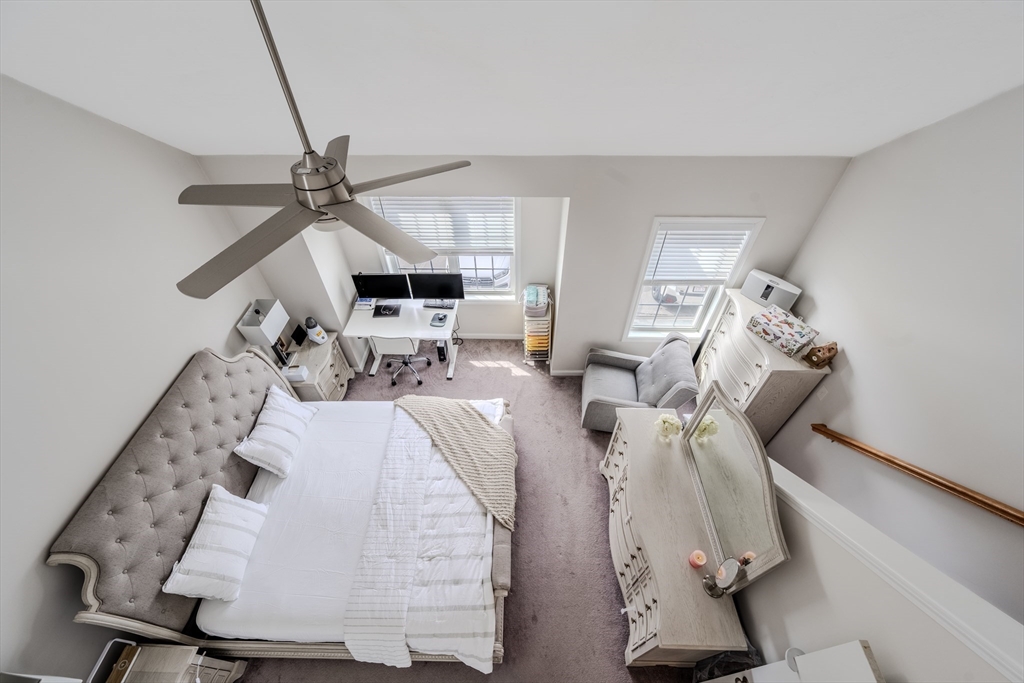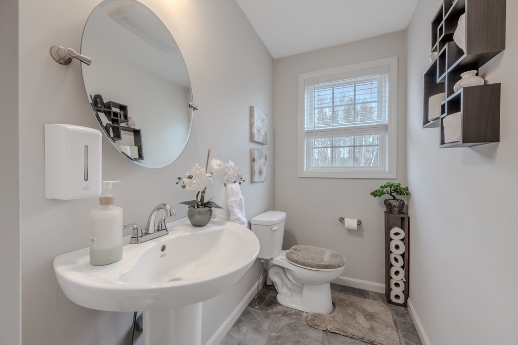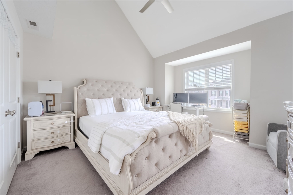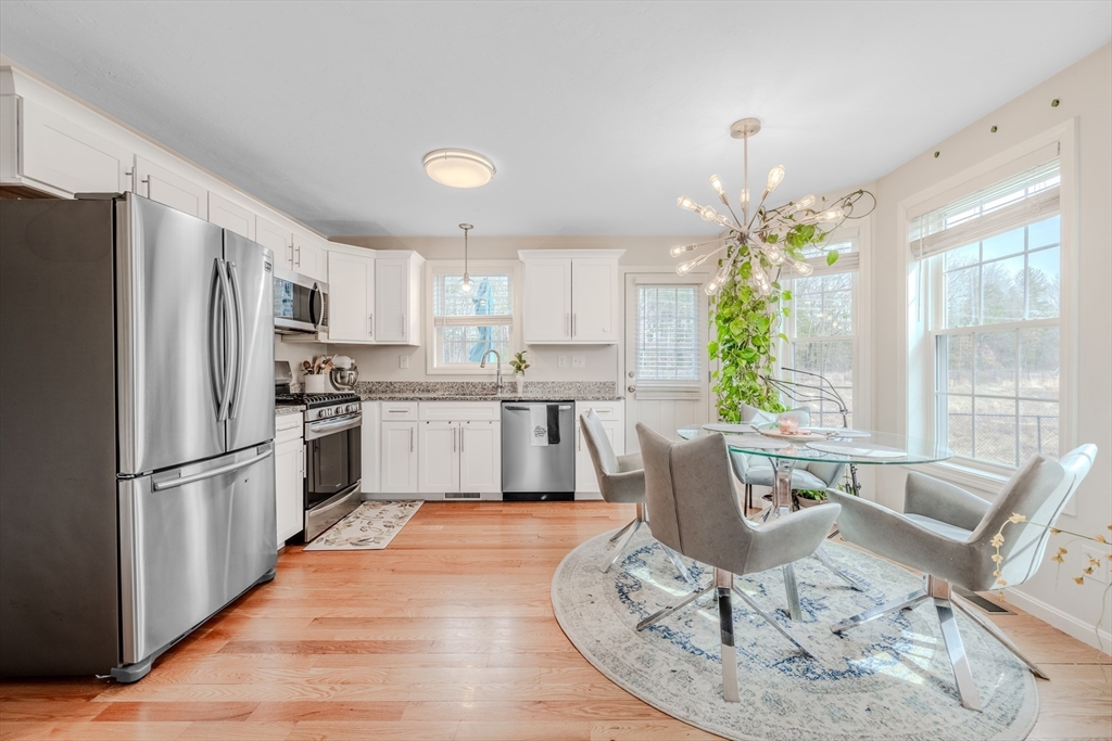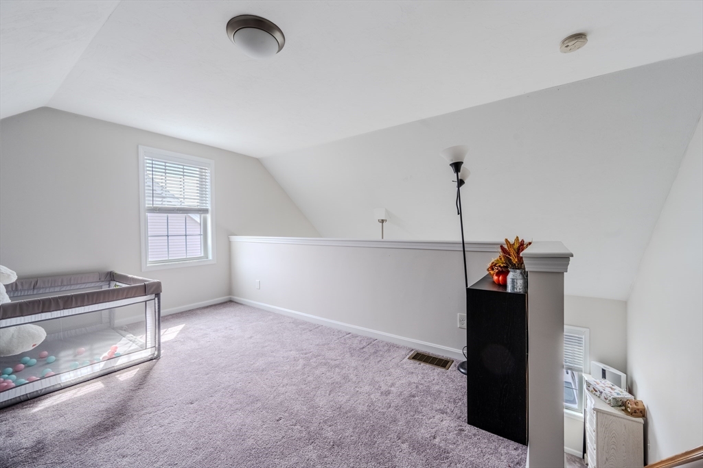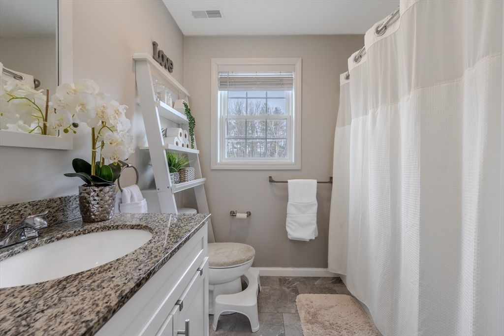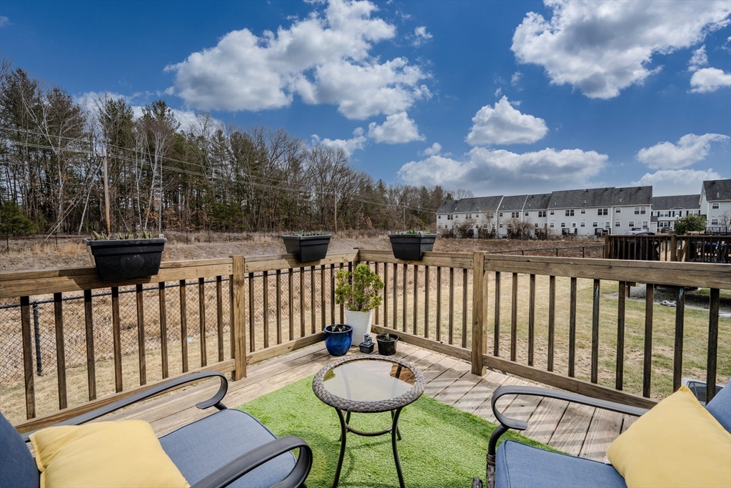 Welcome to this well-maintained 2-bedroom, 1.5-bath condo located just minutes from major highways, shopping, and restaurants. The spacious primary bedroom features vaulted ceilings and a loft, perfect for a home office or cozy reading nook. The open first-floor layout includes an eat-in kitchen and a bright, inviting living space that’s ideal for entertaining. Downstairs, the recently finished basement offers additional living space with stylish touches—perfect for a playroom, gym, or family room. Step outside to your private back deck and enjoy peaceful views overlooking the woods down to the Merrimack river, with no units behind you for added privacy.