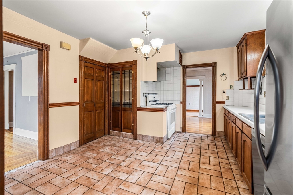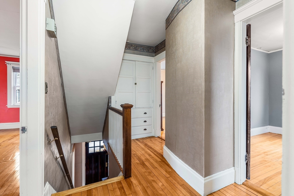 Seize the opportunity to transform this classic 1915 center-entrance Colonial into your dream home and build instant equity in one of Swampscott’s desirable tree-lined neighborhoods. Brimming with period charm, this home features hardwood floors and original architectural details. The first floor offers a tiled eat-in kitchen with a half bath, a formal dining room with a built-in china cabinet, a front to back living room with a fireplace and an adjacent bonus room- perfect for a home office or playroom. Upstairs, you’ll find three bedrooms and a full bath, including a primary bedroom with a walk-in closet and access to a walk-up attic, offering expansion potential. Step outside to a large wooden deck overlooking a manageable backyard with a storage shed. Tandem parking for 3+ cars. While updates are needed, this home presents an incredible opportunity to create something special in a prime location. Don’t miss out—make it your own! First offer review Monday 3/24.