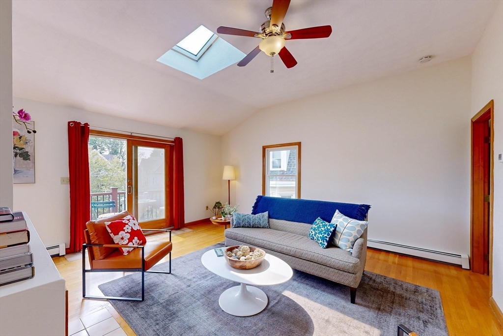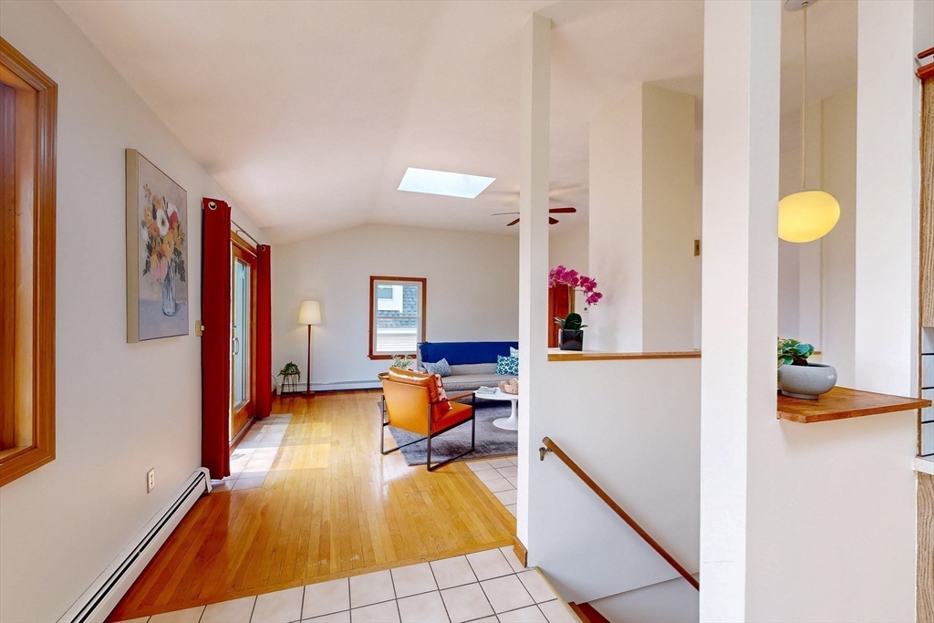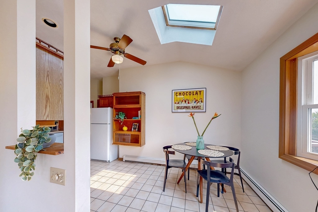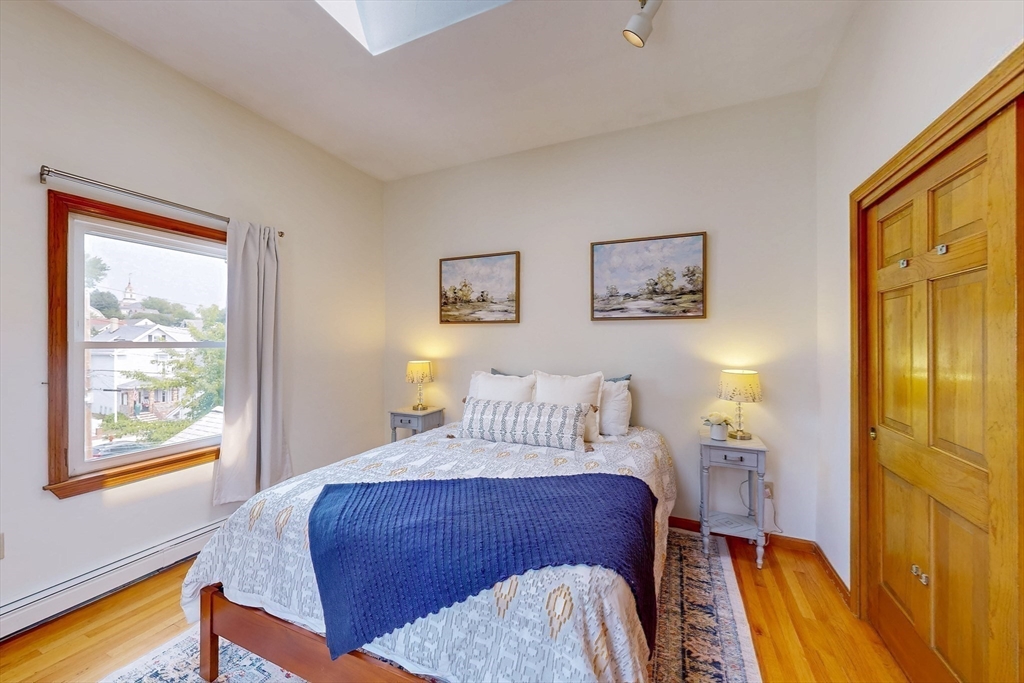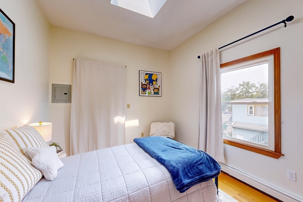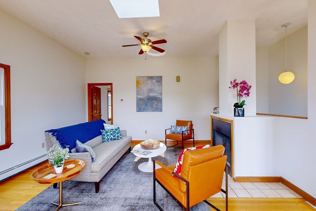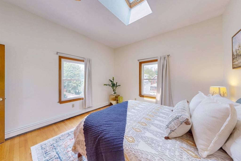 This top-floor unit is a well-designed in a horseshoe-shape w/ an open living/dining/kitchen area, thoughtfully arranged around a central staircase & fireplace. Each wing of the layout is anchored by a bedroom, offering both privacy & a sense of connection. The condo gets lots of light w/ sliding glass doors to the prvt balcony, a bay window & skylights in every room. There is extra storage & common laundry in the basement. There are also 2 deeded unobstructed pkg spaces. Set in the heart of Spring Hill & close to Union Sq, this address places you moments from a variety of restaurants, bars, coffee shops, & specialty grocers. With public transit (Green Line .3 miles) & quick access to major routes—93,2,16,28,38,95—commutes to Boston/Logan are effortless. Whether you’re looking to rest, entertain, or grow, this Summer Street condo is the perfect location for your next chapter.
