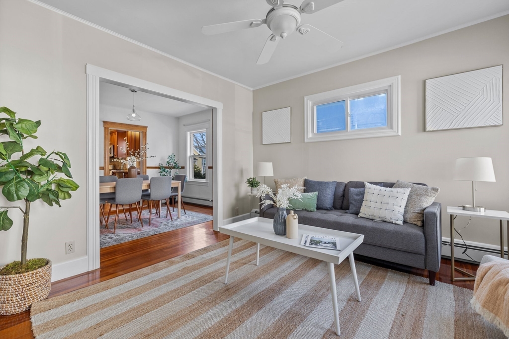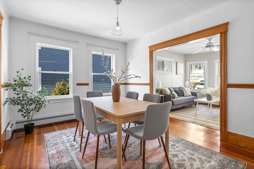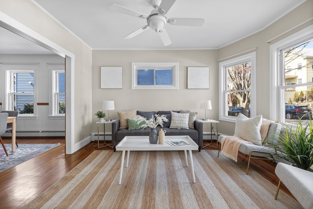 Welcome to 74 Putnam Street, a delightful gem nestled in the heart of Watertown. This meticulous residence offers a warm and inviting atmosphere, where charm and convenience blend effortlessly. Step inside, and you’re greeted by a cozy living room, bathed in natural light—an ideal space for relaxing after a long day. From there, the home flows seamlessly into the dining room, a perfect setting for intimate dinners or lively gatherings. The kitchen, equipped with modern appliances, a gas stove, and a quaint breakfast nook, invites you to savor morning coffee while gazing out into the shared backyard. A short walk down the hall leads to the bathroom and three bright, airy bedrooms, each offering comfort and tranquility.With a private washer and dryer in the basement, extra storage, and a shared garage, convenience is at your fingertips. Just moments from Arsenal Yards, you’ll have shopping, dining, and entertainment within easy reach, plus seamless commuting options to Boston.