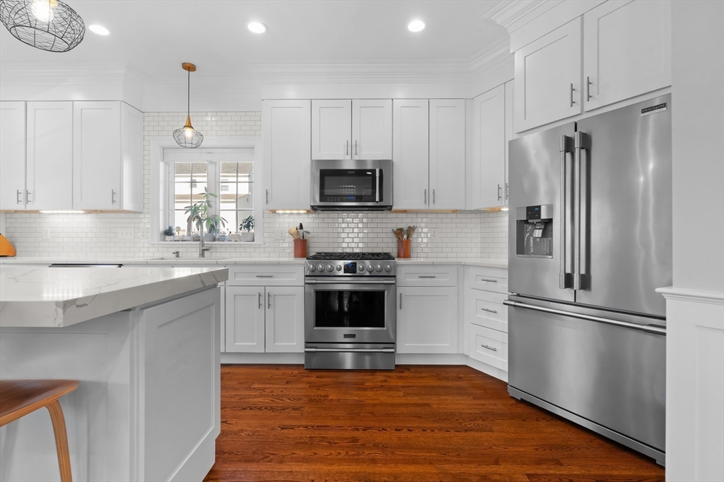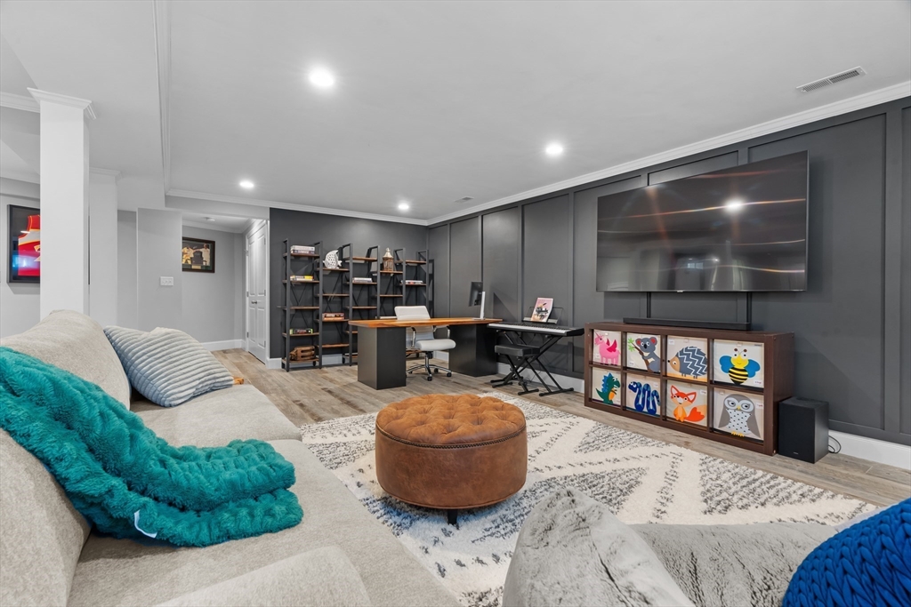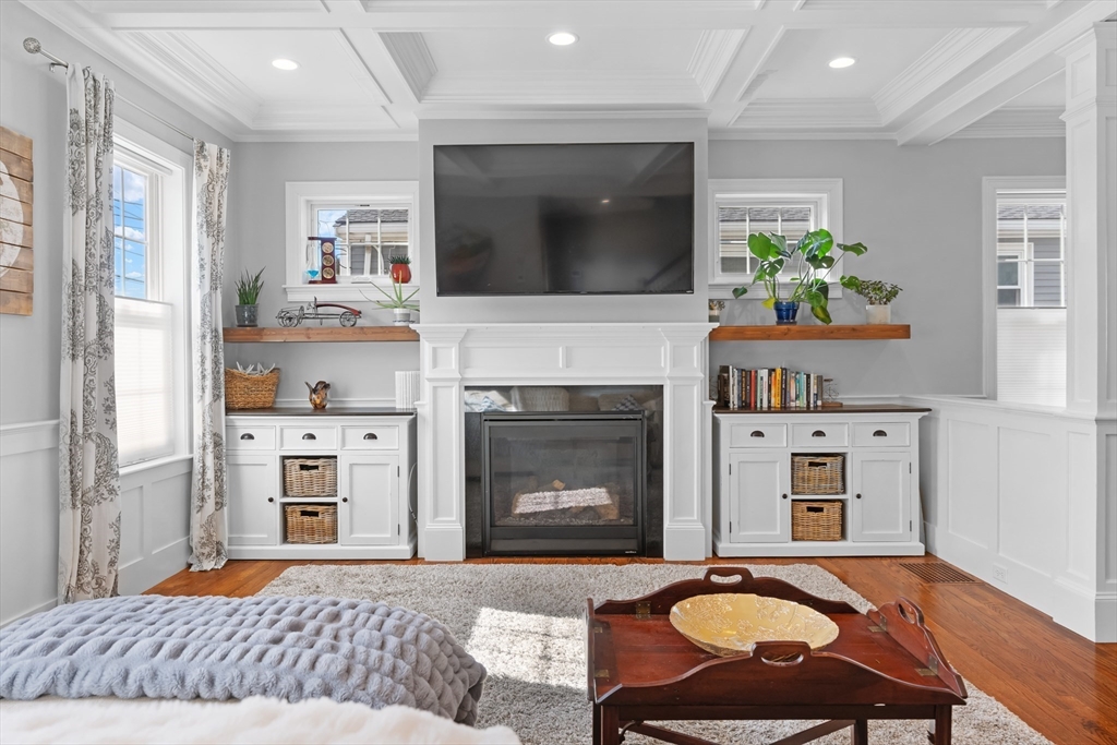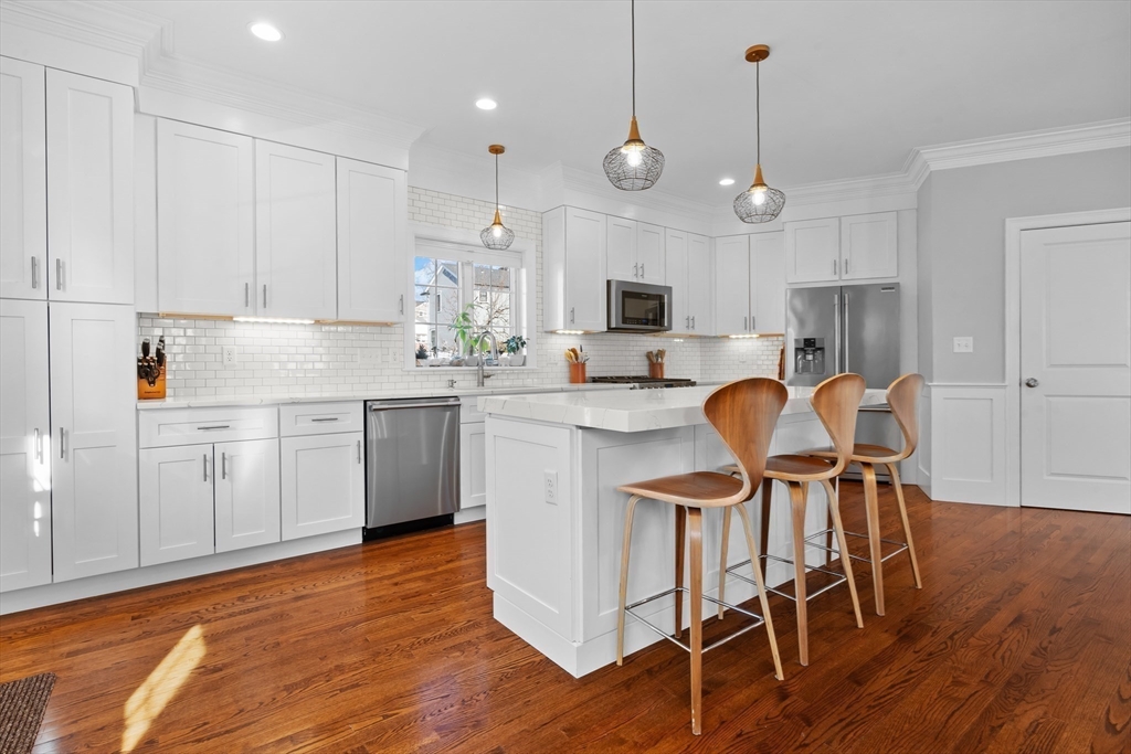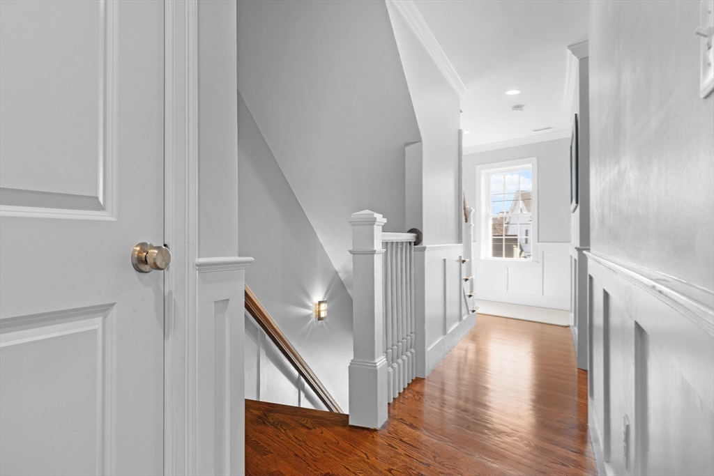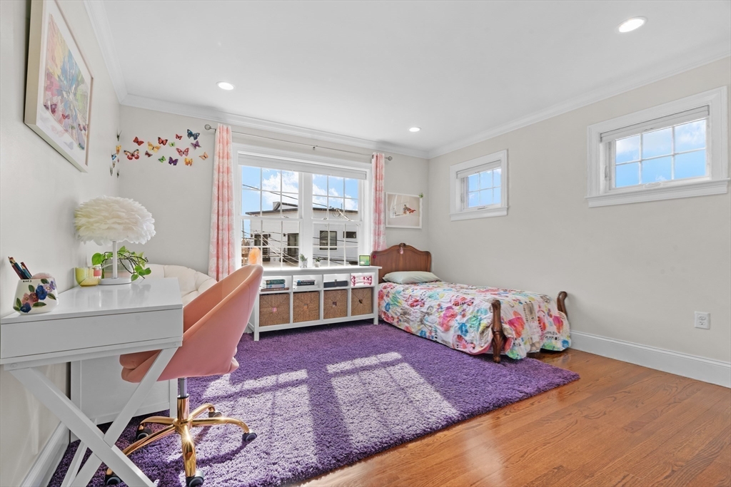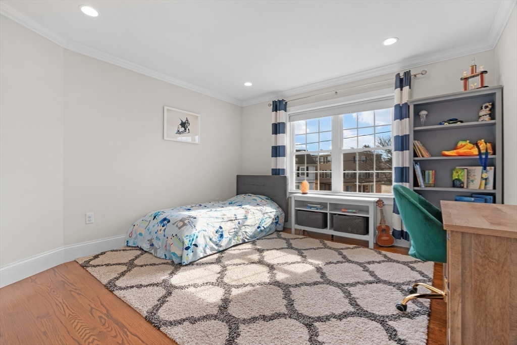 Step into this stunning four-bedroom, four-and-a-half-bath townhome, filled with natural light and designed for modern living. The first floor offers an inviting open-concept space, with a coffered ceiling, elegant wainscoting, and a cozy gas fireplace. The dining area is perfect for hosting, comfortably fitting an eight-person table. The gourmet kitchen is a dream, complete with a spacious center island, high-end finishes, and everything a passionate home chef could want. Upstairs, the serene primary suite boasts a generous walk-in closet and a spa-like ensuite bath with a walk-in shower and double vanity. Two additional bedrooms and a full bath complete the second floor. On the top level, a private guest suite with its own ensuite bath is ideal for visitors. The lower level offers a versatile family room with extra space for a home gym or creative studio. Outside, the expansive fenced-in backyard is a rare find—perfect for gardening, entertaining, or simply unwinding on the patio.