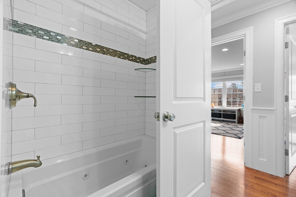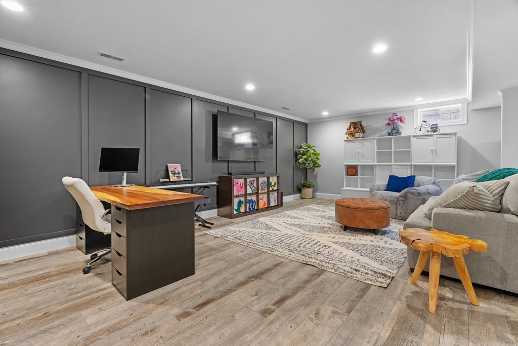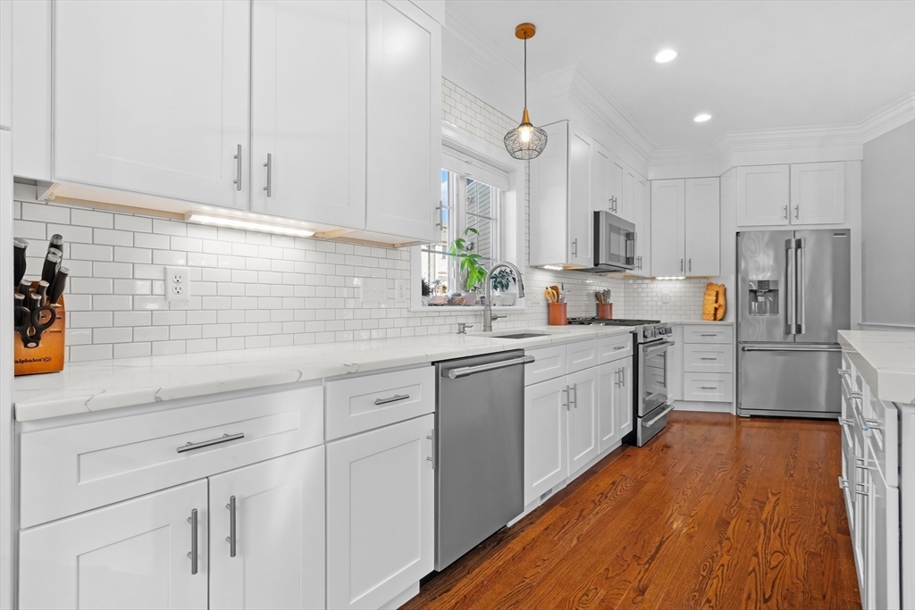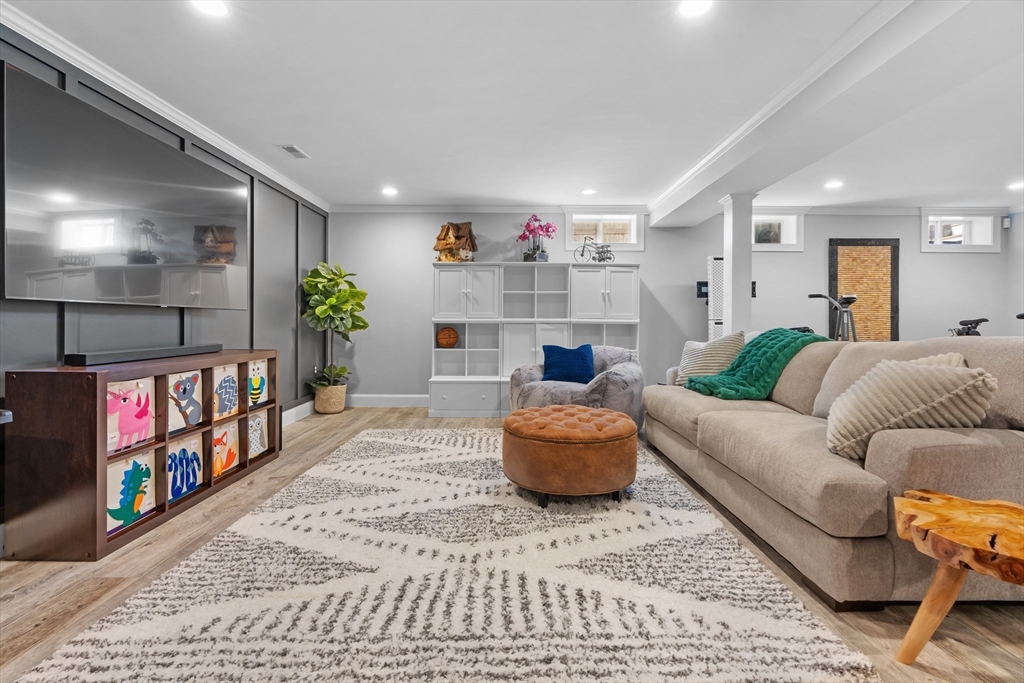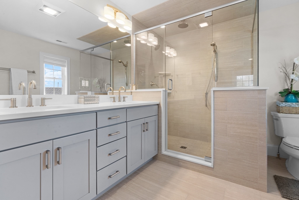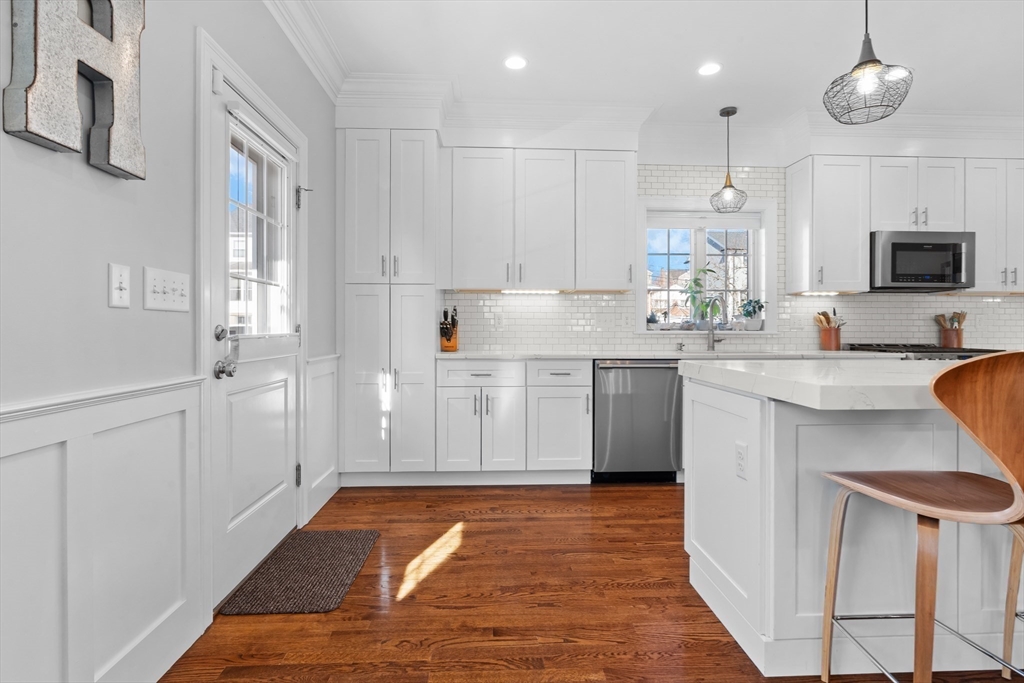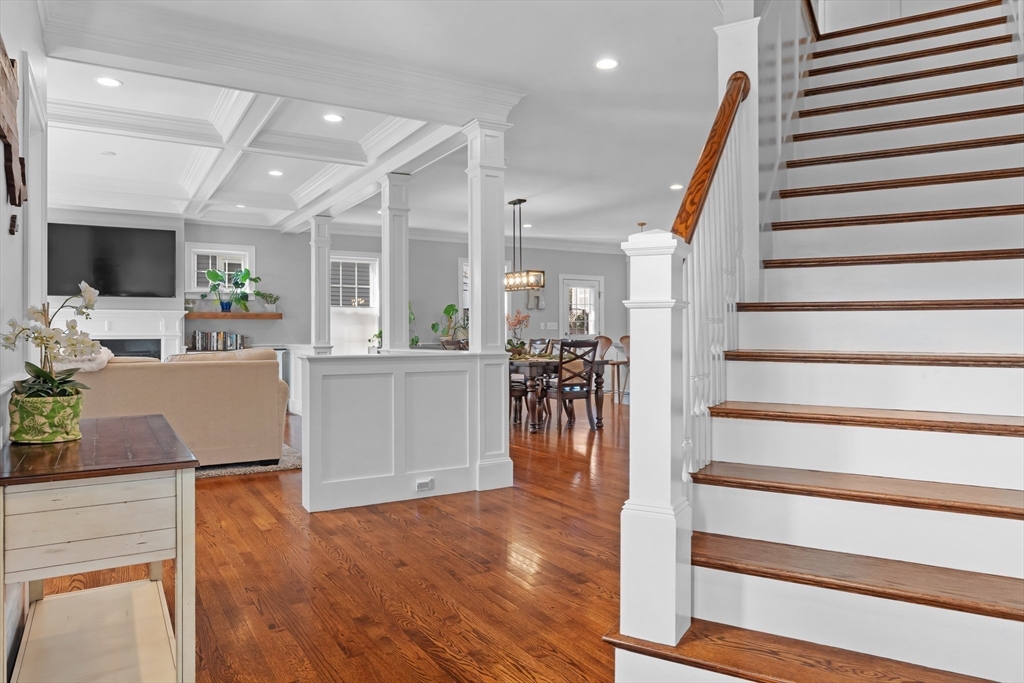 Step into this stunning four-bedroom, four-and-a-half-bath townhome, filled with natural light and designed for modern living. The first floor offers an inviting open-concept space, with a coffered ceiling, elegant wainscoting, and a cozy gas fireplace. The dining area is perfect for hosting, comfortably fitting an eight-person table. The gourmet kitchen is a dream, complete with a spacious center island, high-end finishes, and everything a passionate home chef could want. Upstairs, the serene primary suite boasts a generous walk-in closet and a spa-like ensuite bath with a walk-in shower and double vanity. Two additional bedrooms and a full bath complete the second floor. On the top level, a private guest suite with its own ensuite bath is ideal for visitors. The lower level offers a versatile family room with extra space for a home gym or creative studio. Outside, the expansive fenced-in backyard is a rare find—perfect for gardening, entertaining, or simply unwinding on the patio.