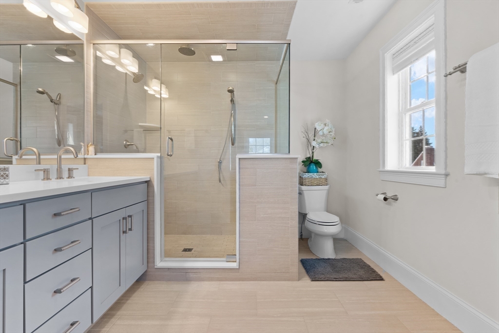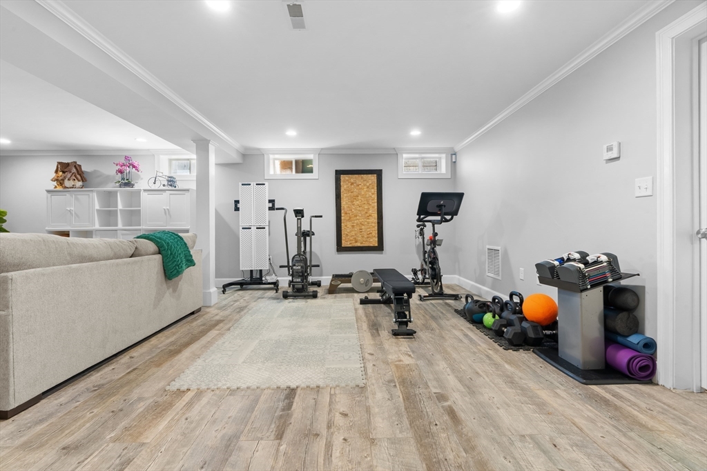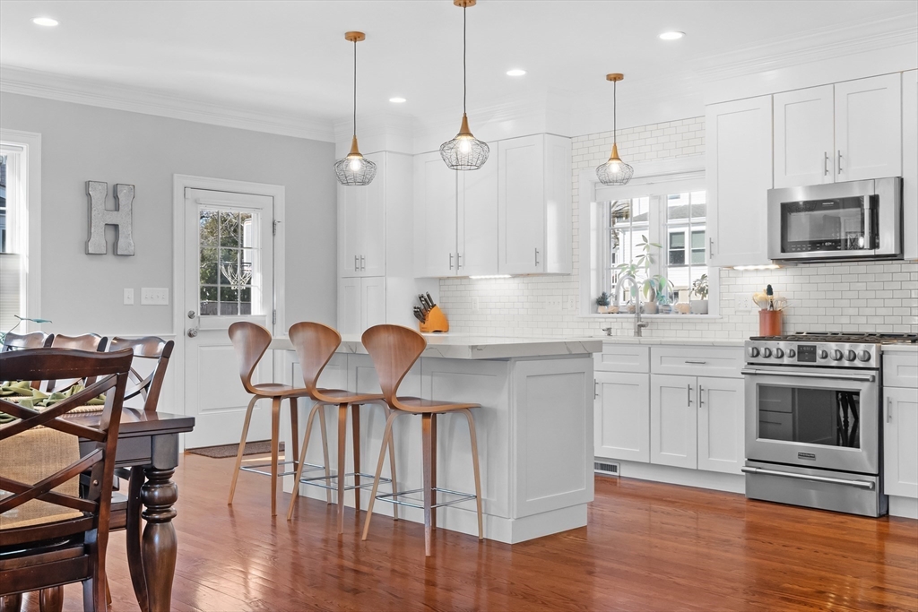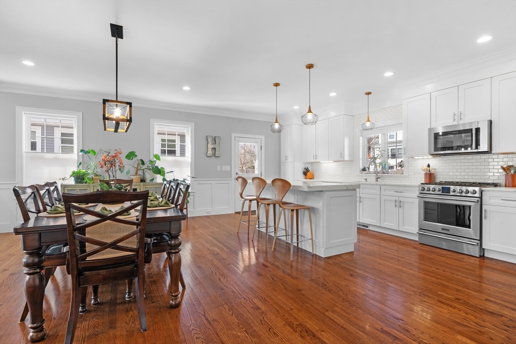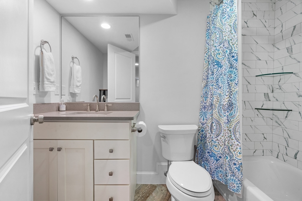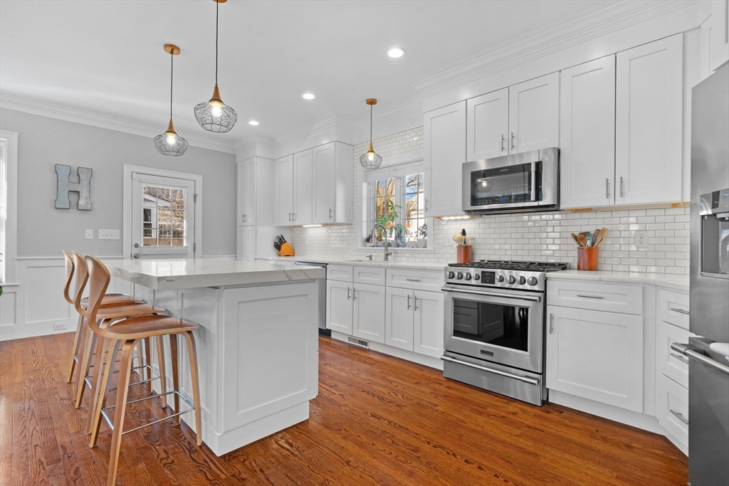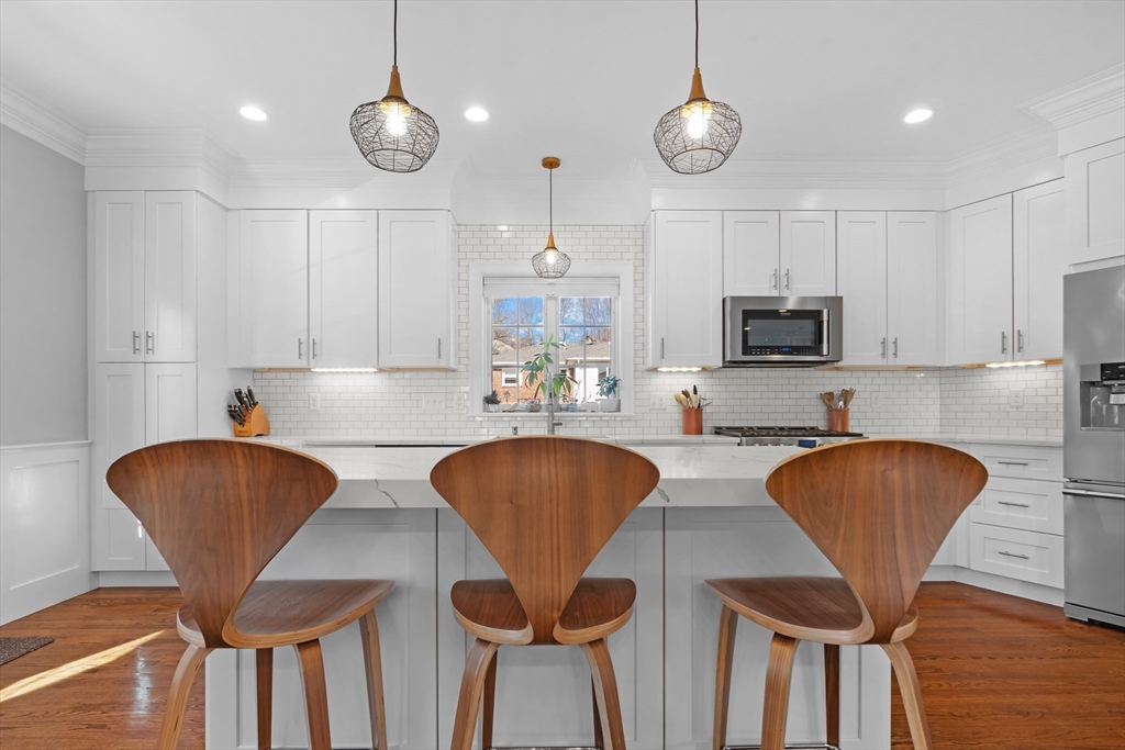 Step into this stunning four-bedroom, four-and-a-half-bath townhome, filled with natural light and designed for modern living. The first floor offers an inviting open-concept space, with a coffered ceiling, elegant wainscoting, and a cozy gas fireplace. The dining area is perfect for hosting, comfortably fitting an eight-person table. The gourmet kitchen is a dream, complete with a spacious center island, high-end finishes, and everything a passionate home chef could want. Upstairs, the serene primary suite boasts a generous walk-in closet and a spa-like ensuite bath with a walk-in shower and double vanity. Two additional bedrooms and a full bath complete the second floor. On the top level, a private guest suite with its own ensuite bath is ideal for visitors. The lower level offers a versatile family room with extra space for a home gym or creative studio. Outside, the expansive fenced-in backyard is a rare find—perfect for gardening, entertaining, or simply unwinding on the patio.