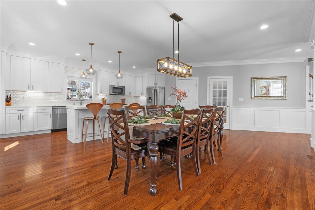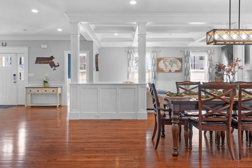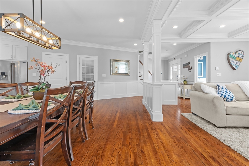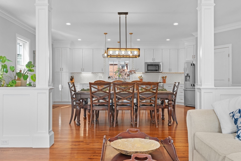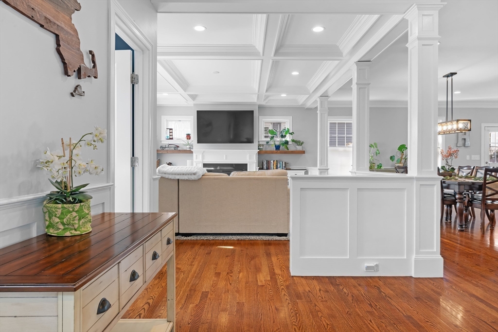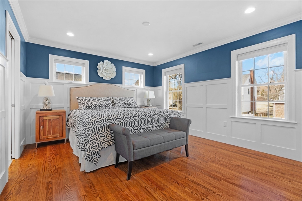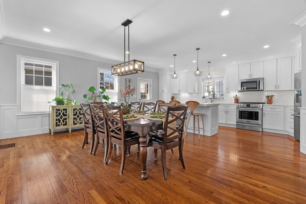 Step into this stunning four-bedroom, four-and-a-half-bath townhome, filled with natural light and designed for modern living. The first floor offers an inviting open-concept space, with a coffered ceiling, elegant wainscoting, and a cozy gas fireplace. The dining area is perfect for hosting, comfortably fitting an eight-person table. The gourmet kitchen is a dream, complete with a spacious center island, high-end finishes, and everything a passionate home chef could want. Upstairs, the serene primary suite boasts a generous walk-in closet and a spa-like ensuite bath with a walk-in shower and double vanity. Two additional bedrooms and a full bath complete the second floor. On the top level, a private guest suite with its own ensuite bath is ideal for visitors. The lower level offers a versatile family room with extra space for a home gym or creative studio. Outside, the expansive fenced-in backyard is a rare find—perfect for gardening, entertaining, or simply unwinding on the patio.