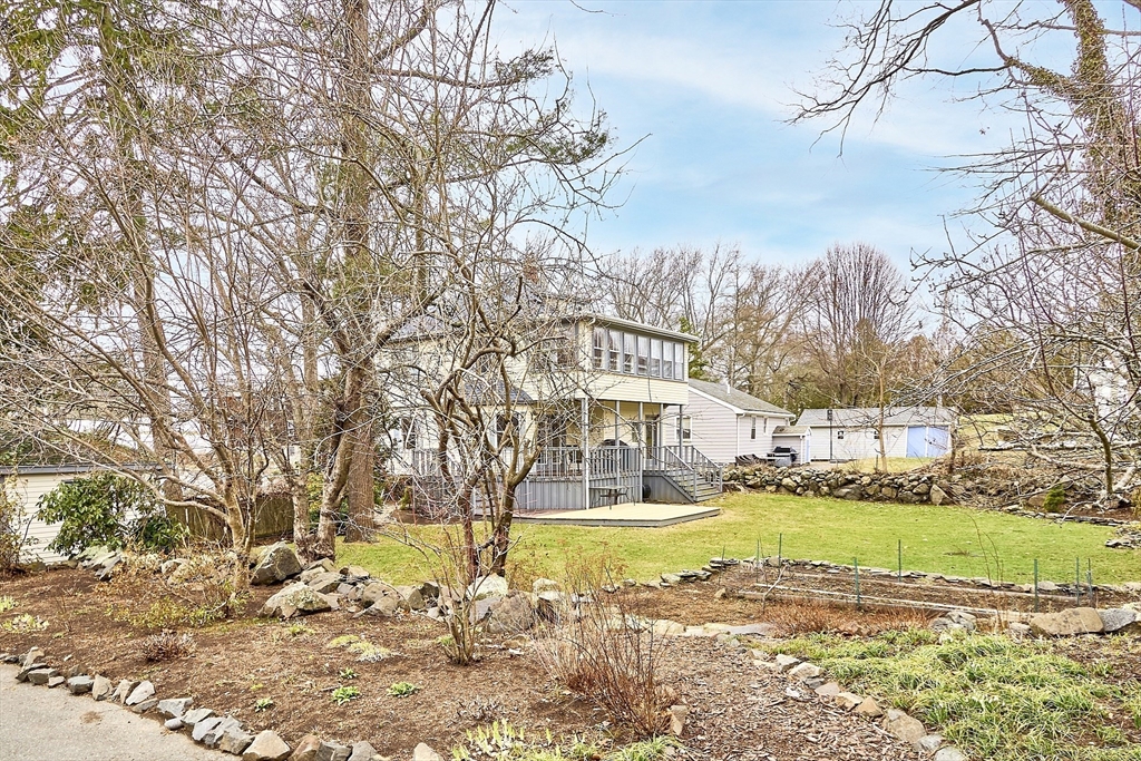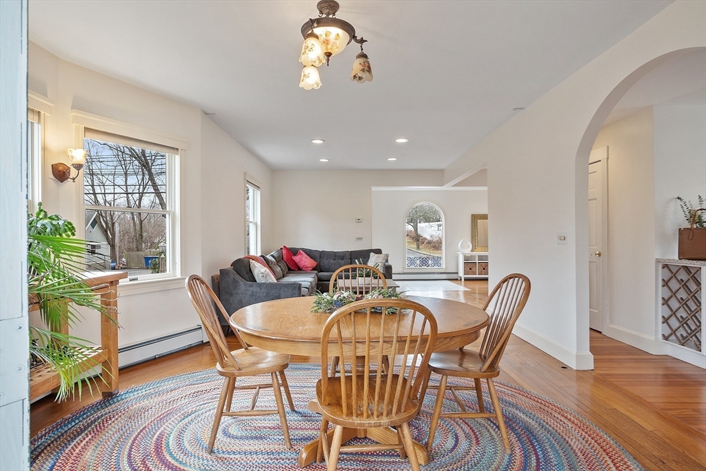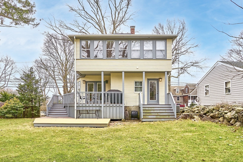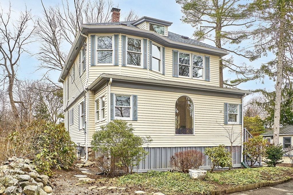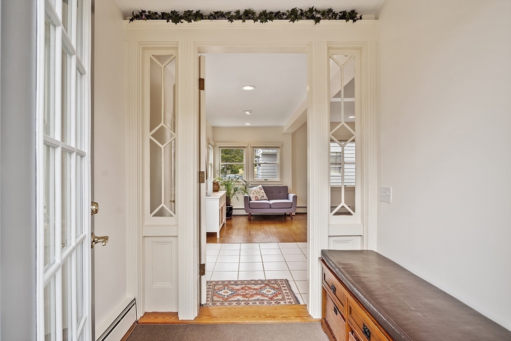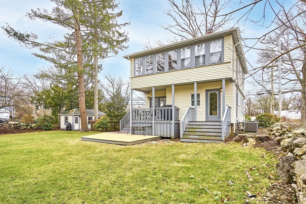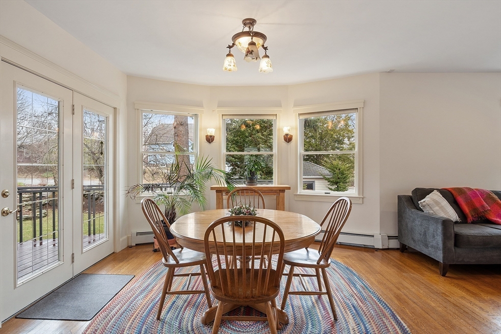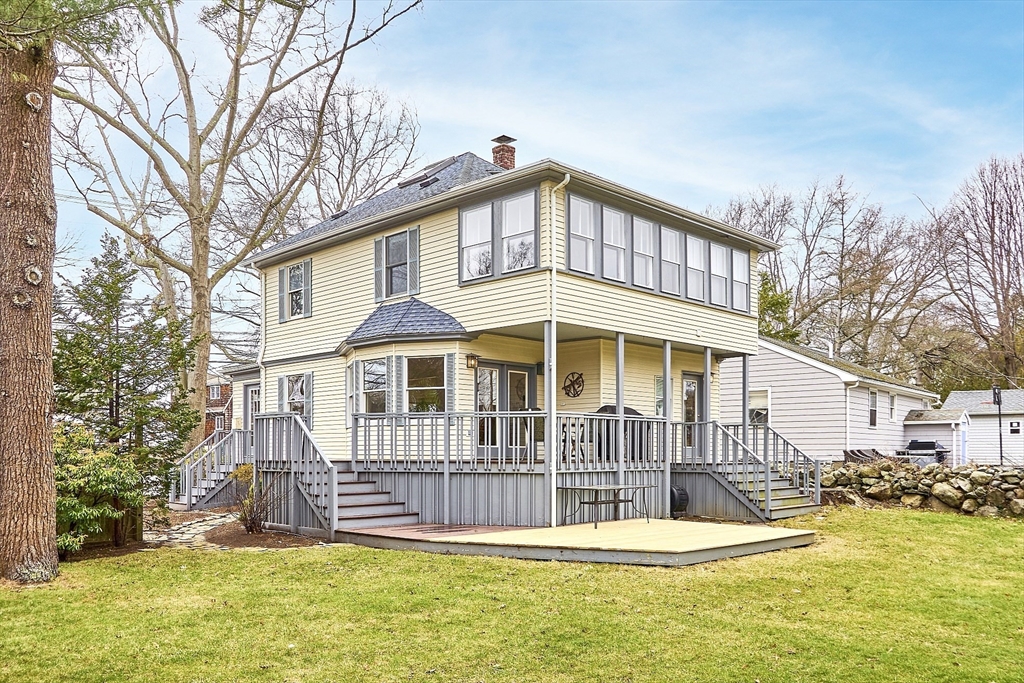 This move-in-ready hip-roof Colonial exudes classic charm while offering modern comforts! Nestled on a spacious corner lot, this early 1900s home is bathed in natural light thanks to its updated, oversized windows.High ceilings, gleaming hardwood floors,& an open-concept first floor enhance its warm and inviting feel.The kitchen is both stylish and functional, featuring brand-new appliances, ample cabinetry,& generous storage. Seamless access from the kitchen & dining room leads to a multi-level deck—perfect for outdoor entertaining—overlooking a beautifully landscaped, spacious yard.The primary suite offers a private, oversized bath, while the convenient 2nd floor laundry adds ease to daily living. A 3rd floor bonus space provides the perfect spot for a home office, playroom, or creative retreat. Located in a highly walkable neighborhood, this home is just moments from downtown, top-rated schools, & scenic walking & biking trails. Ample storage & a garage complete this must-see home!