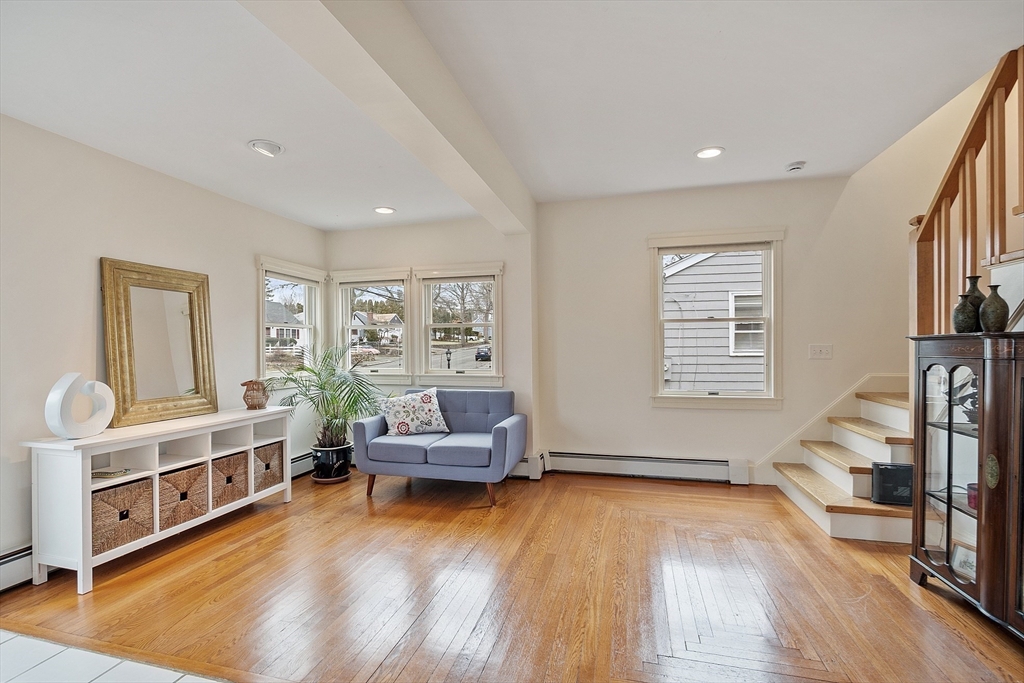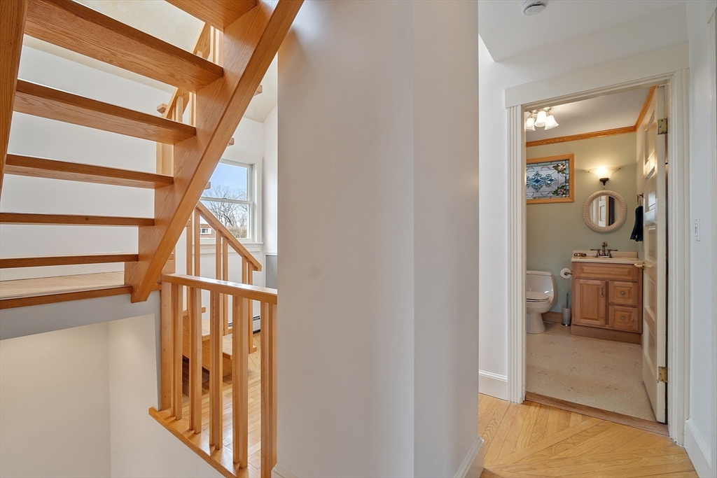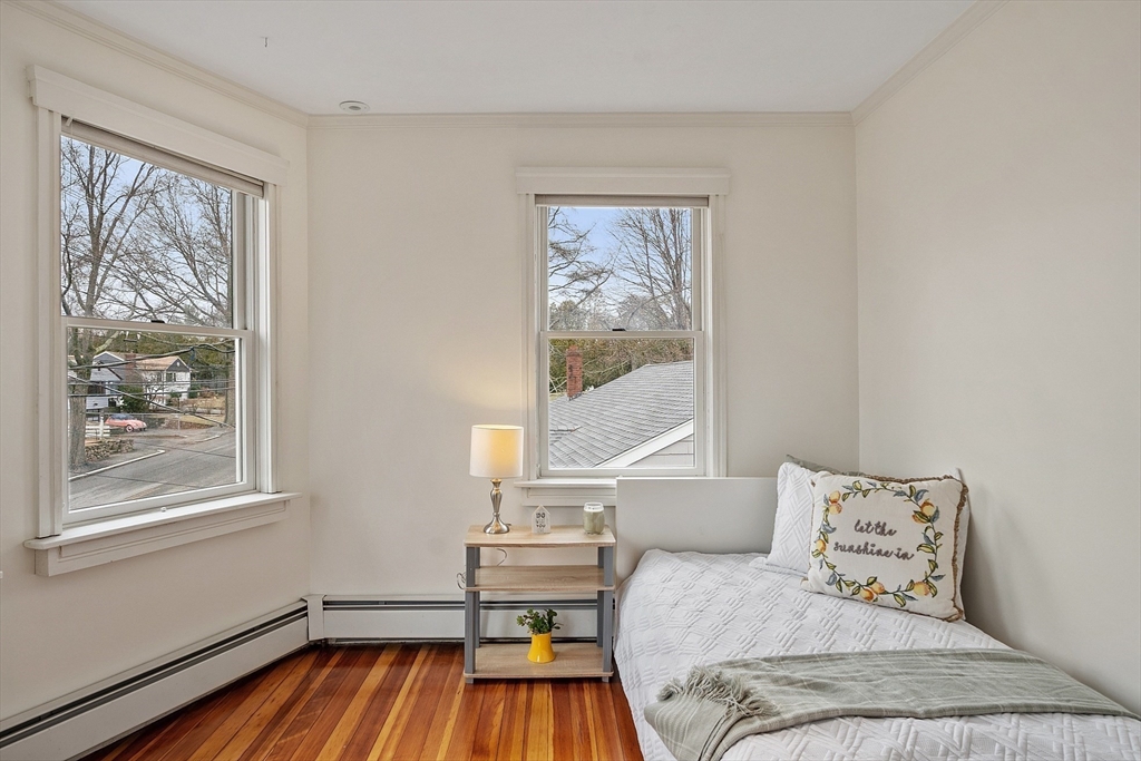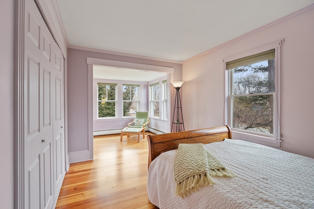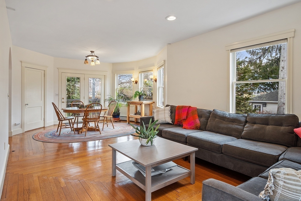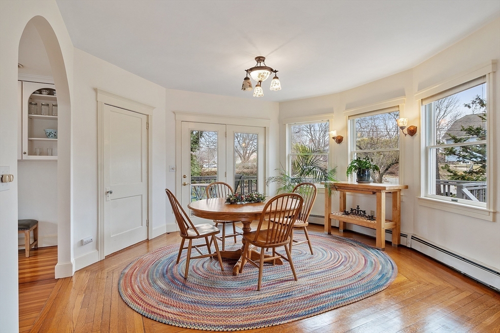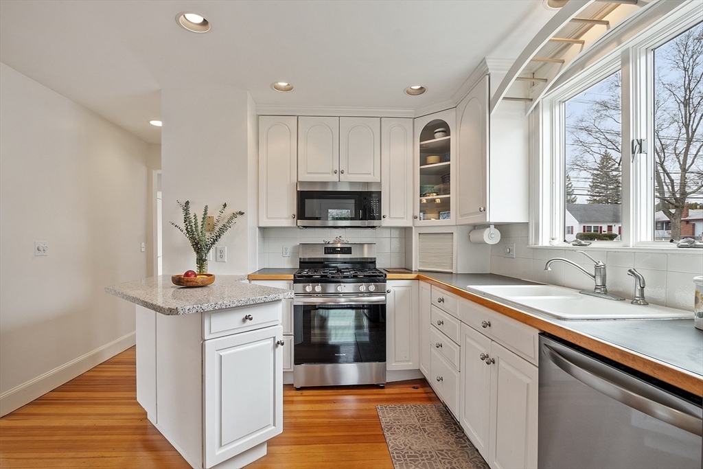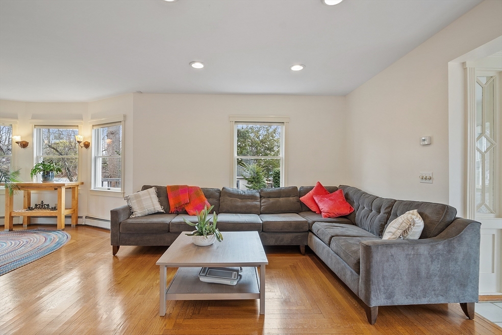 This move-in-ready hip-roof Colonial exudes classic charm while offering modern comforts! Nestled on a spacious corner lot, this early 1900s home is bathed in natural light thanks to its updated, oversized windows.High ceilings, gleaming hardwood floors,& an open-concept first floor enhance its warm and inviting feel.The kitchen is both stylish and functional, featuring brand-new appliances, ample cabinetry,& generous storage. Seamless access from the kitchen & dining room leads to a multi-level deck—perfect for outdoor entertaining—overlooking a beautifully landscaped, spacious yard.The primary suite offers a private, oversized bath, while the convenient 2nd floor laundry adds ease to daily living. A 3rd floor bonus space provides the perfect spot for a home office, playroom, or creative retreat. Located in a highly walkable neighborhood, this home is just moments from downtown, top-rated schools, & scenic walking & biking trails. Ample storage & a garage complete this must-see home!