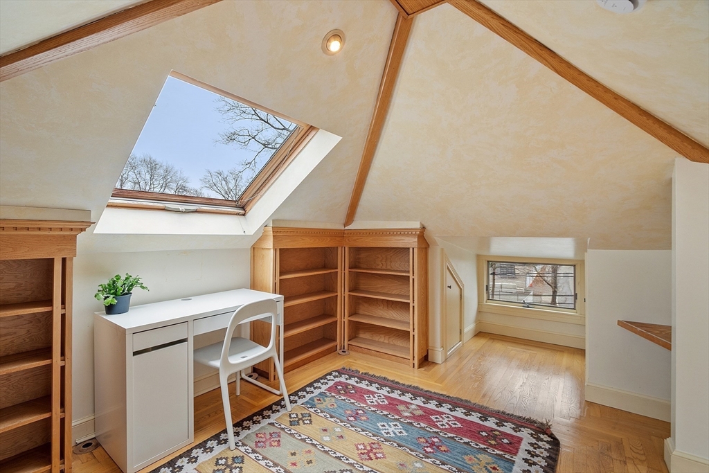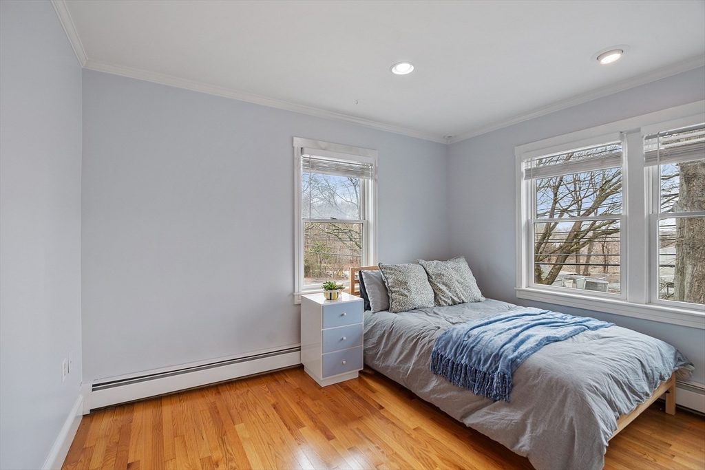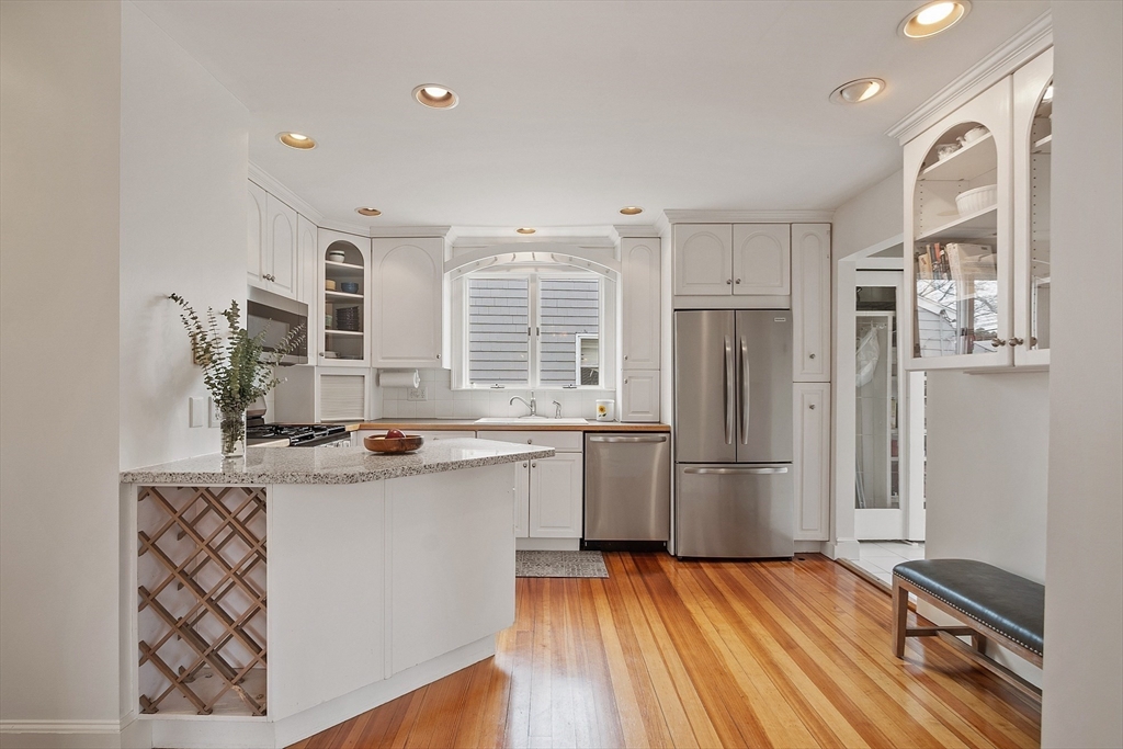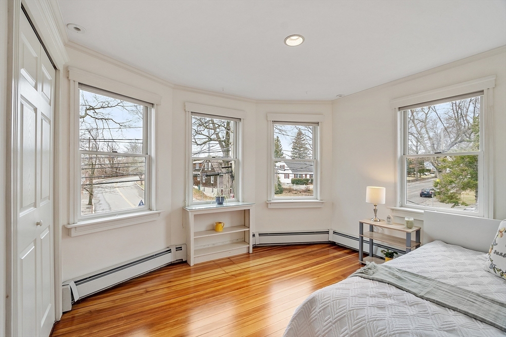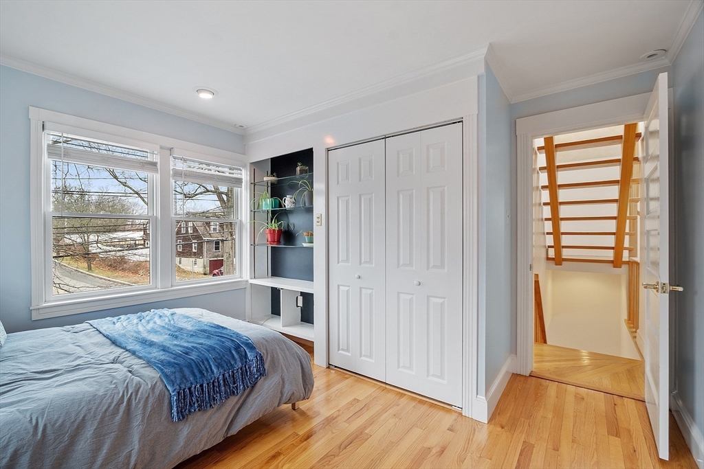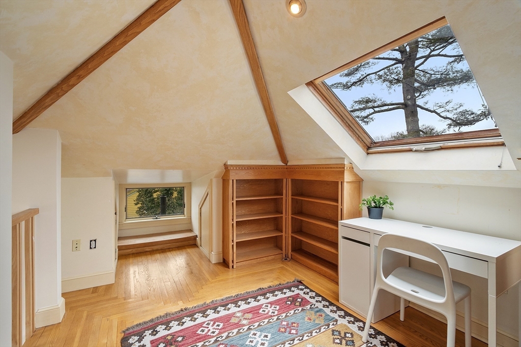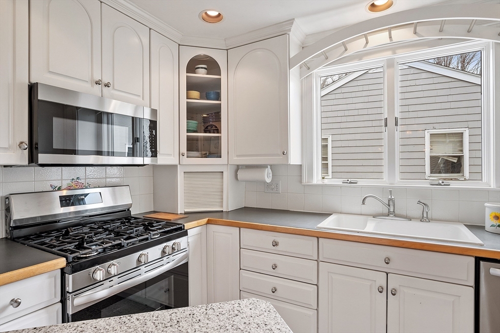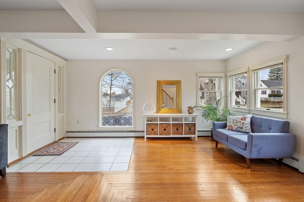 This move-in-ready hip-roof Colonial exudes classic charm while offering modern comforts! Nestled on a spacious corner lot, this early 1900s home is bathed in natural light thanks to its updated, oversized windows.High ceilings, gleaming hardwood floors,& an open-concept first floor enhance its warm and inviting feel.The kitchen is both stylish and functional, featuring brand-new appliances, ample cabinetry,& generous storage. Seamless access from the kitchen & dining room leads to a multi-level deck—perfect for outdoor entertaining—overlooking a beautifully landscaped, spacious yard.The primary suite offers a private, oversized bath, while the convenient 2nd floor laundry adds ease to daily living. A 3rd floor bonus space provides the perfect spot for a home office, playroom, or creative retreat. Located in a highly walkable neighborhood, this home is just moments from downtown, top-rated schools, & scenic walking & biking trails. Ample storage & a garage complete this must-see home!