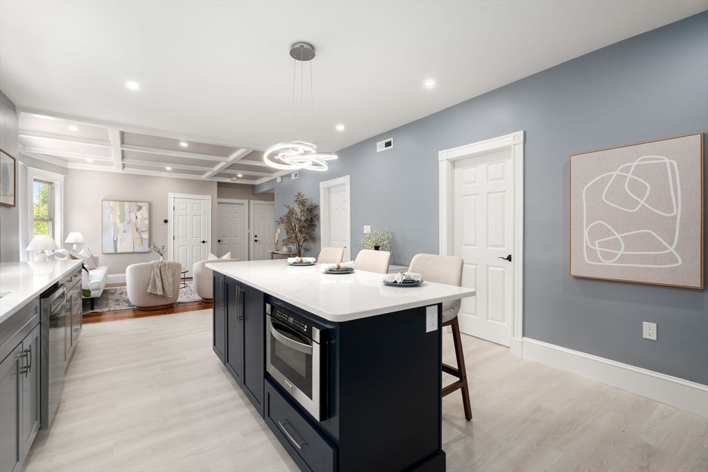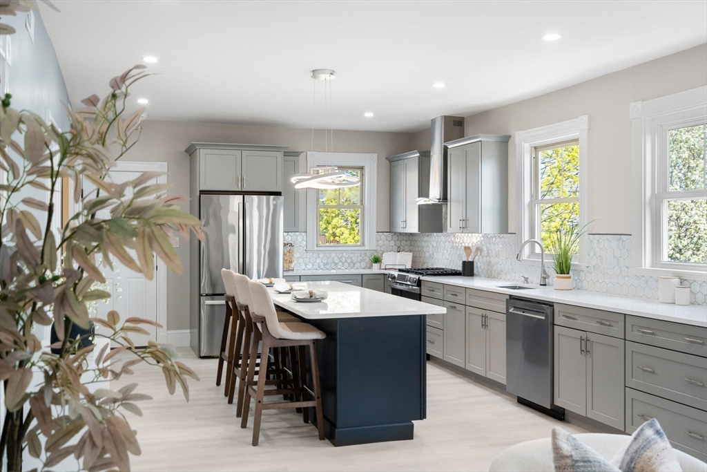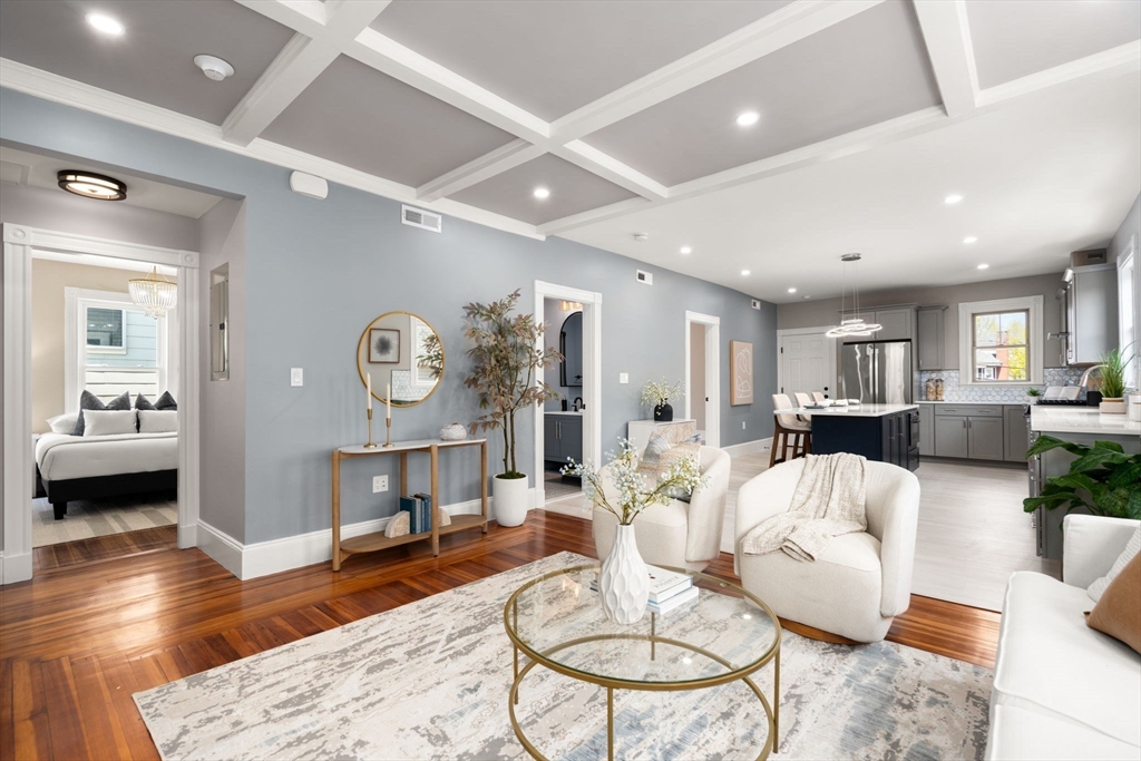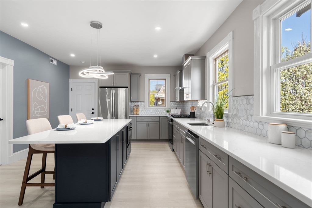 Welcome to 43 Ainsworth Street, Unit 2—where charm meets modern sophistication in this 3-bedroom, 2-bathroom condo. This second-floor unit boasts a bright living room flowing into a cozy dining area. The stunning kitchen features quartz countertops, a large island, top-notch finishes, and ample storage. Beautiful tile throughout enhances the elegance of the space.The primary bedroom includes a tasteful en-suite bathroom, while two additional bedrooms and a second full bath offer space for family or guests. Enjoy the convenience of an in-unit W/D, a private porch off the kitchen, and additional basement storage. The unit is currently unfurnished, allowing you to personalize it to your taste. An assigned off-street parking space and common outdoor space add to the appeal.Located near Rozzie Square and West Roxbury shopping, with easy access to dining and the commuter rail, shops, this condo offers the perfect blend of urban convenience and residential tranquility.