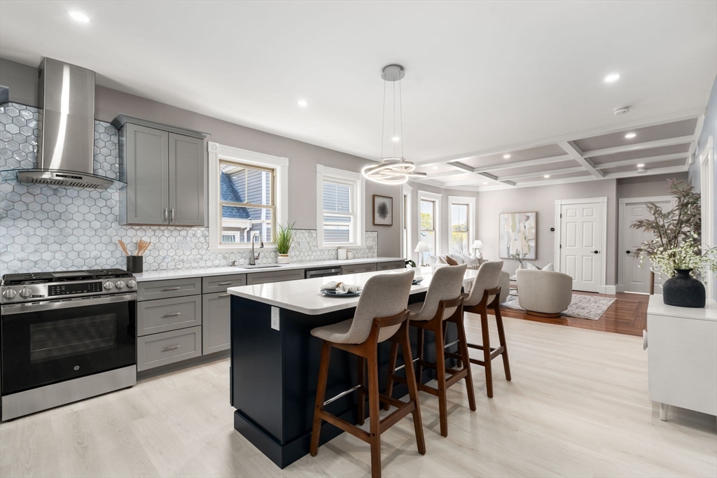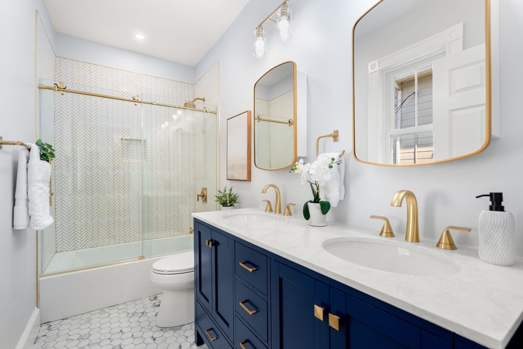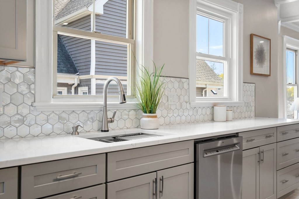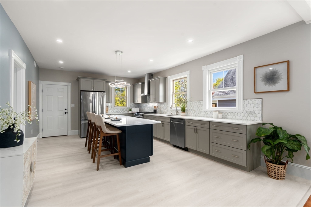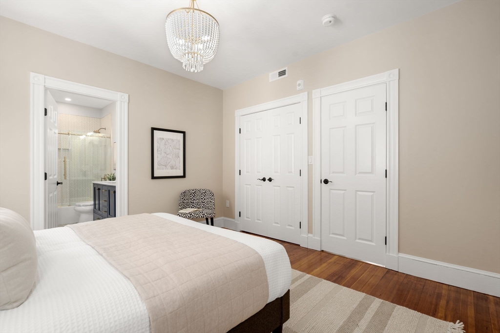 Welcome to 43 Ainsworth Street, Unit 2—where charm meets modern sophistication in this 3-bedroom, 2-bathroom condo. This second-floor unit boasts a bright living room flowing into a cozy dining area. The stunning kitchen features quartz countertops, a large island, top-notch finishes, and ample storage. Beautiful tile throughout enhances the elegance of the space.The primary bedroom includes a tasteful en-suite bathroom, while two additional bedrooms and a second full bath offer space for family or guests. Enjoy the convenience of an in-unit W/D, a private porch off the kitchen, and additional basement storage. The unit is currently unfurnished, allowing you to personalize it to your taste. An assigned off-street parking space and common outdoor space add to the appeal.Located near Rozzie Square and West Roxbury shopping, with easy access to dining and the commuter rail, shops, this condo offers the perfect blend of urban convenience and residential tranquility.