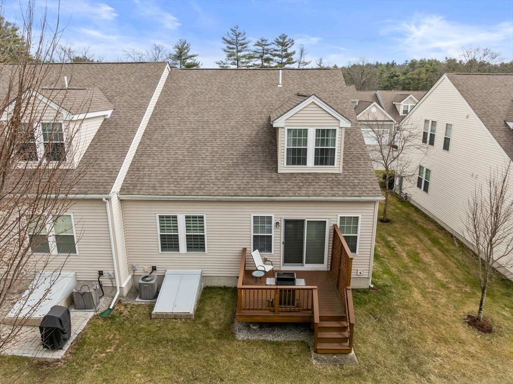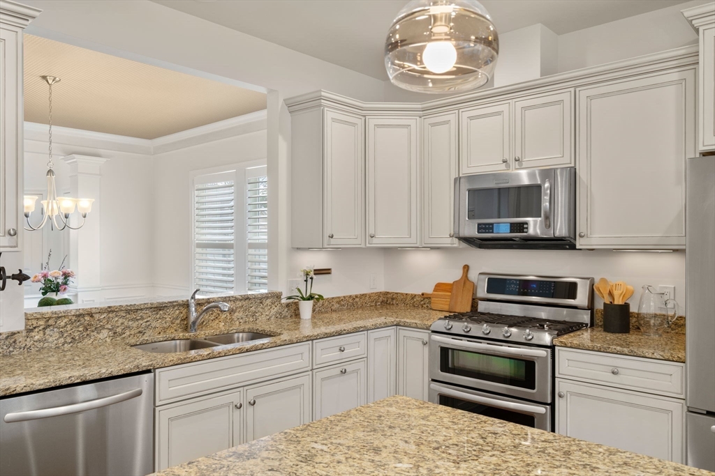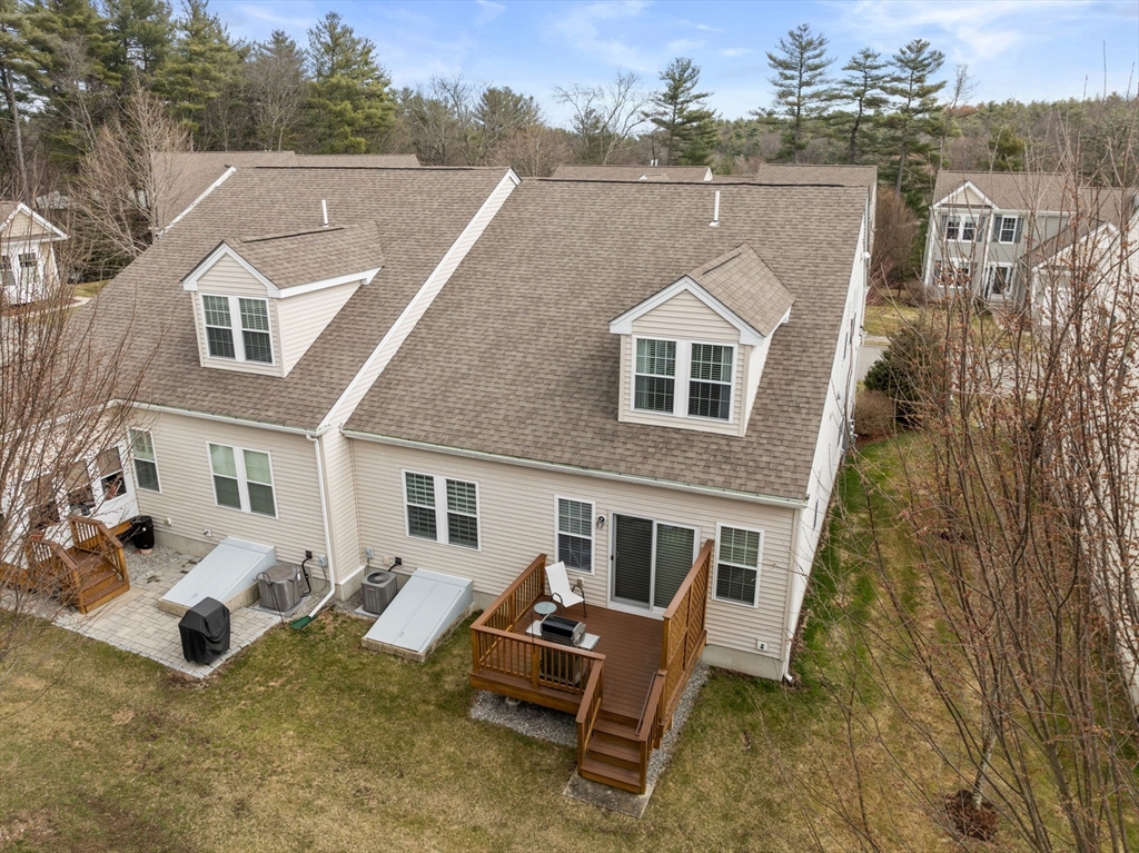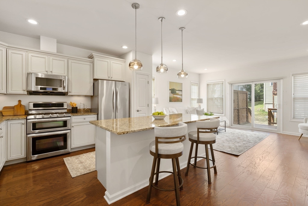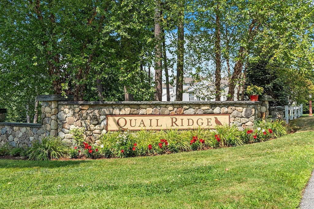 Welcome to The Residences at Quail Ridge, a desirable 55+ community offering easy living and great amenities. This freshly painted 2BR, 2.5BA townhome—including the garage—features high ceilings, detailed millwork, and an open floor plan. The kitchen offers granite counters, stainless appliances, double convection oven, 5-burner gas range, and pantry. The first-floor primary suite includes a walk-in closet and spacious bath with dual sinks and a tile and glass shower. A formal dining room with tray ceiling, living room with access to the deck, laundry, and half bath complete the main level. Upstairs is a bright loft—ideal for a home office or workout space—plus a large guest bedroom, walk-in closet, and full bath. A 2-car garage adds convenience. Enjoy walking trails, golf groups, book clubs, and more. Close to shopping, dining, rail trail, commuter routes, and the train to Boston.
