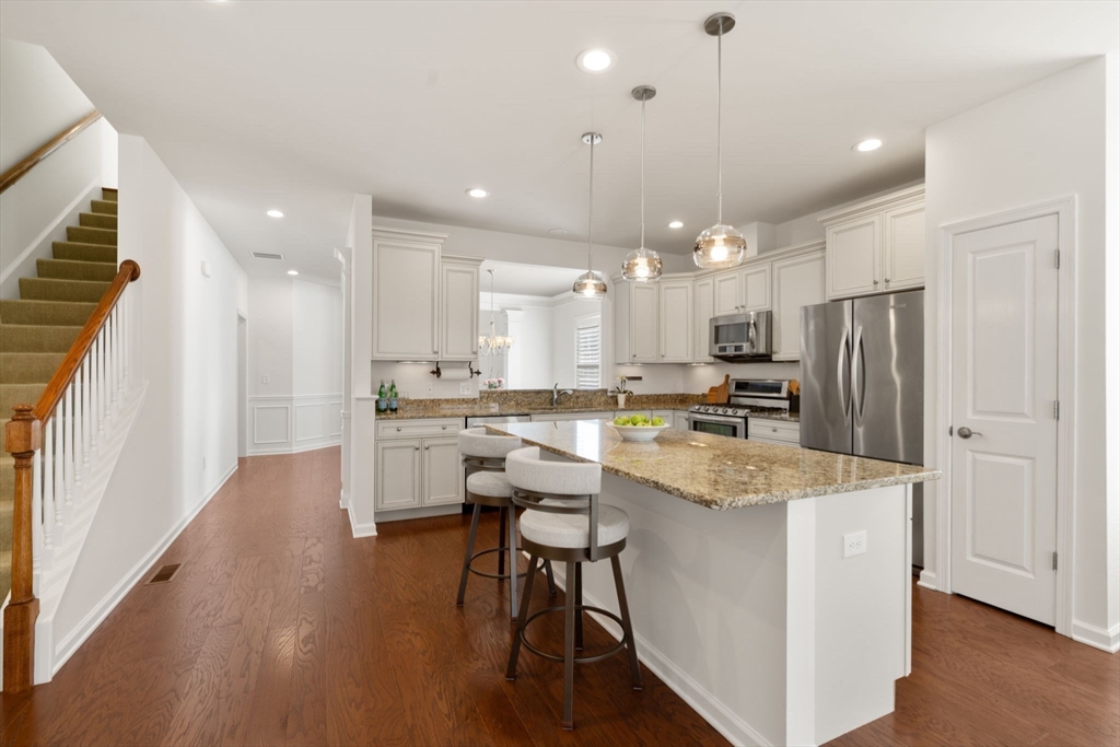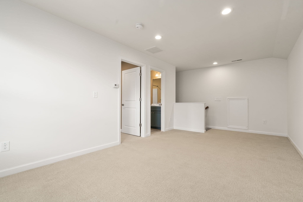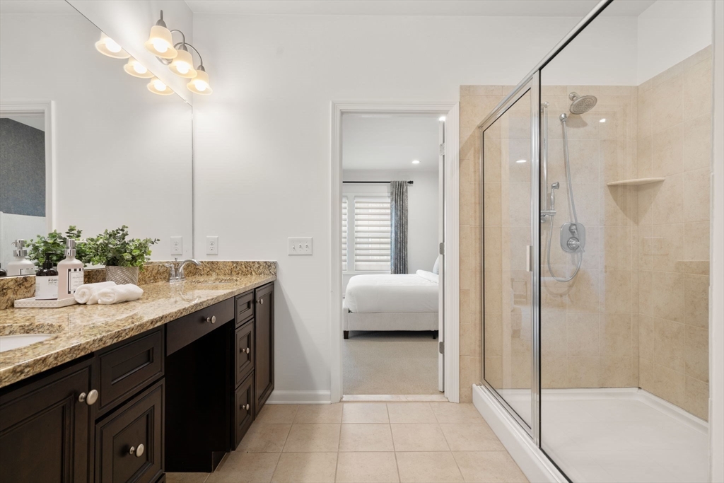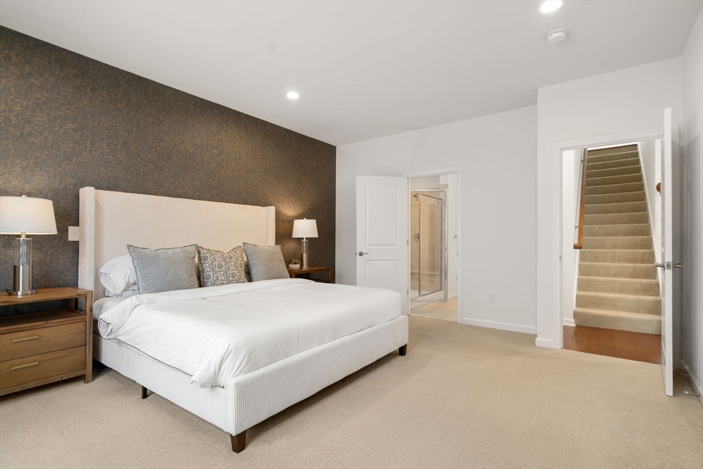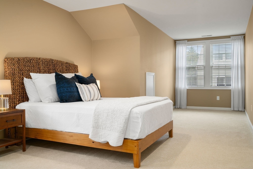 Welcome to The Residences at Quail Ridge, a desirable 55+ community offering easy living and great amenities. This freshly painted 2BR, 2.5BA townhome—including the garage—features high ceilings, detailed millwork, and an open floor plan. The kitchen offers granite counters, stainless appliances, double convection oven, 5-burner gas range, and pantry. The first-floor primary suite includes a walk-in closet and spacious bath with dual sinks and a tile and glass shower. A formal dining room with tray ceiling, living room with access to the deck, laundry, and half bath complete the main level. Upstairs is a bright loft—ideal for a home office or workout space—plus a large guest bedroom, walk-in closet, and full bath. A 2-car garage adds convenience. Enjoy walking trails, golf groups, book clubs, and more. Close to shopping, dining, rail trail, commuter routes, and the train to Boston.