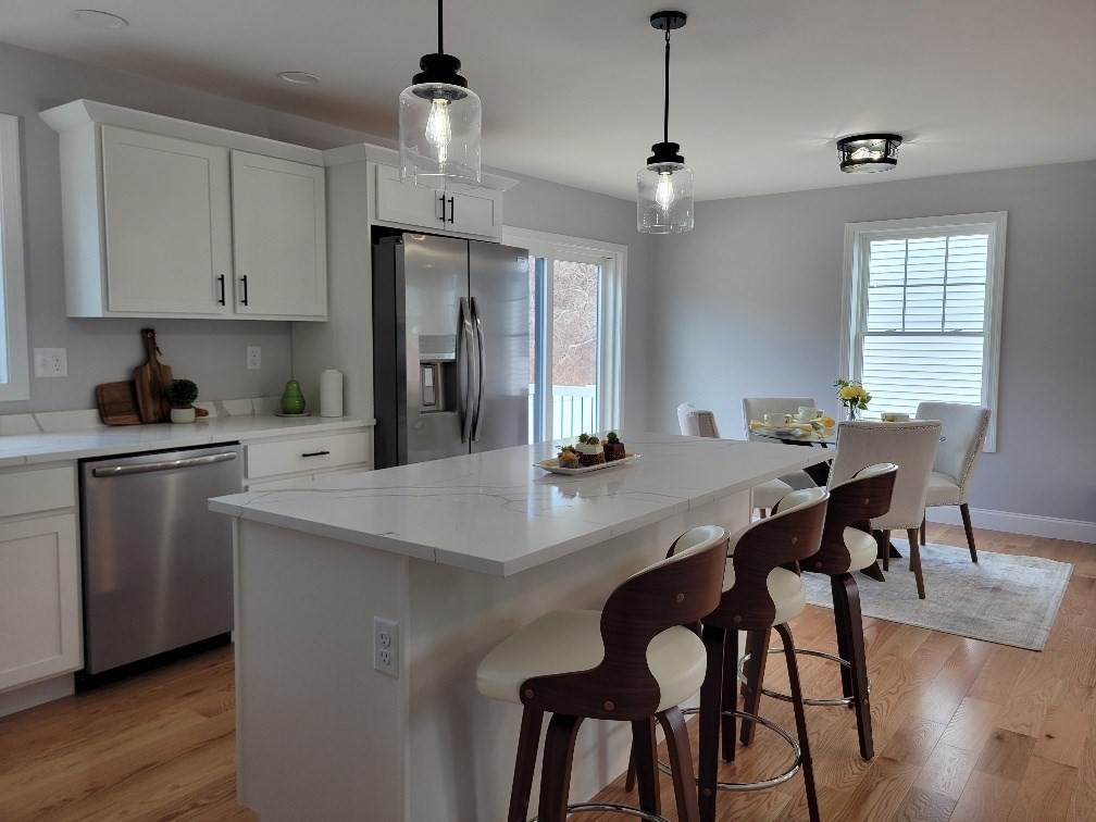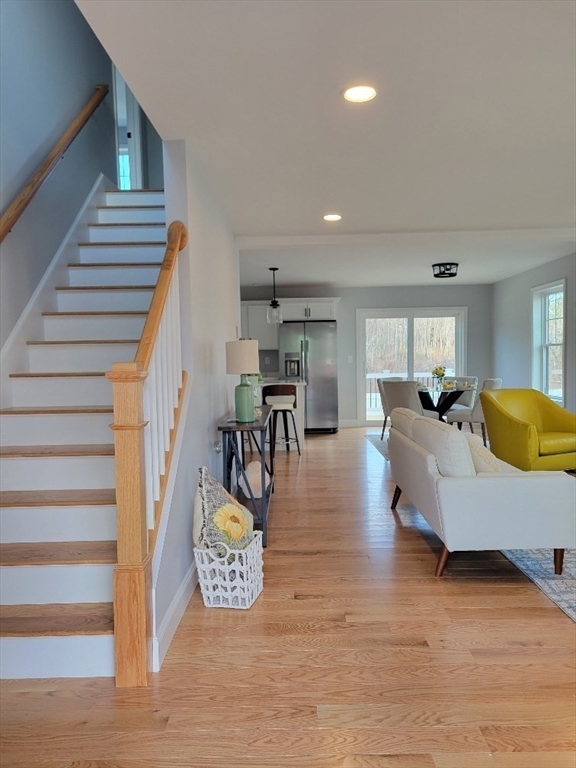 Be part of an exclusive development of just eight townhouse condos in a prime location! This brand-new 3-bed, 2.5-bath townhouse condo blends style and function in a prime location. The open-concept 1st floor features a sleek kitchen flowing into the dining area with a slider to a sun deck overlooking a scenic pond - perfect for relaxing outdoors .A cozy gas fireplace warms the living room, while a half bath and 1st-floor laundry add additional convenience. Hardwood and tile flooring enhance the main spaces. Upstairs, the primary suite boasts a walk-in closet and spa-like bath with a double vanity and large tiled walk-in shower. Two more bedrooms and a full bath complete the 2nd level. Enjoy central A/C, hardwood stairs, an attached garage and a composite front porch. The full basement allows for great storage or potential future living area. With town water/sewer, low condo fees, builders warranty & pet-friendly, this home offers easy, comfortable living. FNMA approved.