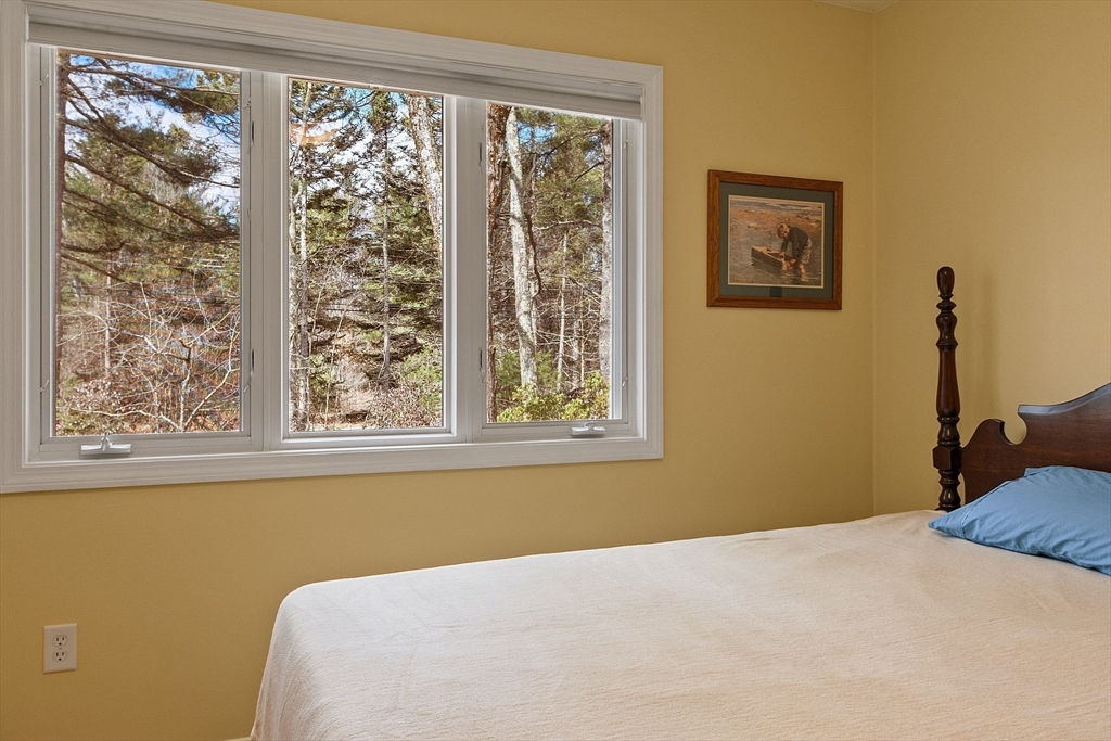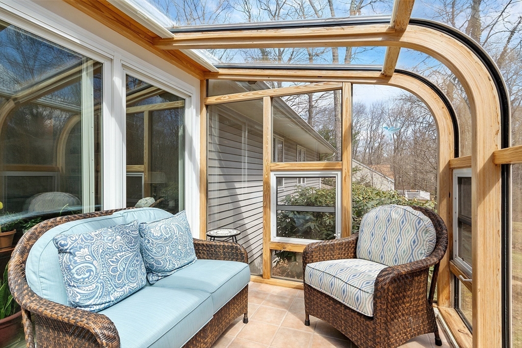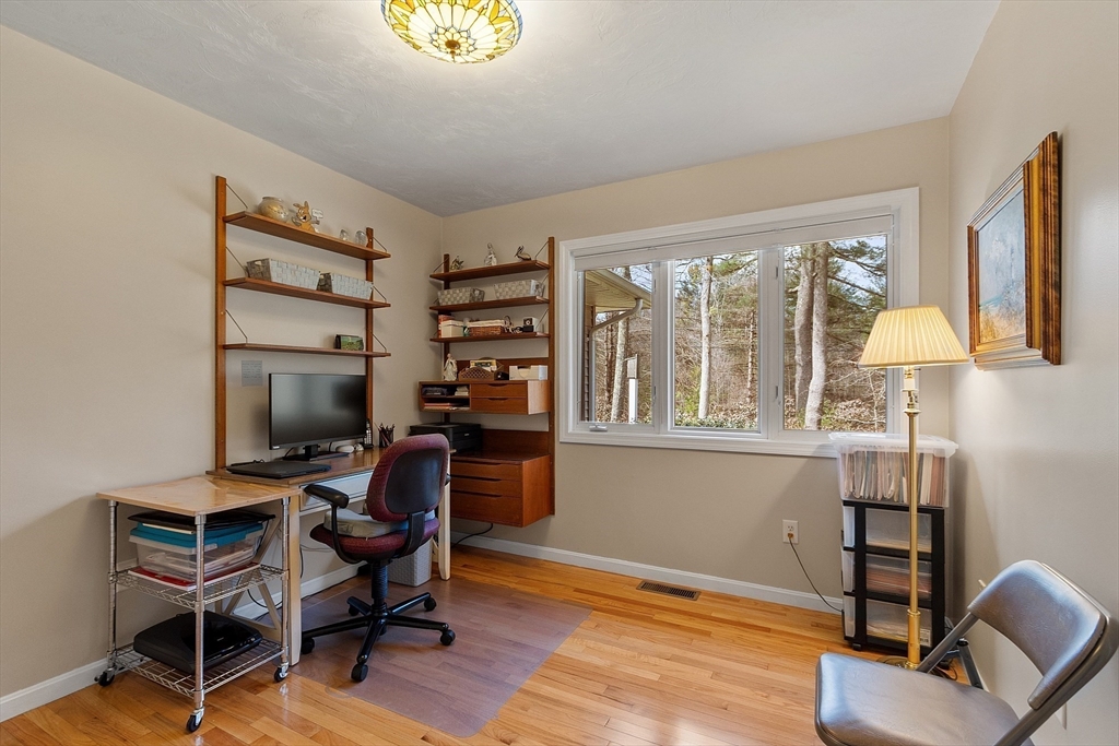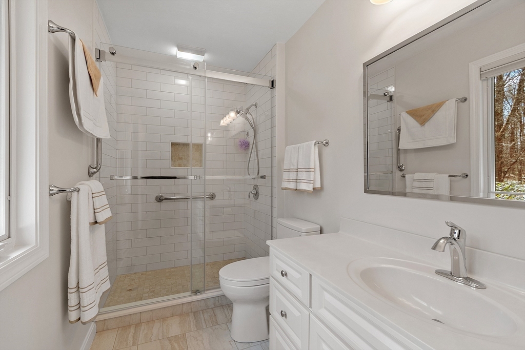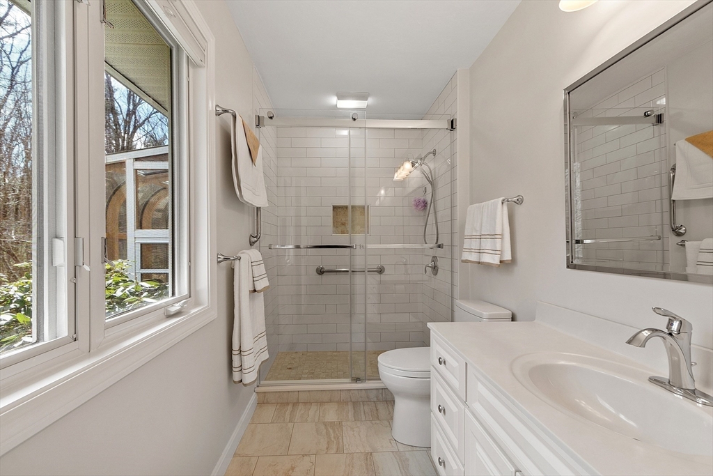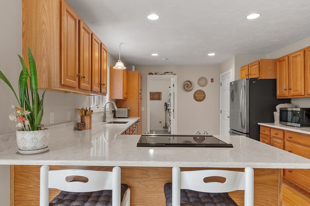 Welcome to this open floor plan three bedroom, 2 bath ranch with large living room w/fireplace; open cathedral ceiling family room adjacent to stainless steel applianced kitchen with quartz counter, Blanco sink with touch faucet, Brady Sun addition off family room overlooking beautiful backyard with privacy. The new master full bath is gorgeous and the hardwood floors sparkle! This oversized ranch also has a 2024 roof, is vynal sided for easy maintenance and has State woods across the street for extra peace and quiet. This one won't laste!
